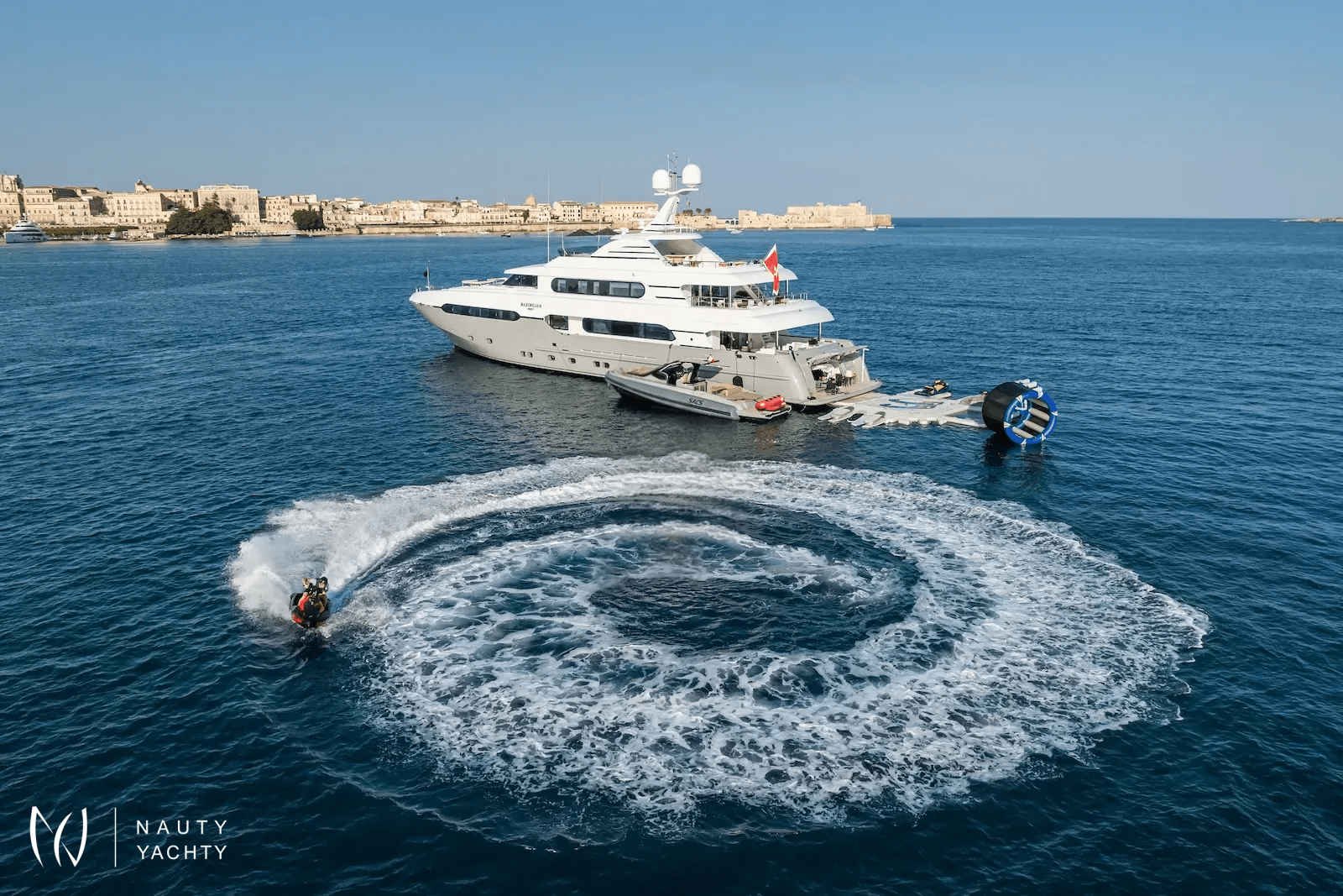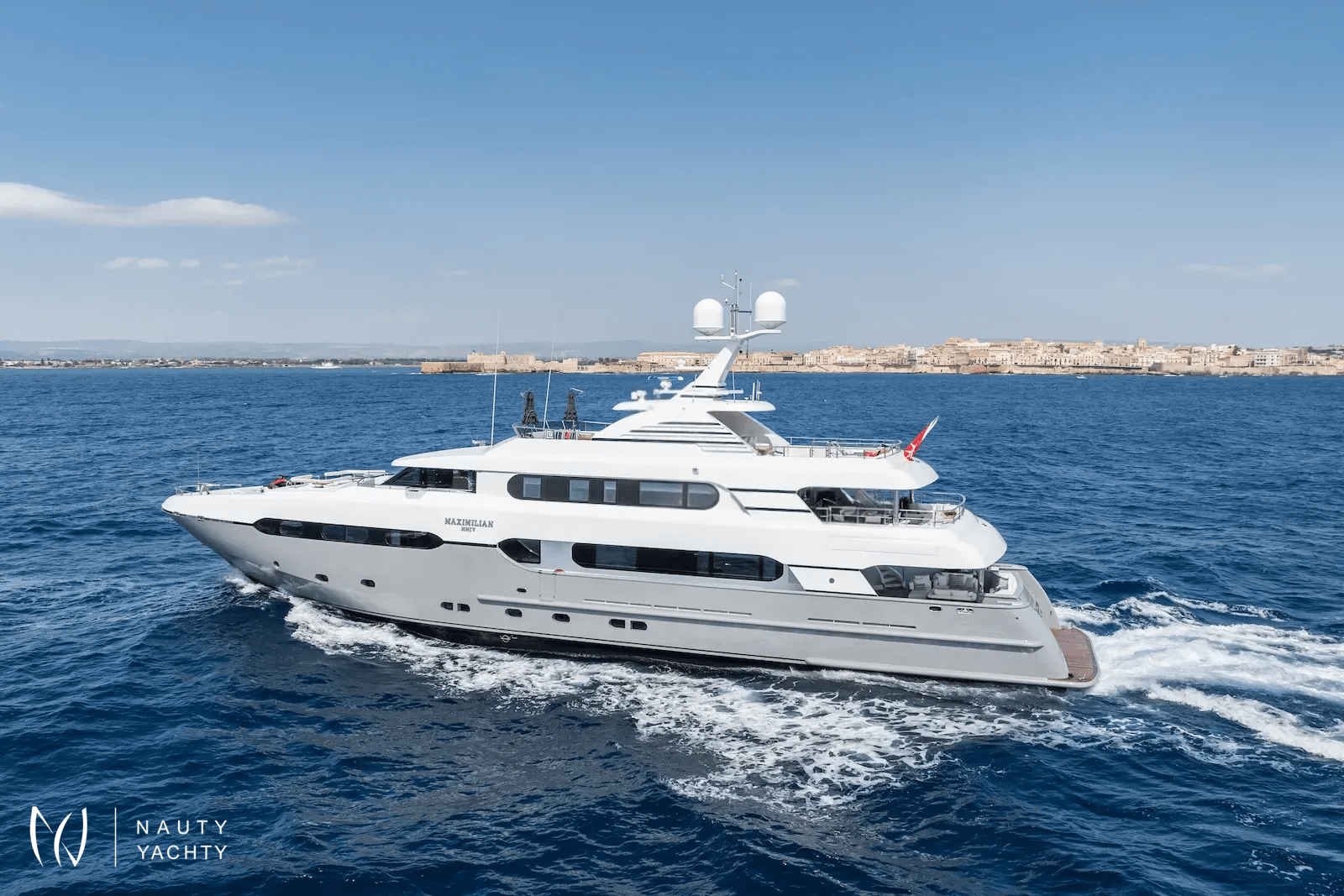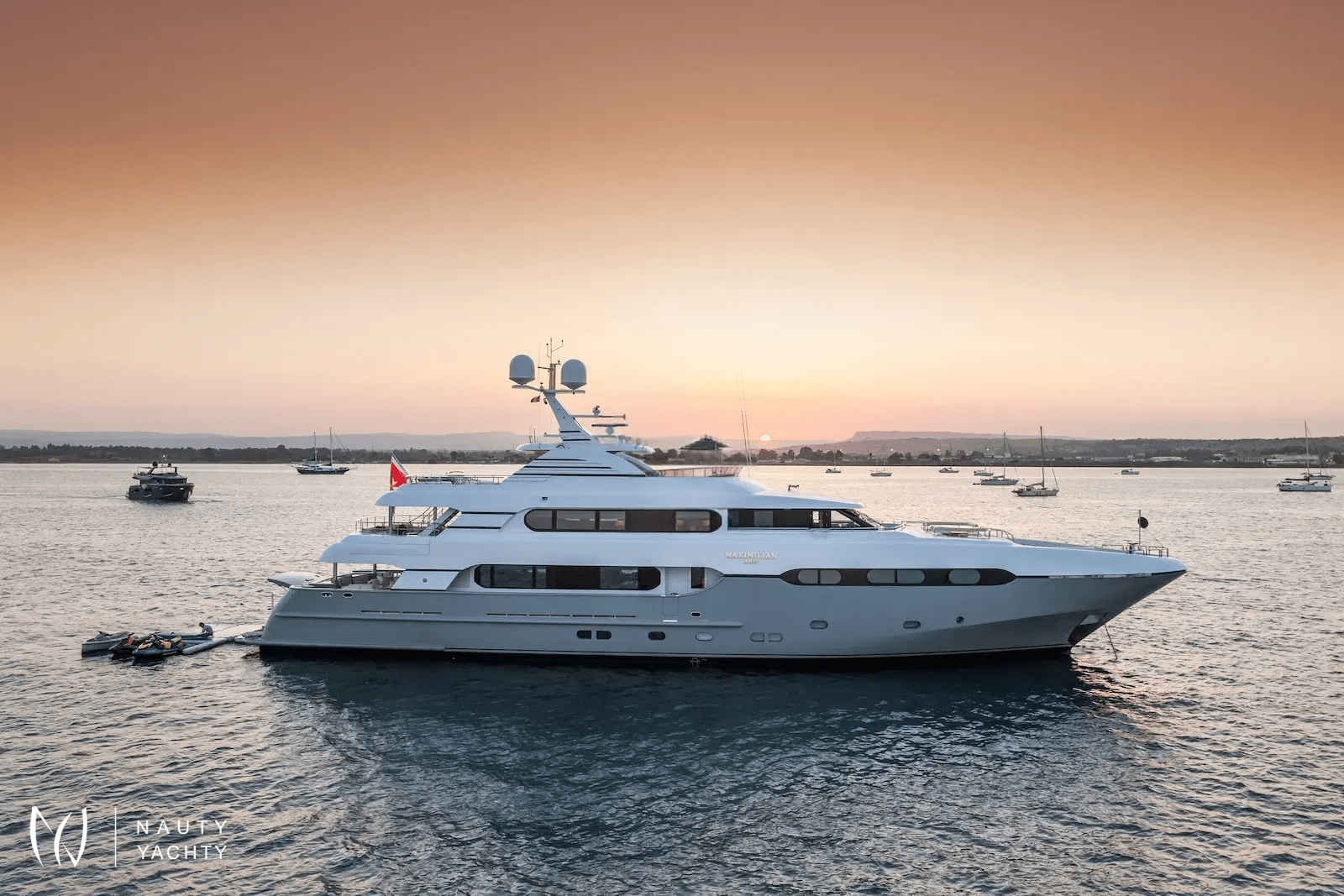 Launched by Sunrise Yachts in 2009, and fully refitted in 2024, MAXIMILIAN MMIV now boasts even more exquisite indoor/outdoor living throughout its well-proportioned tri-deck layout, ensuring both luxury and comfort for any charter guests. The refit included a full exterior repaint, new deck layouts, and extensive interior upgrades. With a huge volume of 499GT, this 45m yacht provides plentiful room for dining, socialising, and ultimate relaxation.With a generously large sundeck complete with Jacuzzi, and a skylounge perfect for entertaining, MAXIMILIAN MMIV offers ample onboard fun for family and friends. But perhaps you want to take the fun to another level? Well, why not enjoy your time on the water with a fully kitted out inflatable aqua park perfect for kids and adults alike, jetskis, Seabobs and electric wakeboards for the adrenaline seekers, or inflatable kayaks and paddle boards for those choosing a slower pace of fun, MAXIMILIAN MMIV has everyone covered.With 5 beautifully designed staterooms, including a full-beam master, all with en suite, MAXIMILIAN MMIV can accommodate up to 11 guests in opulent comfort. The master stateroom includes a separate annex with extra beds for children, as well as a full-beam his-and-her bathroom that is notably impressive. The roomy interior styled by Franck Darnet Design, continues through a chic main deck dining/saloon and a welcoming open-galley, catering to the open-plan, social design of this yacht.With so much on offer, this really is a well-designed yacht that will satisfy the needs of any guests looking for a fantastic luxury escape.