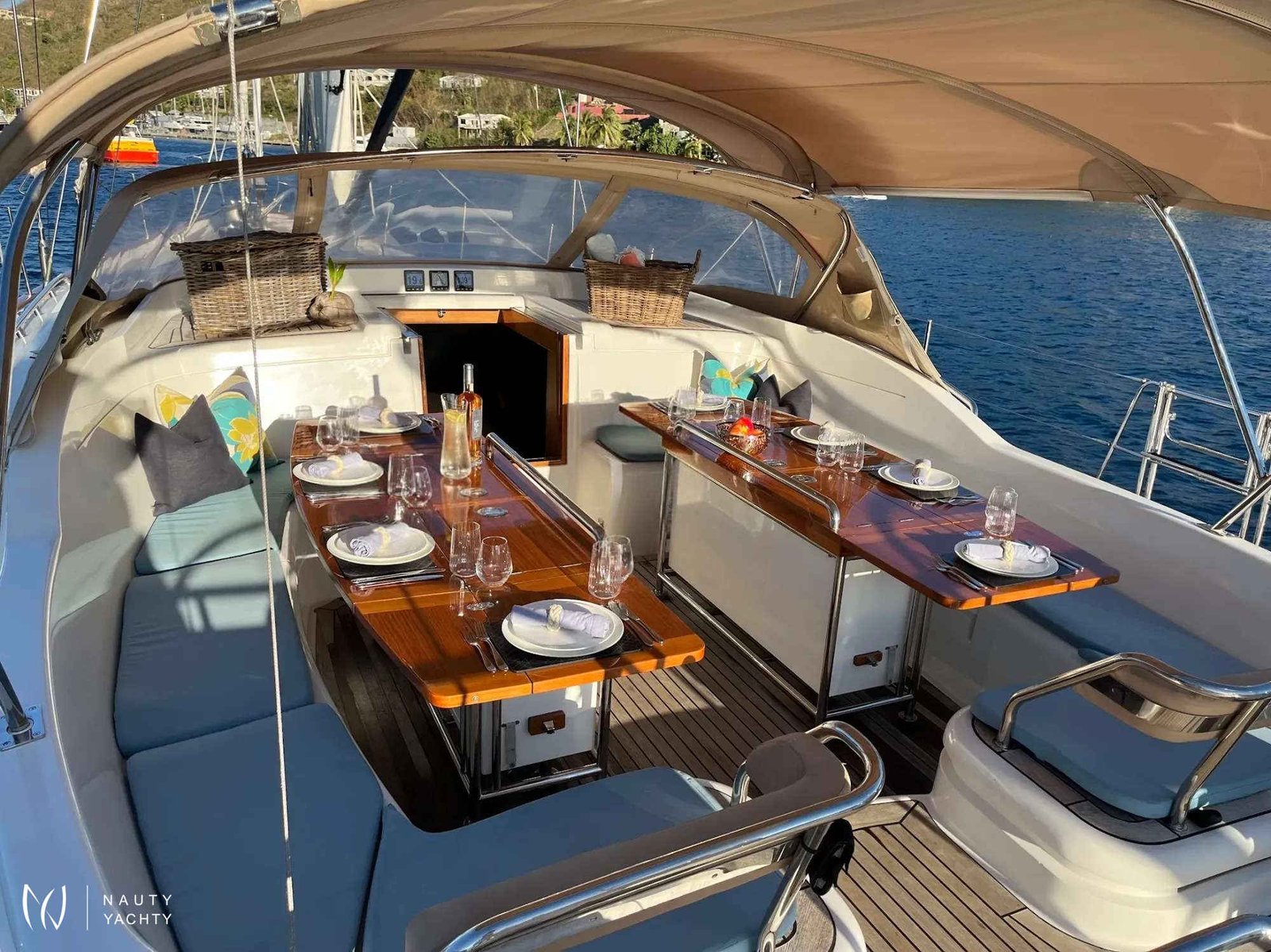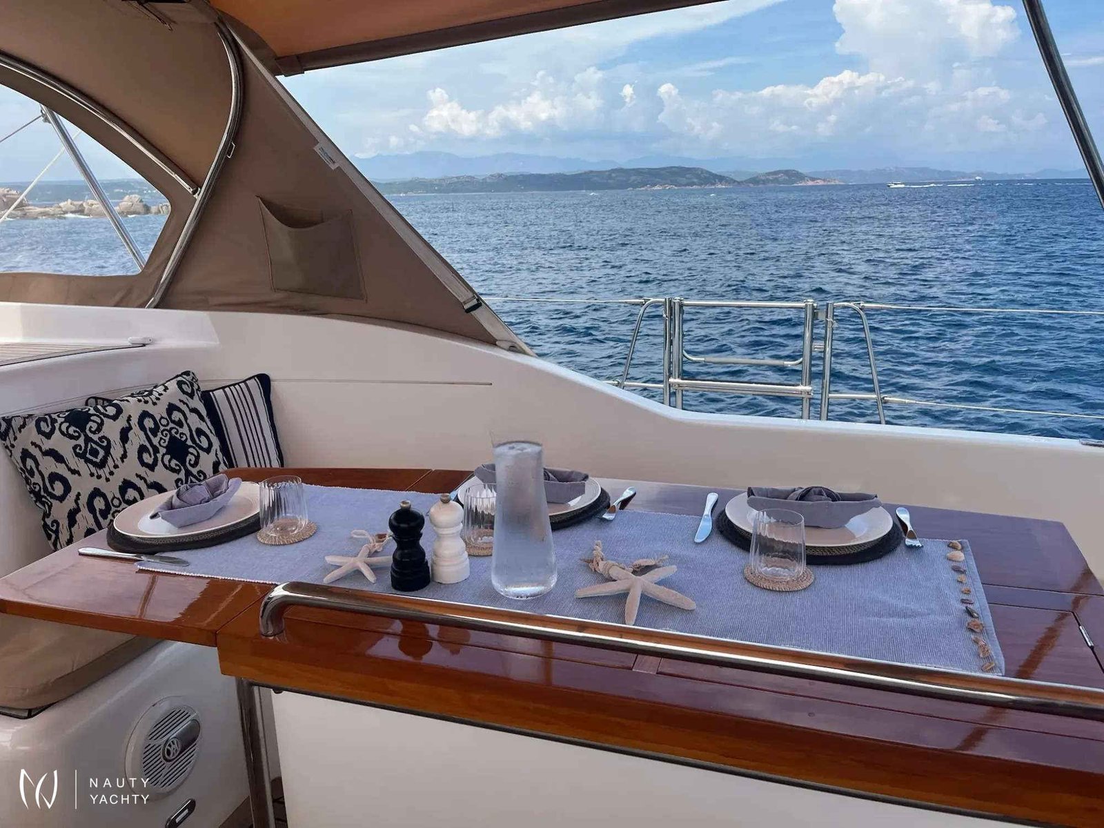 Aft deck canopy, additional table & chairs and sun lounge cushions