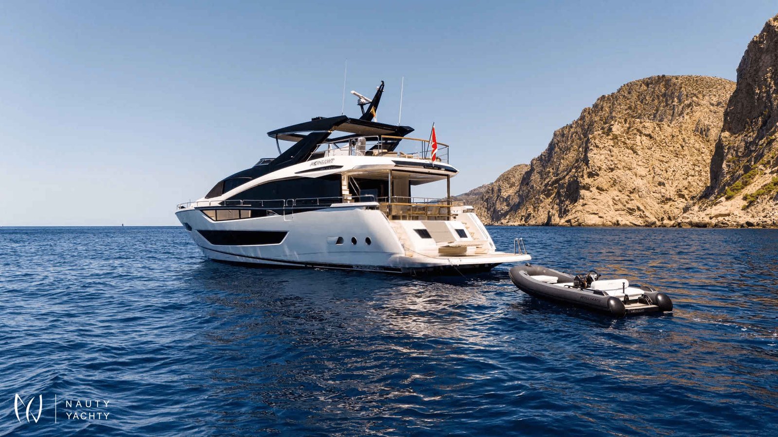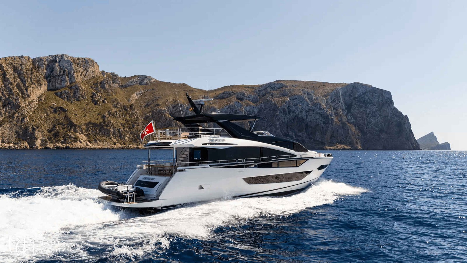 Discover the Balearics aboard MoonlightStep into a world of refined comfort and seamless performance aboard Moonlight, an 88-foot Sunseeker designed for unforgettable cruising experiences. With elegant exterior lines, expansive interior spaces, and thoughtfully appointed amenities, Moonlight offers the perfect balance of style, relaxation, and adventure.Elegant living, inside and outMoonlight accommodates up to eight guests in four en-suite cabins, including a full-beam master suite, a private VIP cabin forward, and two convertible twin cabins, ideal for families or couples. The main deck features a stylish dayhead and a luminous salon with panoramic sea views, plush seating, a large TV, and a formal dining area for eight, creating the perfect atmosphere for entertaining or unwinding in comfort.Designed for outdoor enjoymentGuests are welcomed by the signature Sunseeker Beach Club, a sophisticated waterside haven accessed via twin staircases, softly illuminated with recessed LED lighting. This tranquil space is centered around the award-winning X-TEND™ sunbed, which cleverly adjusts to face aft at sea level or forward into the cockpit, offering a unique connection to the sea. A built-in rain shower and easy access to the water make it an ideal spot to relax between swims or enjoy the view in peace. The flybridge invites relaxed afternoons and sociable evenings, with ample seating, a spacious dining table, and sunpads for lounging under the sun. Forward, the foredeck offers yet another inviting escape, with a spacious lounge and sunbathing area for enjoying the breeze and panoramic views. A lovely seating area provides the perfect spot to sip a glass of rosé as the sun dips below the horizon, a magical setting to end the day in true Mediterranean style.Performance and serviceWith a cruising speed that can reach up to 28 knots, Moonlight is perfectly suited for island-hopping between the gems of the Balearics. A professional crew of four ensures that every detail is taken care of, providing warm, discreet service throughout your journey. Whether anchored in a quiet cove or cruising along the coast, Moonlight delivers a charter experience defined by elegance, comfort, and unforgettable memories.