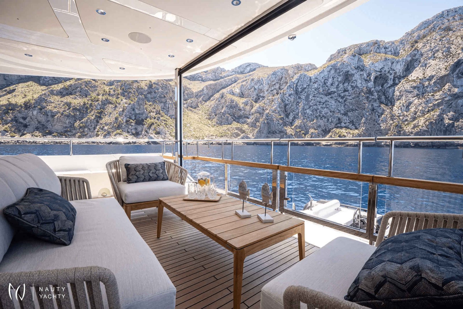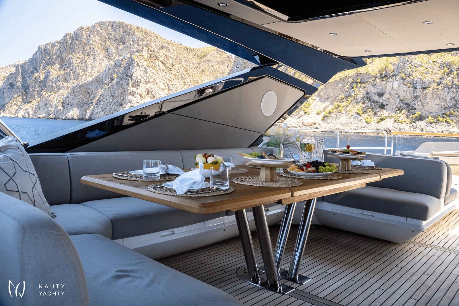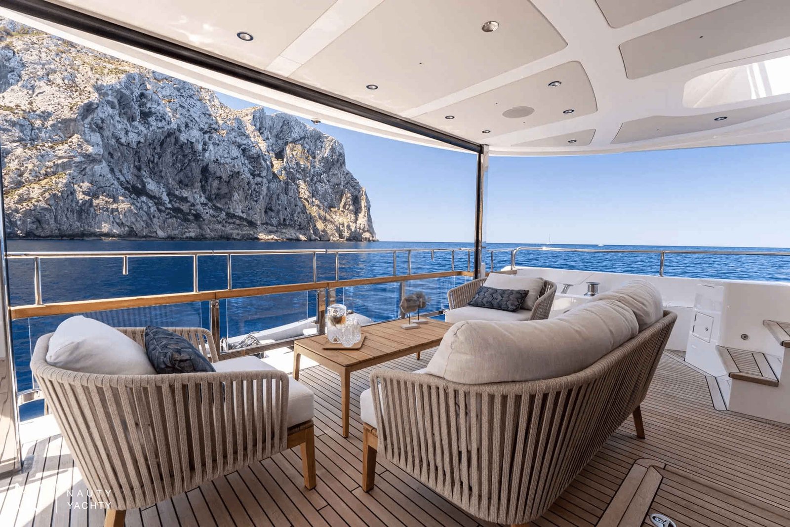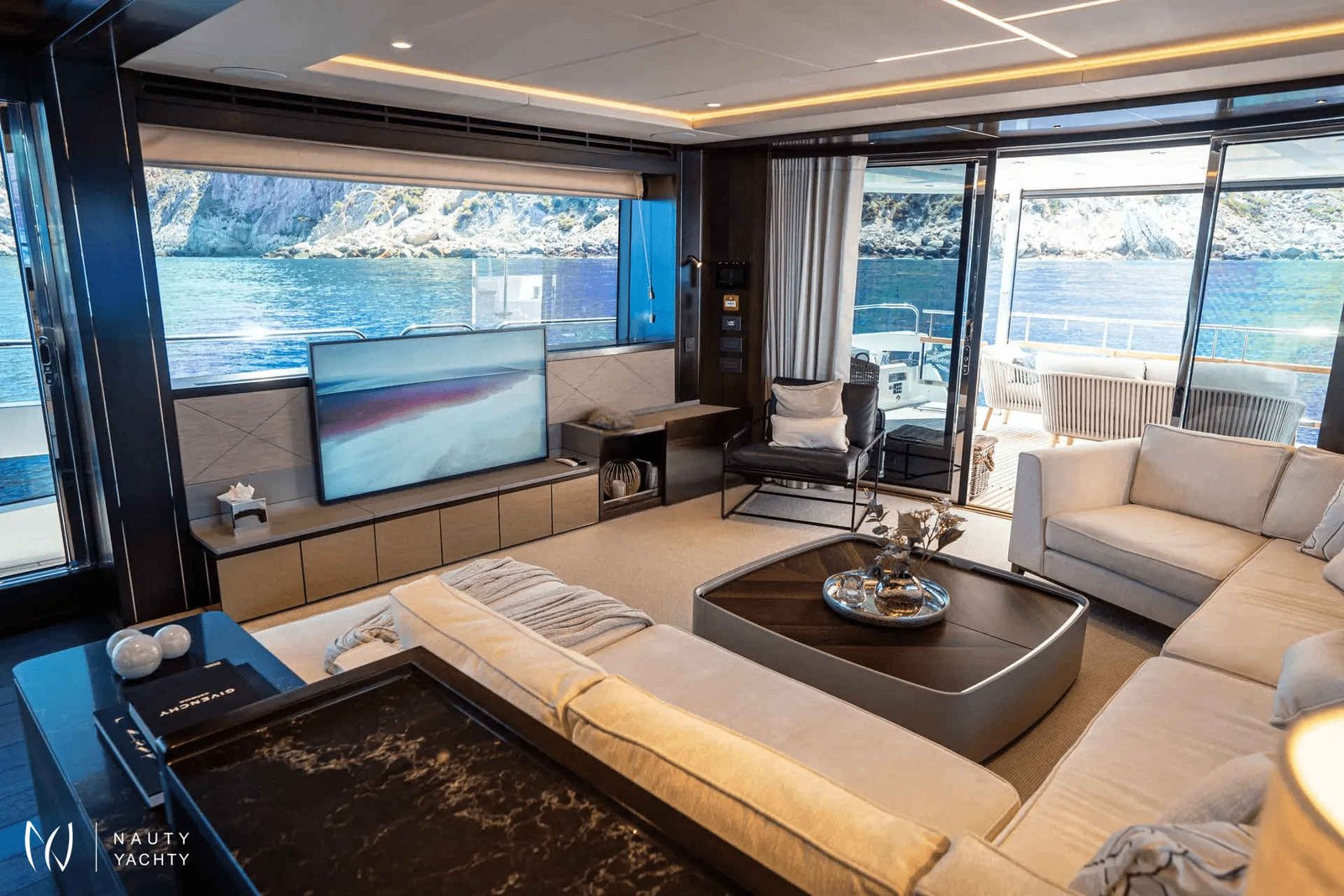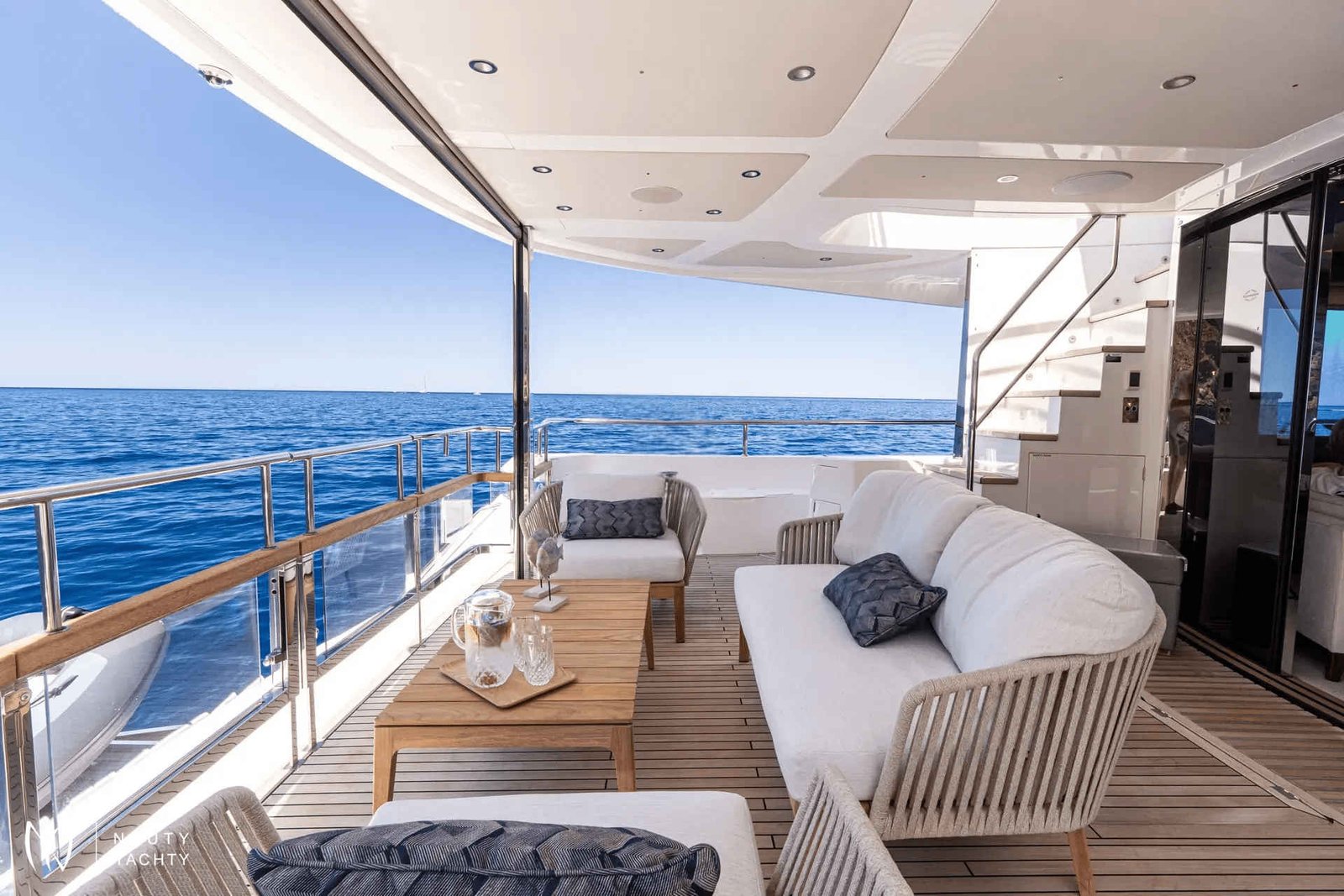 Outdoor Living: Beach club, flybridge, and foredeck for relaxing and entertaining.