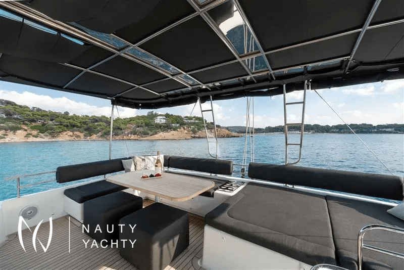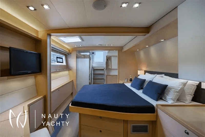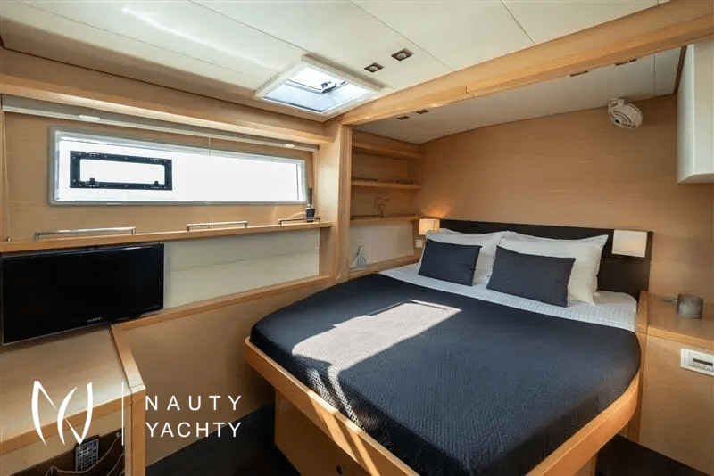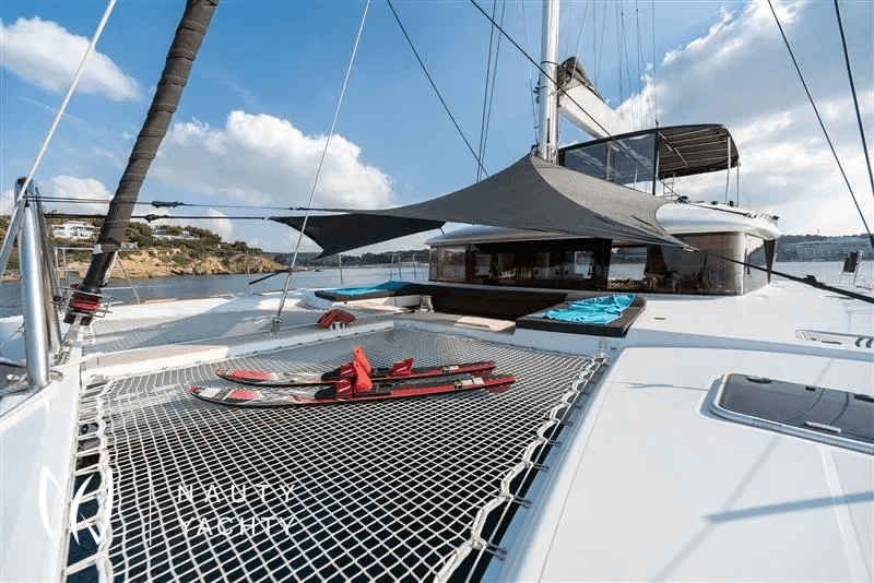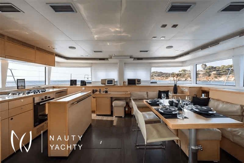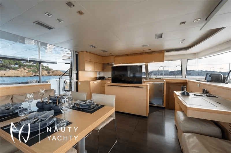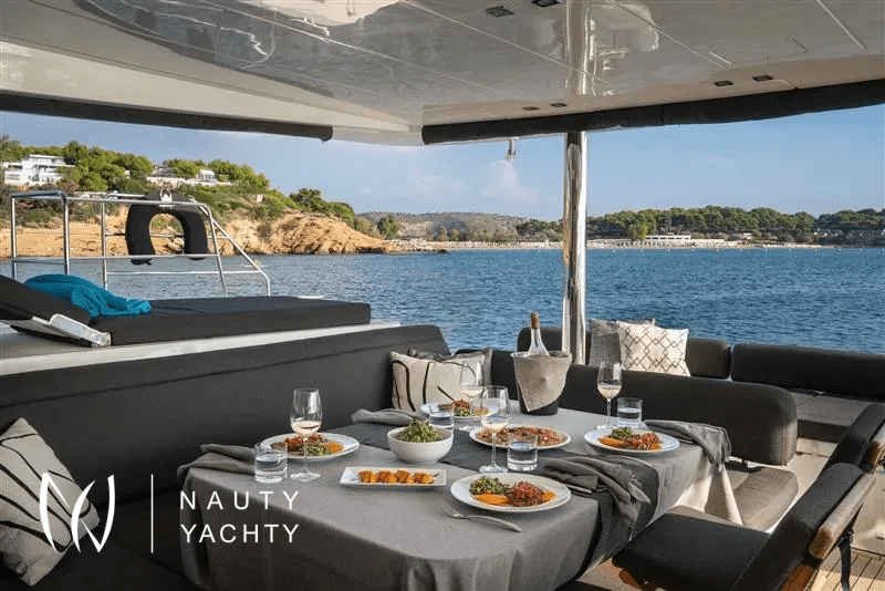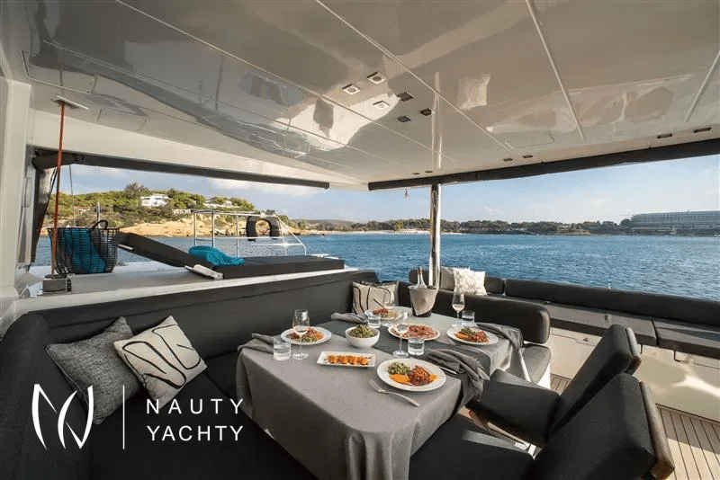 Moya is our Lagoon 560, a catamaran available for crewed charters throughout Greece. With 5 cabins and 5 wc it is perfect for groups of up to 10 guests.Moya ‘s genealogy comes from super yachts combining the world-renowned talents of the architectural firm VPLP and the design consultants Nauta and boasting all of the advanced features developed by the famous Lagoon Shipyard in one luxurious deep-water catamaran that will definitely exceed your expectations in terms of comfort, handling and style!Her layout is unmatched by any other catamaran of her size and her living space is phenomenal, including 5 truly huge totally independent cabins, an impressive sense of space in the saloon and galley, ample lounging space on the flybridge and more roominess than you could ask for dinning and lounging in the vast aft cockpit. Indulge yourself in the art of hospitality on a yacht considered by many the ultimate voyager’s catamaran!