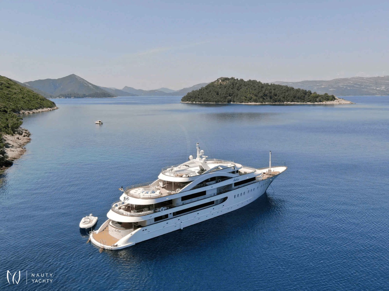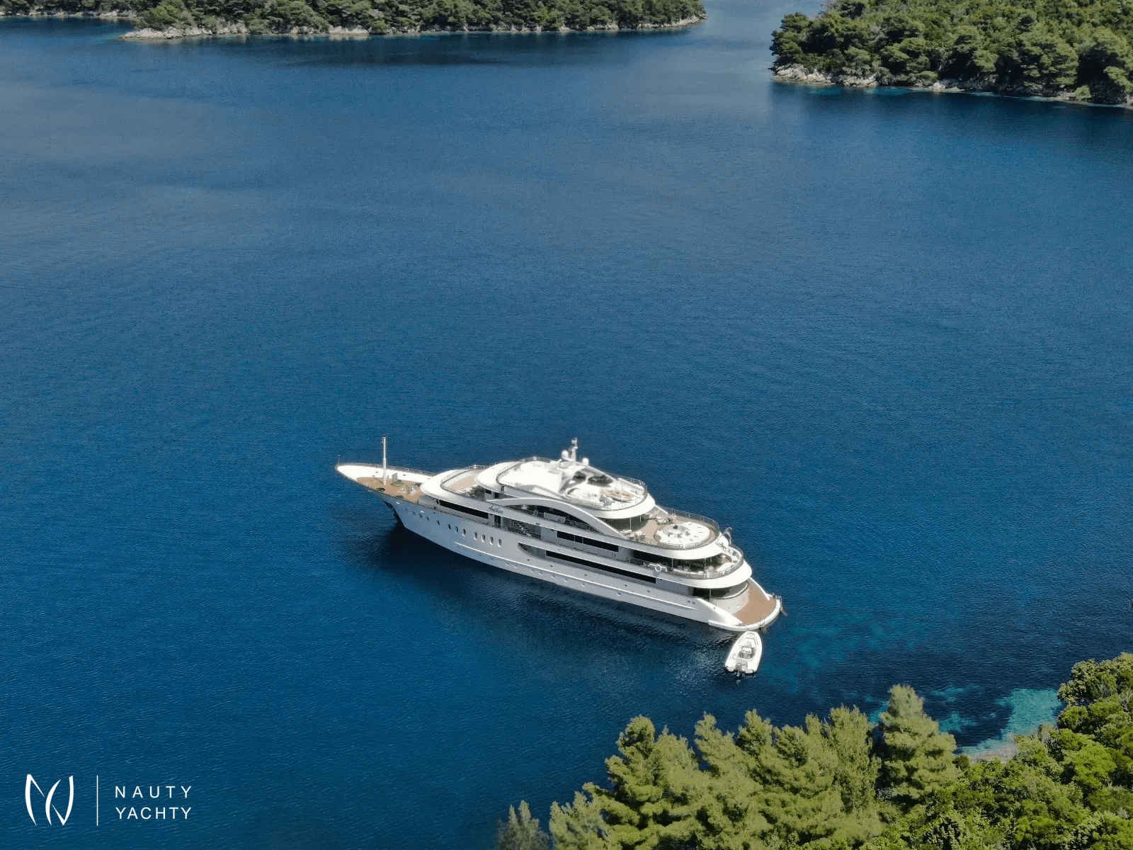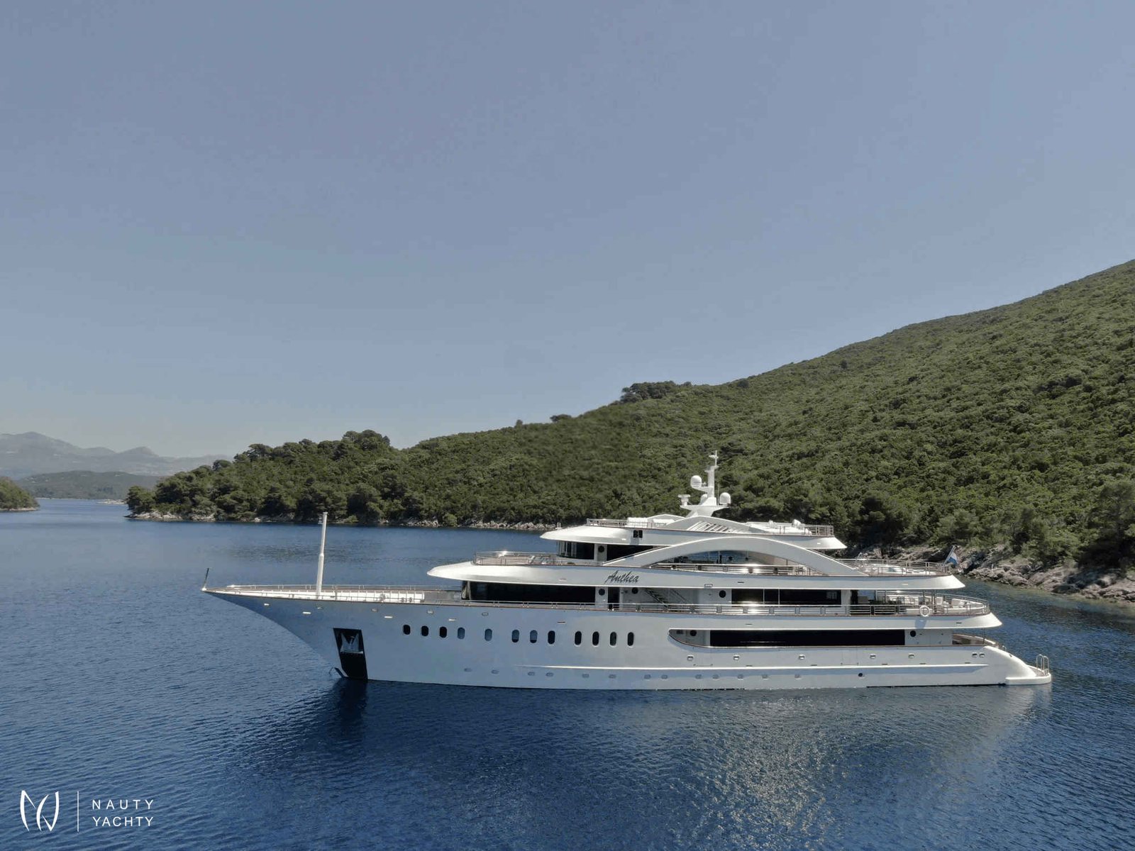 ANTHEA combines a supreme yachting experience with accommodation for up to 20 guests. Her ten double cabins sit four on the lower and six on the main deck, the cabins range in size between 20 and 29 m2, each with a king-size bed, en suite bathroom, and walk-in closet.To accommodate single guests or guests with children, four of ten cabins can be converted into twins. Smart TVs, plug-ins for gadgets, and Intercom are featured in all cabins.The ample common spaces can host a variety of themes, feels, and events. The breezy aft lounge on the upper deck is ideal likewise for afternoon siestas, sunset cocktails, or even evening movie screenings, as it is equipped with a pull-down projector and screen. A retractable glass partition separates this space from the spacious saloon and allows for smooth indoor-outdoor flow and easy transformation into a space for larger events. Après-lunch espressos and good reads feel even better in the many cozy corners with armchairs and coffee tables. Romantic moments become ever more so on the main deck bow where the U-shaped couch lures you to meditate over vistas and a glass of your favorite wine. And if work must be done, there is a mini office with a library by the saloon as well as flat Wi-Fi throughout.Guests can savor Mediterranean specialties by their Chef in the interior or sundeck dining area. The interior dining lounge on the upper deck features two tables seating ten persons each, but also cozy lounging sets ideal for aperitifs over mesmerizing views through panoramic windows. The sundeck dining area holds a barbecue for show-cooking and a table that can seat 20 guests, The showstopper is the sundeck bar, with a backlit feature wall lined with translucent Italian Sicis gem glass, making this the place for starlit toasts.The Jacuzzi and expansive sunbathing area will keep guests enjoying the sundeck in the daytime.The décor aboard M/V Anthea is elegant and contemporary. In the exterior spaces, teak flooring and the neutral color palette of cool greys and warm sandy tones perfectly complement the turquoise Adriatic and pine-covered shores. Inside, walnut flooring and detailing add warmth and coziness. Setting the mood aboard M/V Anthea is as simple as lifting a finger, with smart technologies, ambient lighting, an upgraded surround system (operated as a whole or in individual spaces), and the piano by the interior dining room.As fun and fitness are an integral part of a true Adriatic experience, MY Anthea holds a plethora of toys and equipment for on-water activities ( extendable platform and jelly pool, water slide, 2 x sea bob, 2 x jet skis, 2 x audi e foils, SUPs, snorkeling and fishing equipment, wakeboards, water skis for adults and children, floating beach...) The gym and sauna on the main deck make it easy to upkeep the health regimes. The gym with sauna space is convertible into massage roomTaking care of the guests’ wishes, needs and safety is the handpicked, experienced, and professional crew of 13 members which can, upon request, be expanded to include a tour leader or masseuse/yoga instructor. Board M/V Anthea for unforgettable charter holidays in Croatia!