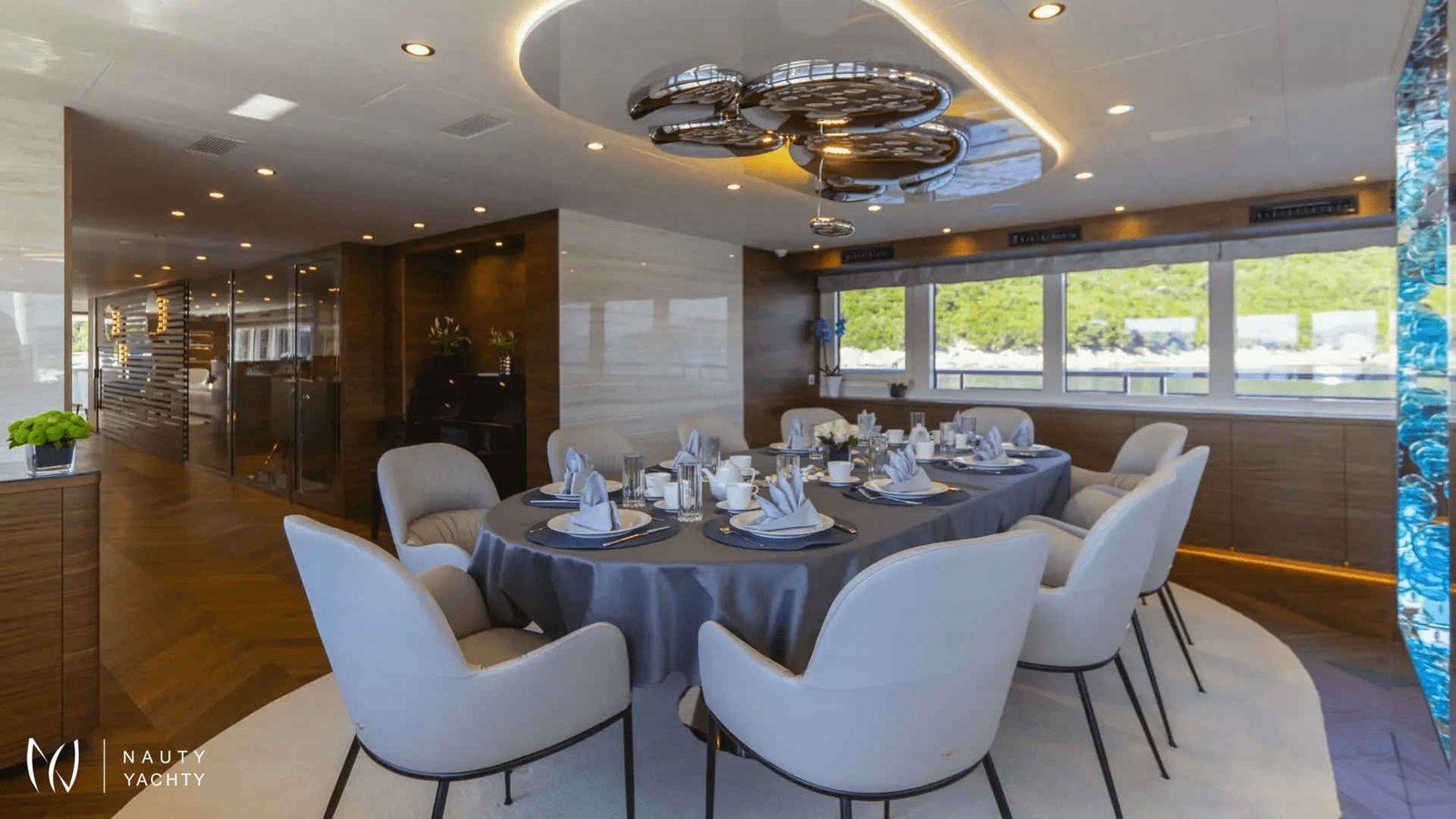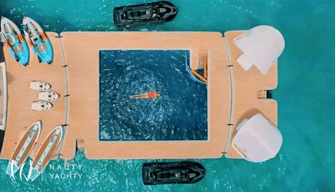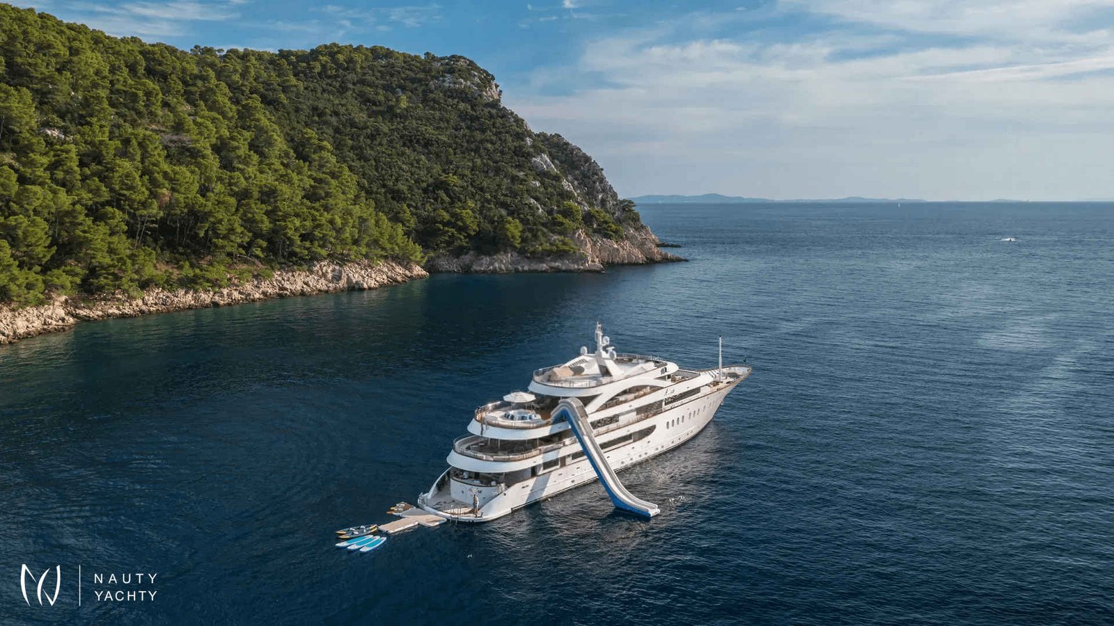 ANTHEA combines a supreme yachting experience with accommodation for up to 20 guests. Her ten double cabins sit four on the lower and six on the main deck, the cabins range in size between 20 and 29 m2, each with a king-size bed, en suite bathroom, and walk-in closet.To accommodate single guests or guests with children, four of ten cabins can be converted into twins. Smart TVs, plug-ins for gadgets, and Intercom are featured in all cabins.The ample common spaces can host a variety of themes, feels, and events. The breezy aft lounge on the upper deck is ideal likewise for afternoon siestas, sunset cocktails, or even evening movie screenings, as it is equipped with a pull-down projector and screen. A retractable glass partition separates this space from the spacious saloon and allows for smooth indoor-outdoor flow and easy transformation into a space for larger events. Après-lunch espressos and good reads feel even better in the many cozy corners with armchairs and coffee tables. Romantic moments become ever more so on the main deck bow where the U-shaped couch lures you to meditate over vistas and a glass of your favorite wine. And if work must be done, there is a mini office with a library by the saloon as well as flat Wi-Fi throughout.Guests can savor Mediterranean specialties by their Chef in the interior or sundeck dining area. The interior dining lounge on the upper deck features two tables seating ten persons each, but also cozy lounging sets ideal for aperitifs over mesmerizing views through panoramic windows. The sundeck dining area holds a barbecue for show-cooking and a table that can seat 20 guests, The showstopper is the sundeck bar, with a backlit feature wall lined with translucent Italian Sicis gem glass, making this the place for starlit toasts.The Jacuzzi and expansive sunbathing area will keep guests enjoying the sundeck in the daytime.The décor aboard M/V Anthea is elegant and contemporary. In the exterior spaces, teak flooring and the neutral color palette of cool greys and warm sandy tones perfectly complement the turquoise Adriatic and pine-covered shores. Inside, walnut flooring and detailing add warmth and coziness. Setting the mood aboard M/V Anthea is as simple as lifting a finger, with smart technologies, ambient lighting, an upgraded surround system (operated as a whole or in individual spaces), and the piano by the interior dining room.As fun and fitness are an integral part of a true Adriatic experience, MY Anthea holds a plethora of toys and equipment for on-water activities ( extendable platform and jelly pool, water slide, 2 x sea bob, 2 x jet skis, 2 x audi e foils, SUPs, snorkeling and fishing equipment, wakeboards, water skis for adults and children, floating beach...) The gym and sauna on the main deck make it easy to upkeep the health regimes. The gym with sauna space is convertible into massage roomTaking care of the guests’ wishes, needs and safety is the handpicked, experienced, and professional crew of 13 members which can, upon request, be expanded to include a tour leader or masseuse/yoga instructor. Board M/V Anthea for unforgettable charter holidays in Croatia!
