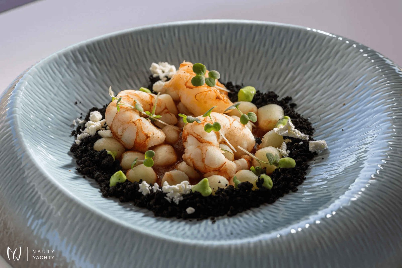 The meals onboard are prepared with fruits and vegetables sourced from Anthea's green garden