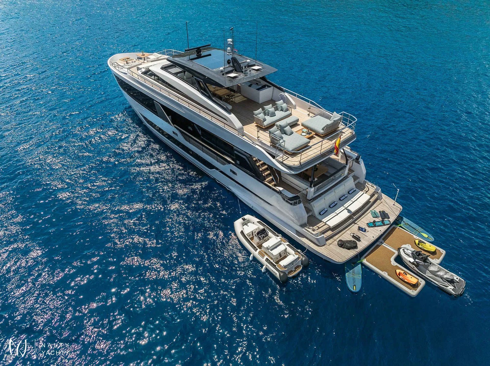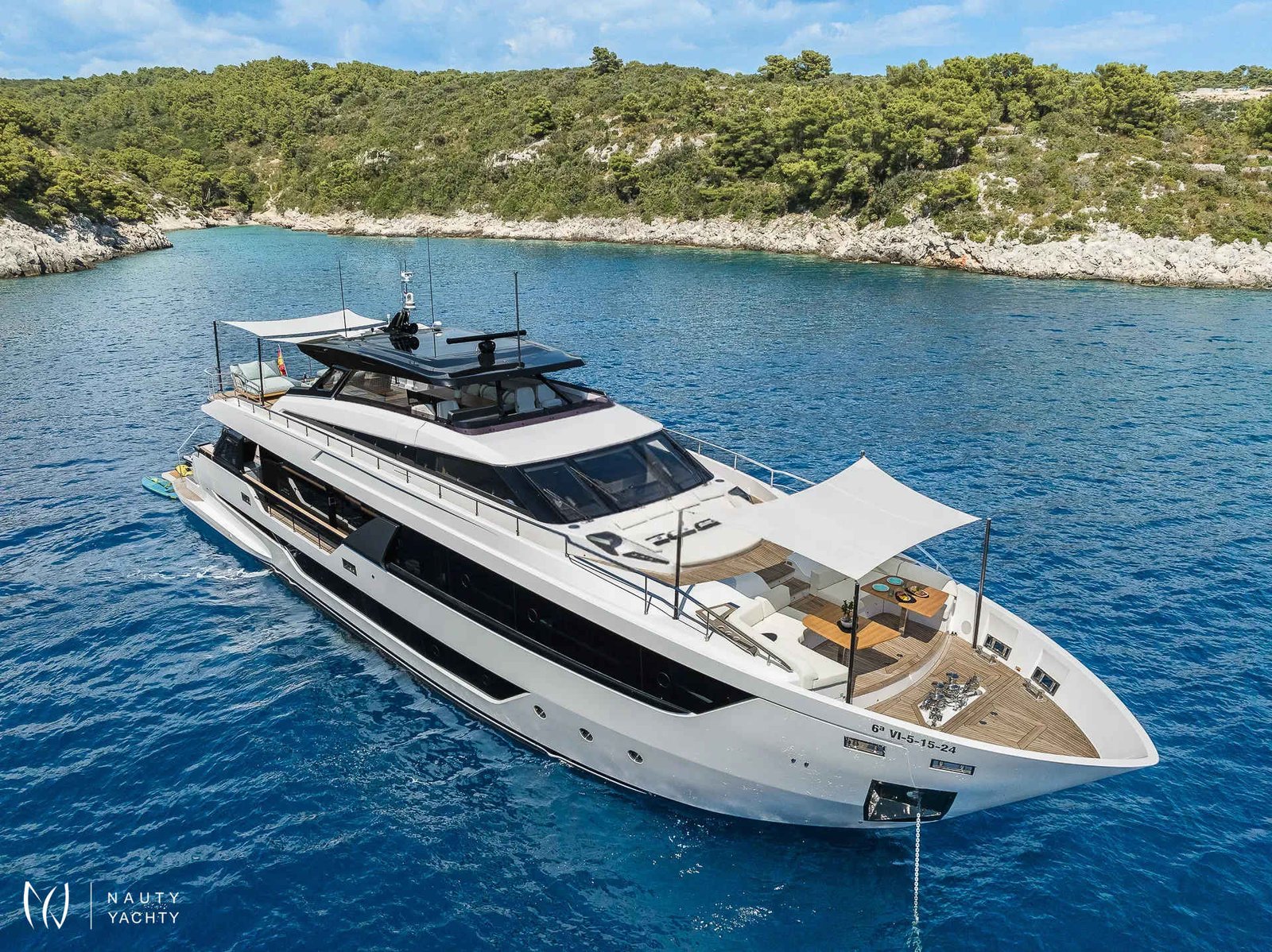 The luxurious LA MOROCHA yacht, built in 2024 by the renowned Ferretti shipyard, offers an unmatched charter experience in the Mediterranean. This stunning yacht combines state-of-the-art technology with a sleek and elegant design, making it the perfect choice for exploring the breathtaking Balearic Islands.Designed for ultimate comfort, LA MOROCHA boasts spacious outdoor areas where guests can relax, sunbathe, or enjoy exquisite meals surrounded by the beauty of the sea. Its luxurious interior features stylish finishes and comfortable accommodations, ensuring an unparalleled experience both indoors and outdoors.Equipped with advanced stabilizers and high-performance engines, LA MOROCHA provides smooth cruising, allowing you to travel effortlessly between secluded coves and vibrant ports. Whether you’re planning a family vacation or a getaway with friends, this yacht guarantees unforgettable moments on the water.Choosing a luxury yacht charter like LA MOROCHA is more than a trip – it’s an exclusive experience of elegance and freedom. With a professional and attentive crew dedicated to your comfort, every detail is meticulously managed to create a seamless and stress-free journey.Explore the Balearic Islands aboard LA MOROCHA, where every day becomes an adventure and every moment is filled with the luxury of the sea.