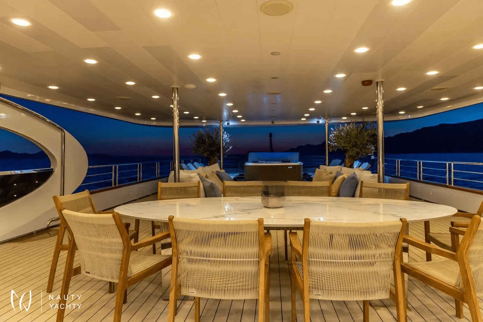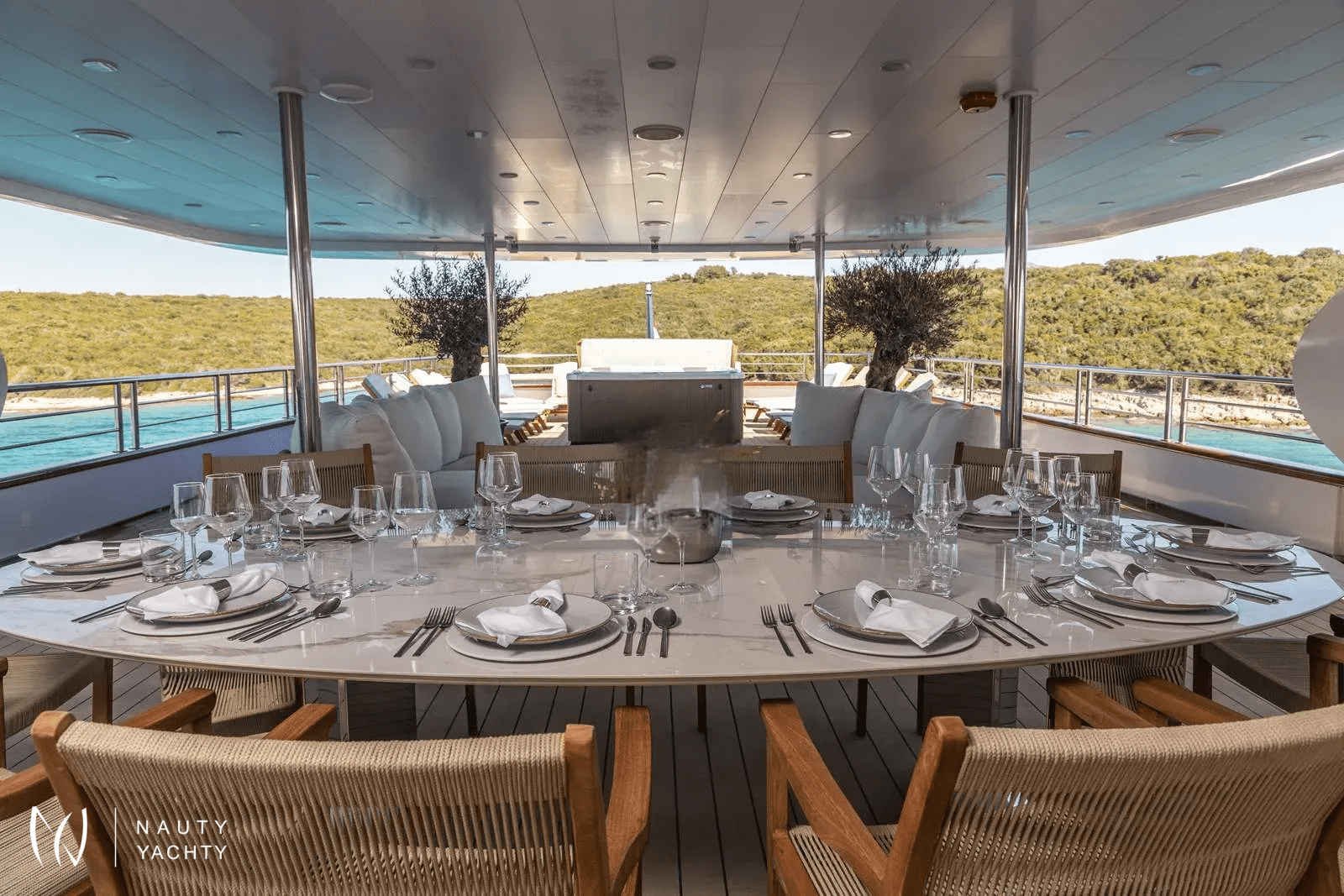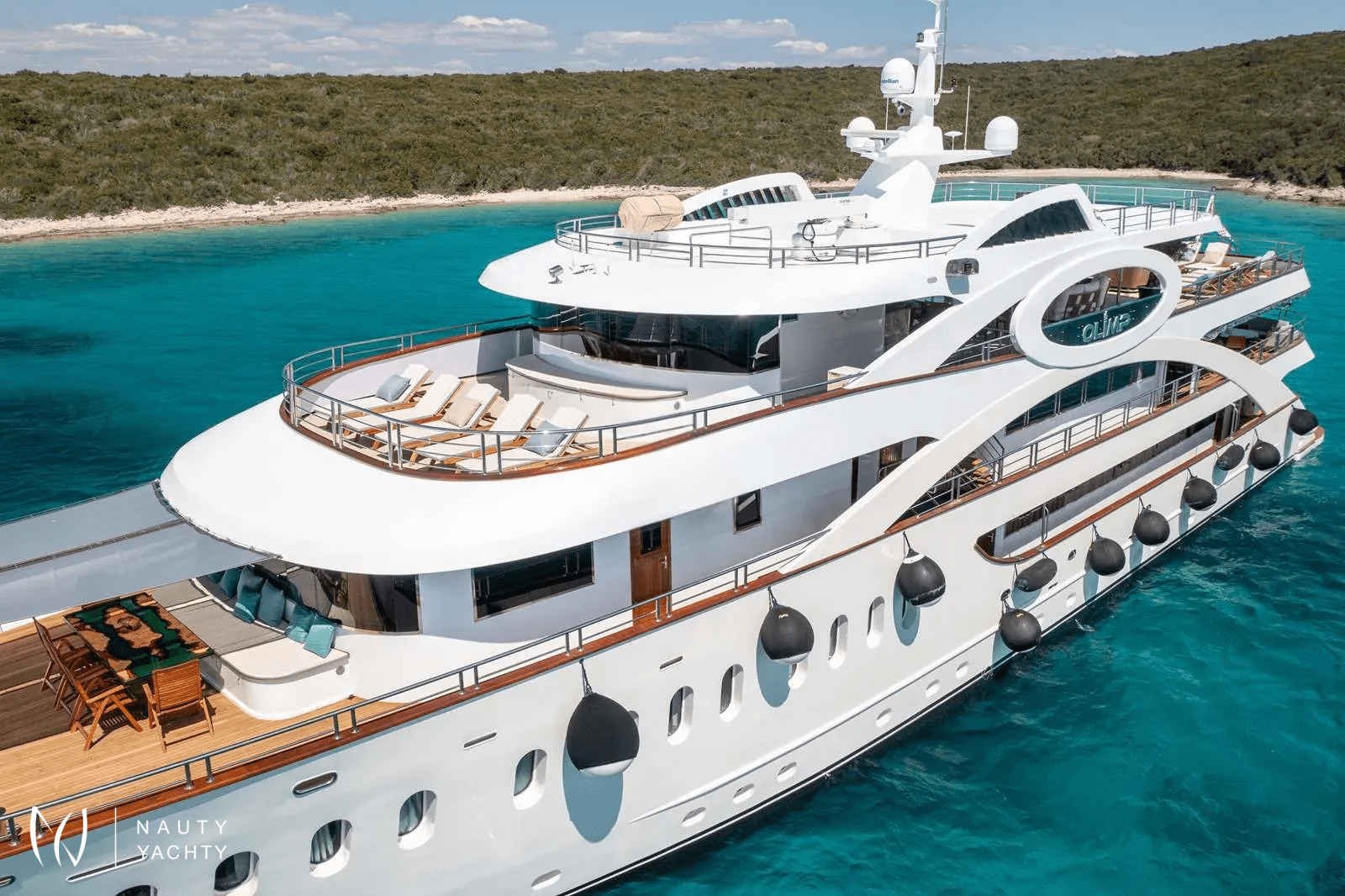 The name OLYMP comes from the Croatian version of Olympus, home of the ancient Greek gods in mythology, and accurately represents the robustness and grandeur of this ship. The crew on Olympus is known for its kindness, hospitality, and incredible hospitality. Anton, the ship's owner, and the captain, is at the center of Olympus' crew.A unique luxury boat 49 m long will make your trip unforgettable, with 10 modern and contemporary cabins accommodating up to 18 passengers. All cabins are fully air-conditioned with private home-style bathrooms with a shower, toilet, sink, mirror, and hairdryer on the main and lower decks.Olimp offers a lot of space for relaxation, socializing, and a beautiful view of the Adriatic!There is an elegant lounge on the main deck of Olympus. The spacious space of soothing and minimalist design and large tables invite you to relax during a meal, and the decorated indoor lounge is ideal for reading, relaxing, and socializing.Leaving the lounge, a shaded outdoor lounge awaits you, a place to sip your morning coffee while cruising to your next destination.Spacious upper deck equipped with sun loungers and jacuzzi while enjoying the sun and impressive views.