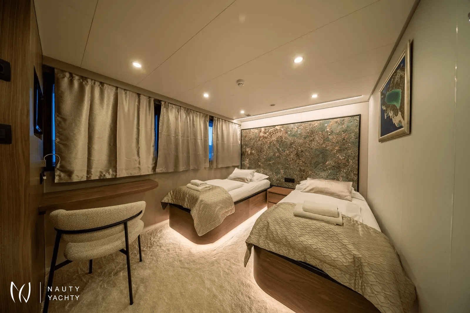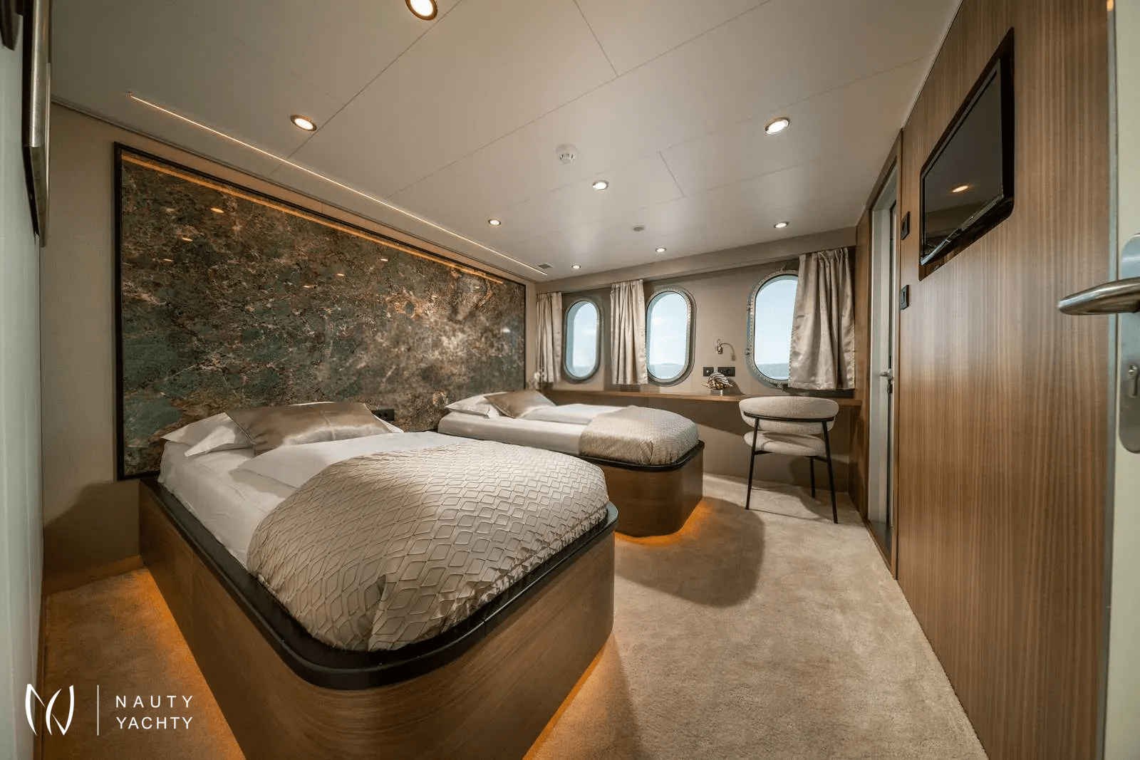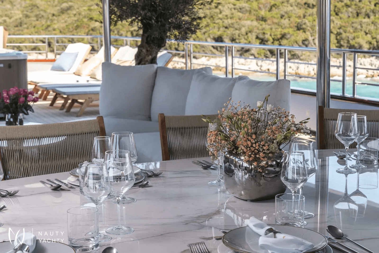 The name OLYMP comes from the Croatian version of Olympus, home of the ancient Greek gods in mythology, and accurately represents the robustness and grandeur of this ship. The crew on Olympus is known for its kindness, hospitality, and incredible hospitality. Anton, the ship's owner, and the captain, is at the center of Olympus' crew.A unique luxury boat 49 m long will make your trip unforgettable, with 10 modern and contemporary cabins accommodating up to 18 passengers. All cabins are fully air-conditioned with private home-style bathrooms with a shower, toilet, sink, mirror, and hairdryer on the main and lower decks.Olimp offers a lot of space for relaxation, socializing, and a beautiful view of the Adriatic!There is an elegant lounge on the main deck of Olympus. The spacious space of soothing and minimalist design and large tables invite you to relax during a meal, and the decorated indoor lounge is ideal for reading, relaxing, and socializing.Leaving the lounge, a shaded outdoor lounge awaits you, a place to sip your morning coffee while cruising to your next destination.Spacious upper deck equipped with sun loungers and jacuzzi while enjoying the sun and impressive views.