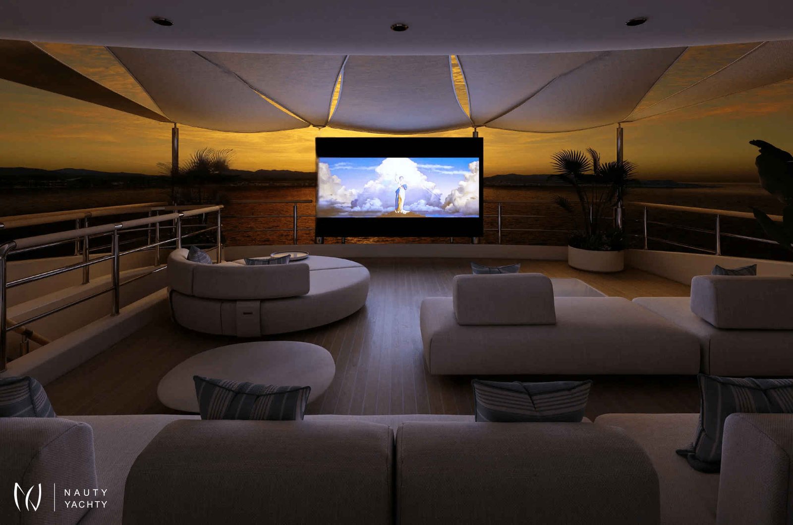The sundeck includes a gym with en-suite facilities, a fore-lounge with a custom-designed Jacuzzi, sunbeds, and an outdoor cinema equipped with a projector
