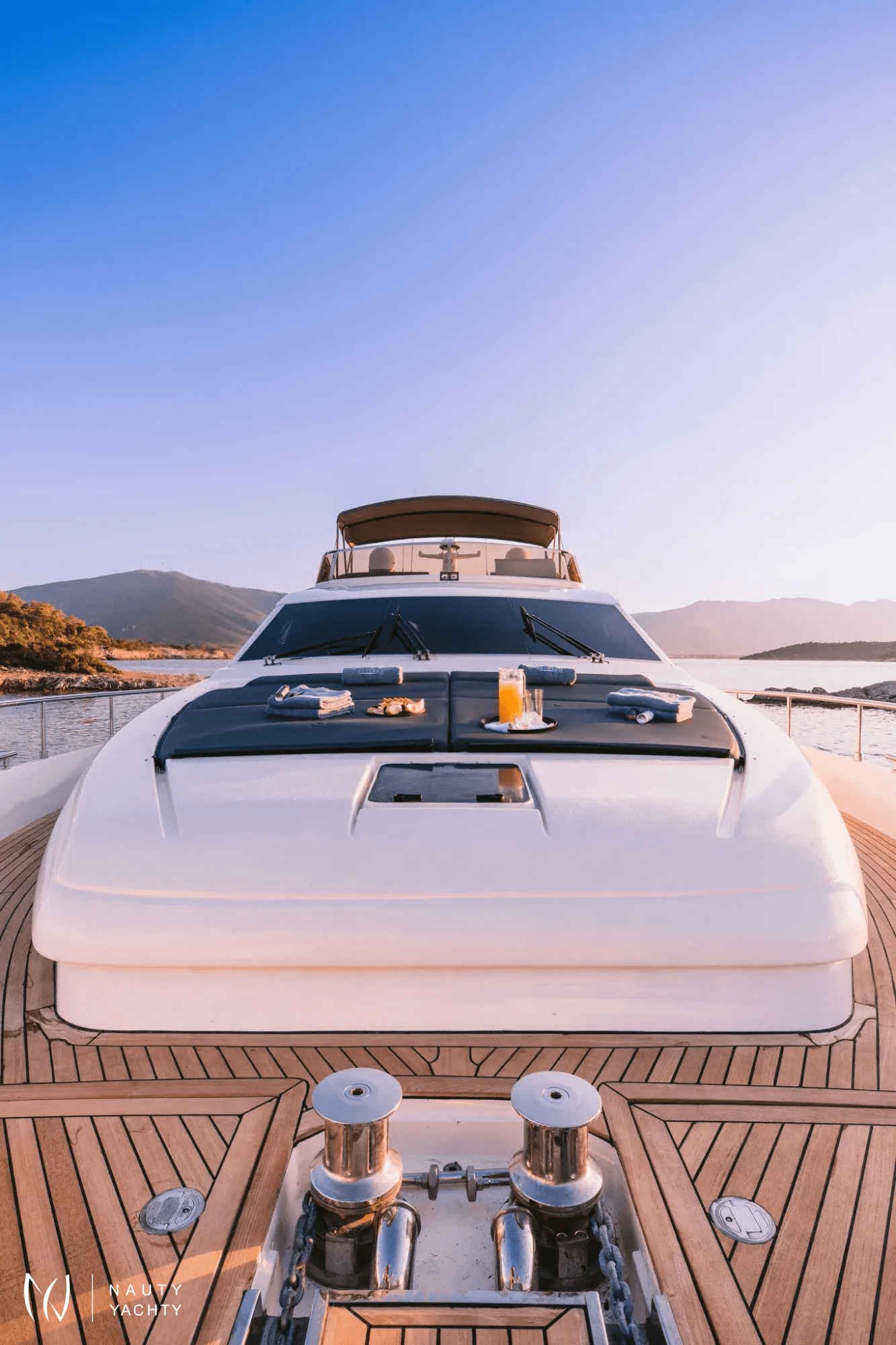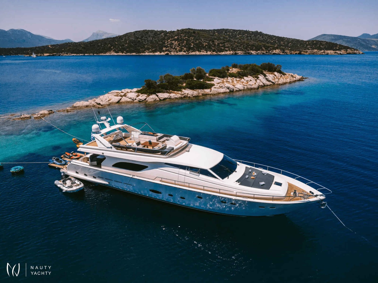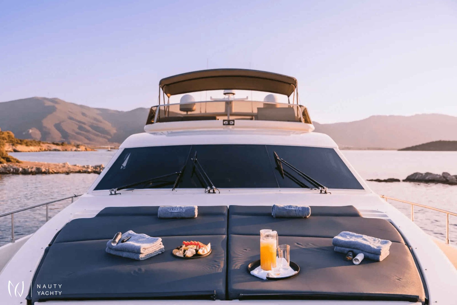 m/y OXYGEN is appointed with all the fine touches and elements to make for a Zen atmosphere, a fabulous crew to run her smoothly and exciting sea toys for the adventurous. She completed a total refit in 2022, making her appear like new! Always maintained in excellent condition with minimal-modern decor and the best in technology, she makes for perfect holidays at sea amongst the beautiful islands. She features 4 cabins: Two Twin cabins, one VIP cabin with double bed in the fore and one large Master cabin complete with large closets, a safe, vanity, couch and a bathroom.A Bar with BBQ on the sun deck, a rich expanse of luxurious sun beds on the sun deck and cushioning at the fore create exterior areas for maximum comfort. The unique lighting around the yacht and inside at the dining table create an atmosphere of extraordinary luxury and a playful mood.New speakers placed throughout the yacht, in and out, and a plethora of sea toys onboard for children and adults further enhance the experience onboard m/y OXYGEN.