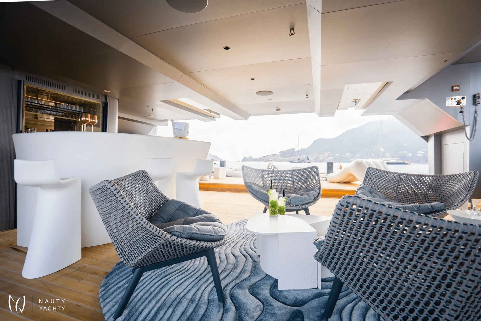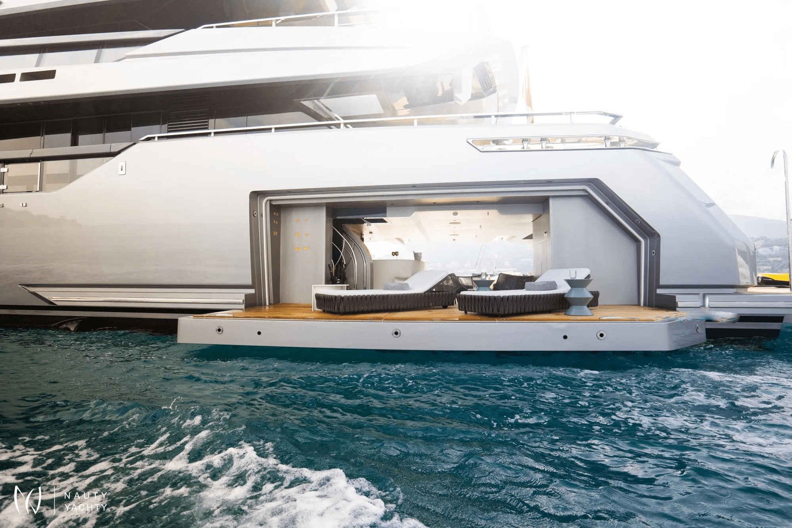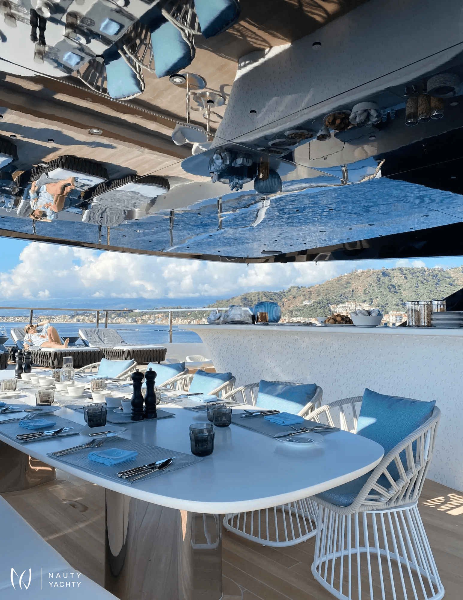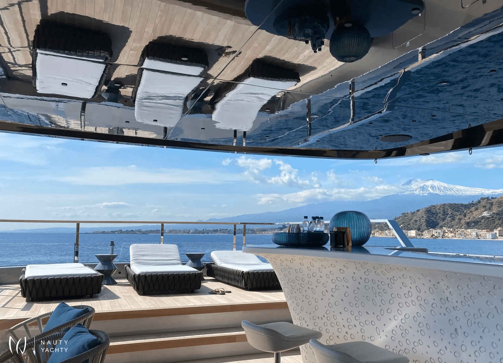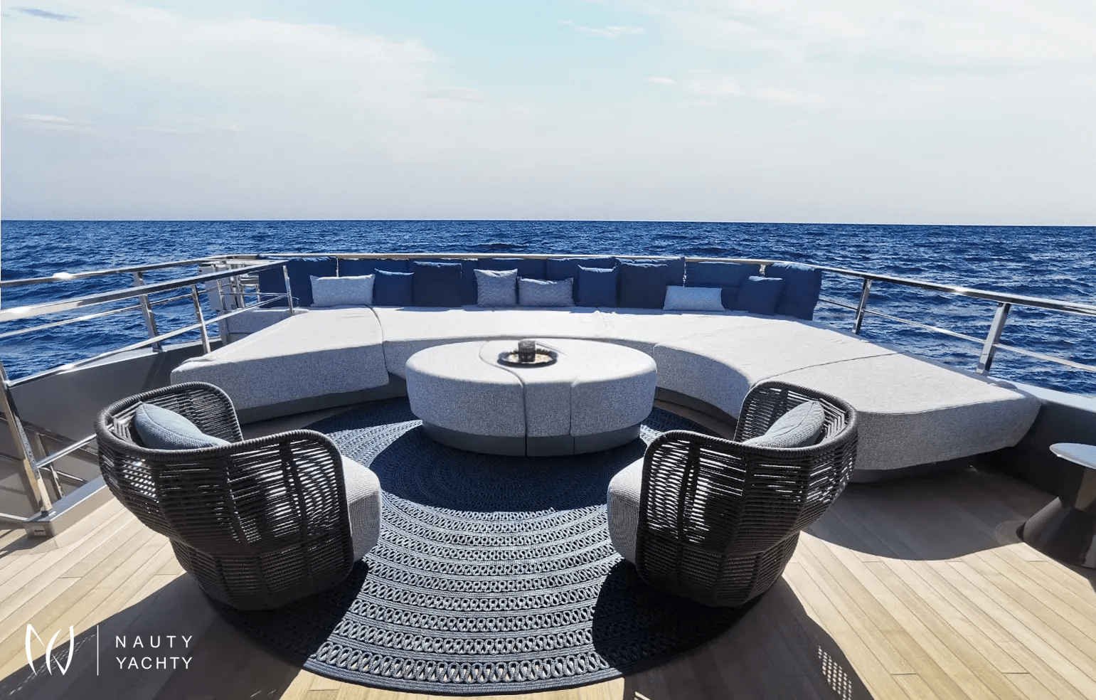 Ample deck space with relaxing sun loungers/living spaces