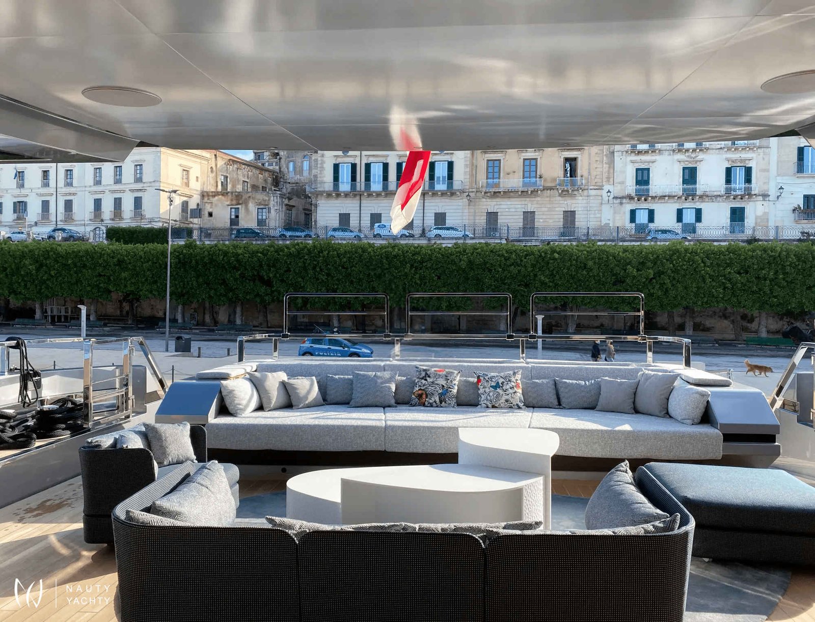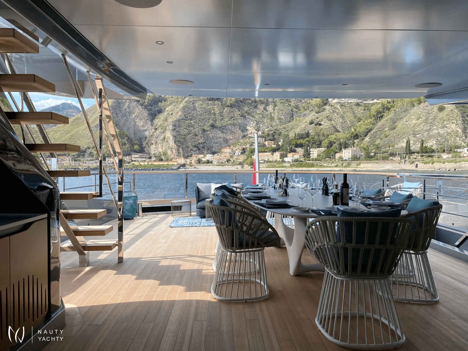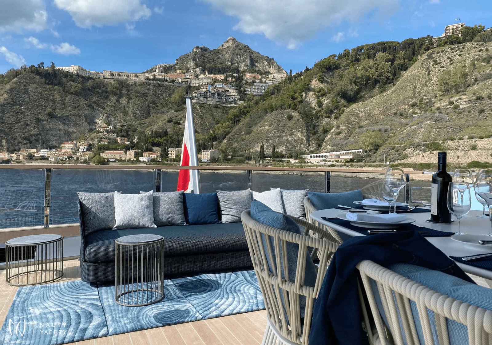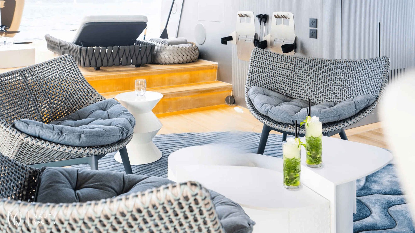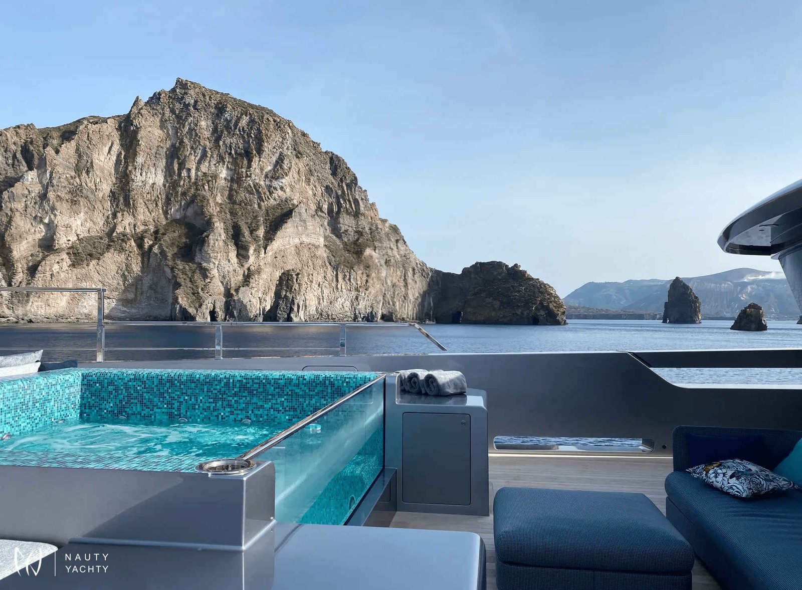 Ample deck space with relaxing sun loungers/living spaces