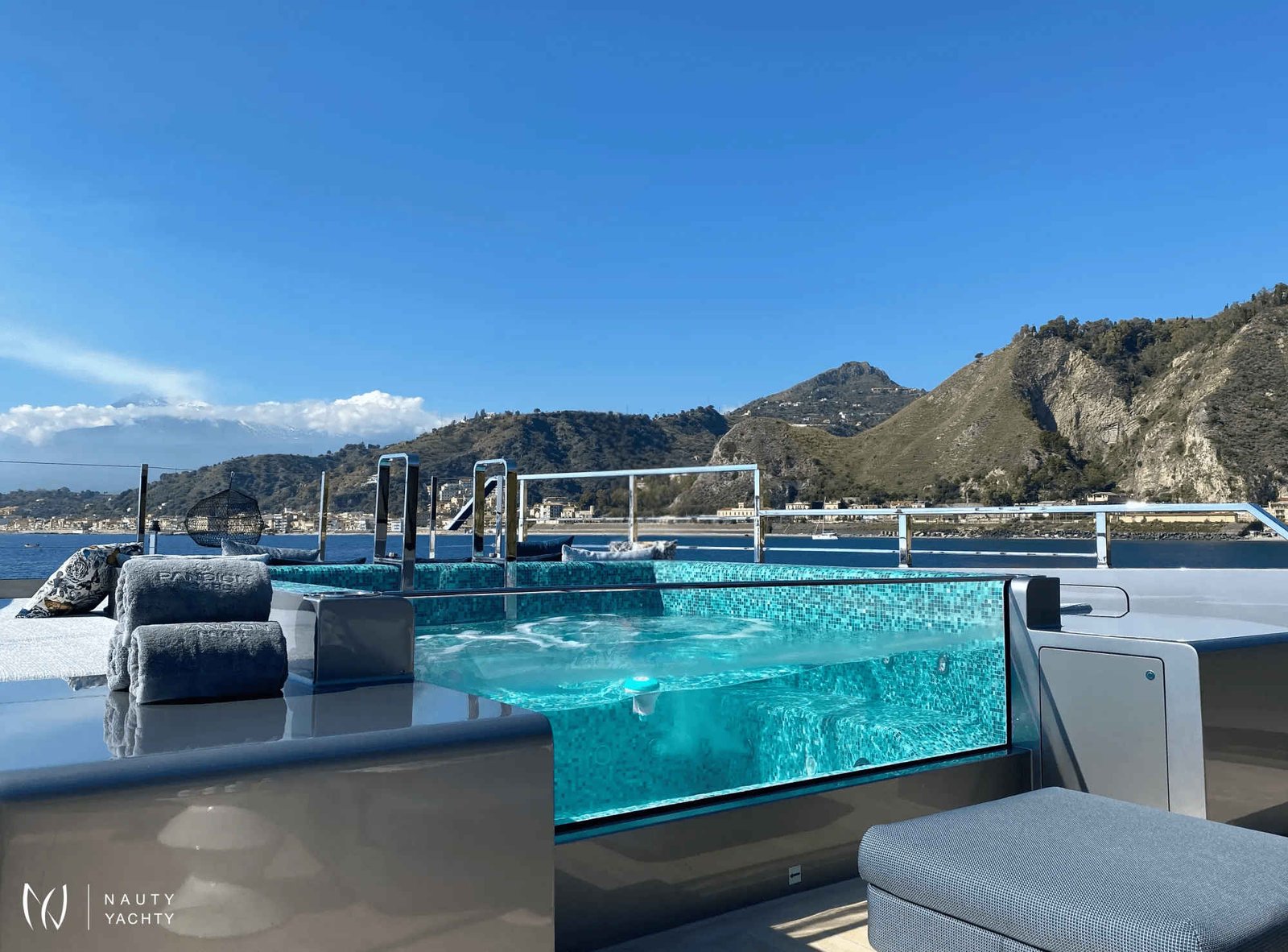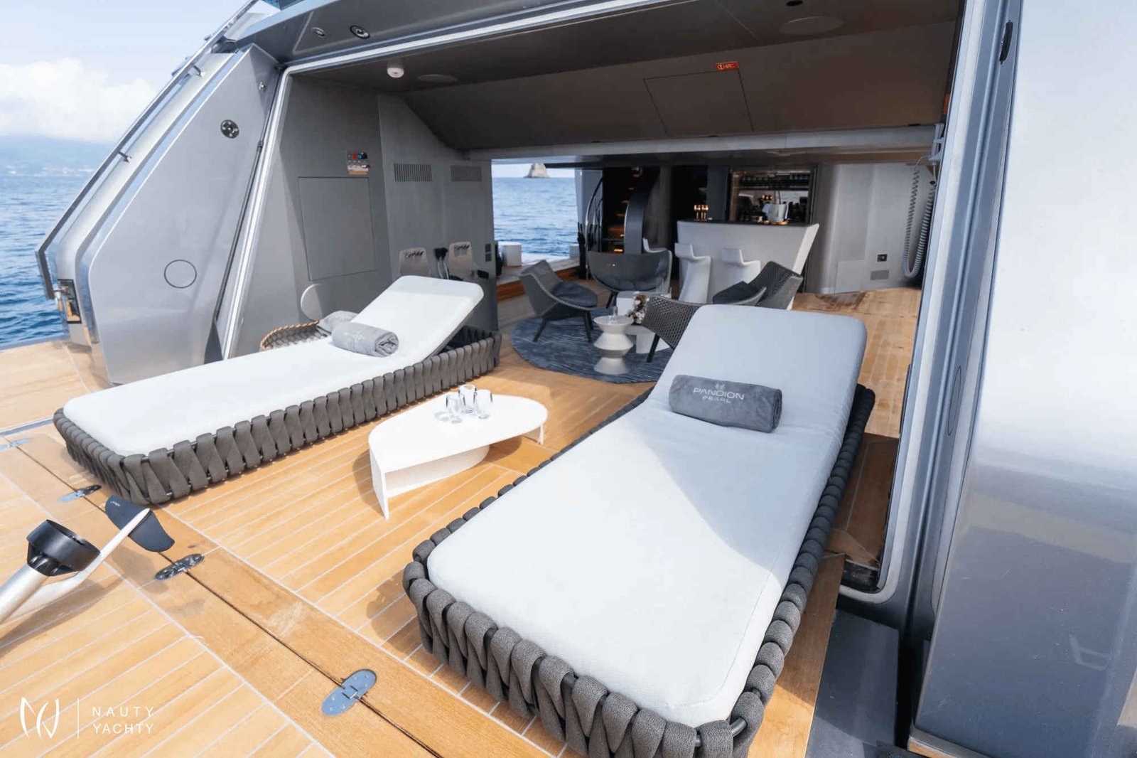 Bold, modern and chic, luxury 44.5m motor yacht Pandion Pearl was built by Sanlorenzo and delivered in 2021. She is a full aluminium fast displacement yacht, with interior design by A.S.H studio and exterior styling by Zuccon International.Her innovative layout offers exceptional space and privacy previously unseen on a yacht this size. With an ultra-wide beam of 9m, she is the perfect yacht for charter guests, simultaneously offering opulent communal areas for entertaining and relaxation, whilst retaining a vast sense of space across four decks with a particular focus on outdoor living and enjoyment of the ocean. With accommodation for up to nine crew members, guests on board Pandion Pearl can expect world-class service as her magnificent crew strive to curate an unforgettable charter experience.Pandion Pearl accommodates up to 12 guests in five suites including a class leading Master suite spanning over three decks. Designed as a private apartment of 147 square meters and organised on three levels, the master is a truly luxurious and innovative offering never seen before on a superyacht of this size, complete with indoor and outdoor areas and a private pool. A further four cabins are located on the lower deck, including two VIPs with double beds, and two twins with an additional pullman bed in each.On the lower deck, she features a wonderful beach club with comfortable sunbeds, which also serves as the yacht’s incredible tender and toy garage. The impressive collection includes two Williams tenders, a jet ski, three Seabobs, a fliteboard, water skis, wake board, kayaks, paddleboards, a swimming pool, inflatable pyramid with slide, a trampoline and three floating pontoons for endless amounts of fun on the water.Heading up to the main deck cockpit aft, guests will find a lounge area with plenty of seating, leading through to the bright and open main salon which features a well-stocked bar, stylish seating and a satellite TV for entertainment. The galley and first floor of the Master cabin are also accessible from the main deck.On the upper deck aft, there is a gorgeous alfresco dining and entertaining area with an additional sofa, leading inside to a formal dining area when guests wish to dine indoors. The wheelhouse is located amidship and forward of this, guests will find a well-equipped gym area, which leads out to the impressive jacuzzi-pool and lounge area.Last but not least is the sun deck, where guests can enjoy spectacular panoramic views of the ocean and shoreline. There are generous sun pads aft, with a shaded dining and bar area amidship and further sunbeds on the foredeck.