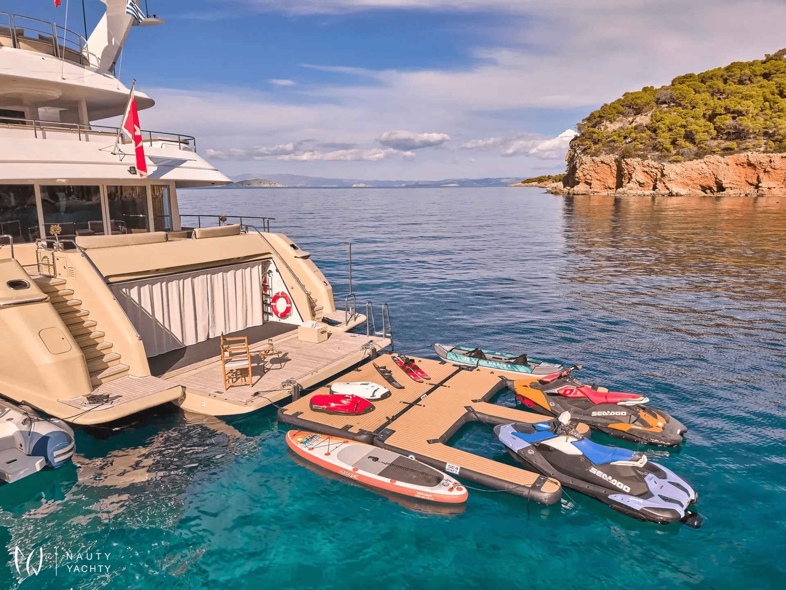 Discover the exquisite charm of M/Y Prometheus I, a stunning masterpiece built by Heesen Yachts. This exceptional charter yacht has been impeccably maintained by her owner, with a comprehensive refit completed in 2023.Step onto the main deck and be greeted by a stylish saloon, featuring large, comfortable sofas perfect for relaxation and adorned with impressive artwork. Adjacent, a spacious dining area invites you to enjoy private dinners in an elegant setting. Accommodating up to twelve guests, Prometheus I offers five beautifully appointed cabins. The Master Suite, located on the main deck, boasts an office study, an additional bed, and a walk-in wardrobe. On the lower deck, you'll find two VIP double cabins and two triple cabins, each with a double bed and an extra single bed.On the upper deck, enjoy delightful breakfasts at the large dining table or soak up the sun on the plush sofas. The expansive sundeck features a magnificent Jacuzzi, perfect for refreshing mornings in the sun, complemented by a comfortable sunbathing area and a bar serving delicious cocktails.For those seeking adventure, Prometheus I offers an extensive array of water toys, including two SEABOBs and two Jet Skis, ensuring endless excitement on the water.Led by a professional captain and a passionate crew, the team is dedicated to making your experience aboard Prometheus I truly unforgettable, creating memories that will last a lifetime. Welcome aboard!