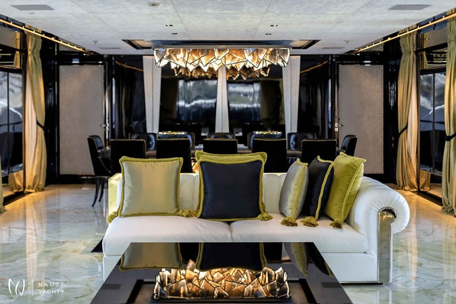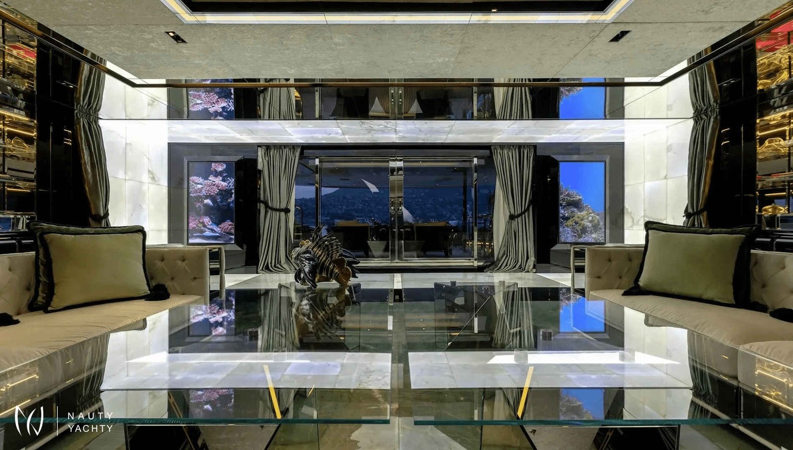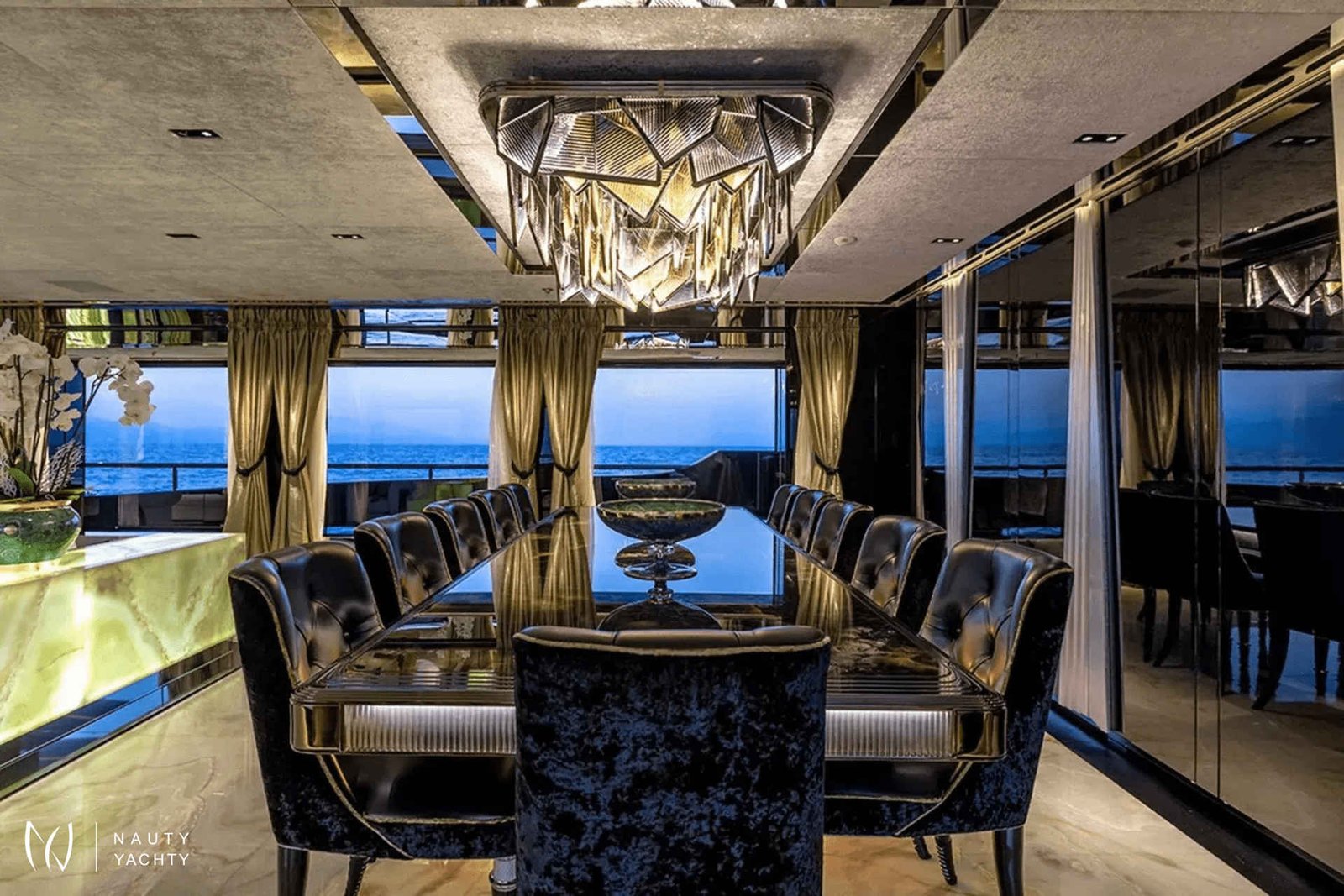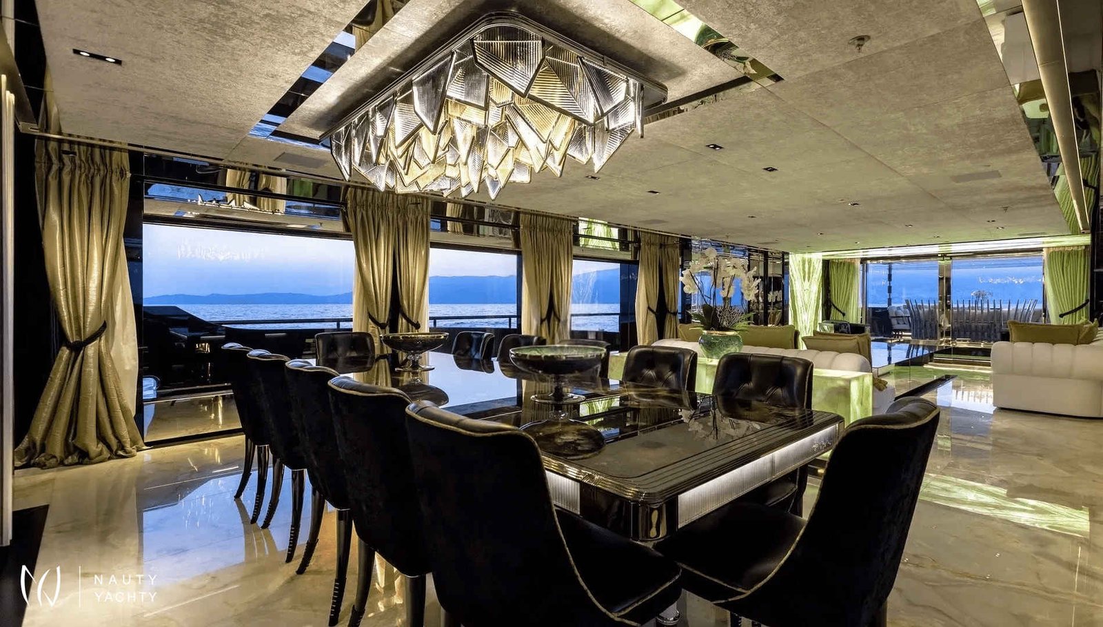 60m SARASTAR is a striking and opulent superyacht designed for total luxury on the open seas. Well-known for its lavish interiors and, with transatlantic range and the ability to reach speeds exceeding 20 knots, SARASTAR is a rare combination of high-performance and unbridled decadence. From its sleek, sculpted hull to its vibrant, eclectic interiors, every inch exudes sophistication and attention to detail.One-of-a-kind from bow to stern, more is more onboard SARASTAR.INTERIORGlamorous and full of drama, SARASTAR was designed by the hand of an owner in pursuit of perfection; its interior design full of lush materials and an exacting eye for quality.Back-lit white and green onyx lines the main salon, a spacious affair with a huge cinema screen and a state-of-the-art Kaleidescape M300 entertainment system perfect for cinephiles. Fine marble line its floors and artistic furnishings fill its spaces, providing a decadent backdrop. In this space, the lounge and formal dining areas are divided by a back-lit onyx island that at a push of a button transforms into a bar to offer seamless service. Above the stunning dining table is a striking custom Baldi amber crystal chandelier.The bridge deck salon provides another impressive lounge area with stunning deep-seated white velvet and black silk sofas, exquisite crystal tables, and the same impressive mirror TV setup as the salon below. A solid single-piece of onyx serves as yet another decadent dining option onboard and can light-up for just that little bit of "extra".Spectacular stairs made of polished steel and illuminated white onyx extend across all interior decks. Framing this stairwell is an exquisite ‘living sculpture’ by artist Lorenzo Malfatti which is made of crystal and LED lights which change colour.ACCOMMODATION:SARASTAR comfortably accommodates up to 12 guests over six cabins that rival the world’s most luxurious hotels. Each guest cabin has its own distinct personality showcasing custom silk textiles by Stefano Ricci, exotic marbles, and semi-precious stones.Master suite:SARASTAR's stunning master suite on the main deck is a masterclass in high-end design, featuring deep blue onyx detailing, a plush velvet ceiling, and fold-down balconies on both sides, offering a private sanctuary. The master suite also boasts his-and-hers bathrooms connected by an opulent walk-through Italian shower finished in gorgeous deep blue marble.Guest cabins:An additional five cabins, four double and one twin, can be found on the lower deck. All are indulgently appointed in a different color: rich purple, royal blue, glittering gold, bronze, petroleum, and rose and feature luxurious bathrooms.EXTERIORDesigners at Lucas Dini placed great emphasis on natural lighting, with skylights installed across both of SARASTAR's upper teak decks flooding the aft areas with natural light during the day and illuminating in the evening to create the perfect ambience. A backlit onyx staircase provides access from the main deck up to the sundeck.SARASTAR's main deck aft provides plush, casual seating undercover with 180-degree unimpeded views. If alfresco dining is desired, the deck above offers a large table on the spacious bridge deck aft. There is also a retractable awning available to provide shade and additional seating in large comfortable armchairs for relaxing in pre and post meal times.The foredeck is impressive with a vast open bow that can be transformed into a dance floor or a sunbathing oasis. This versatile space is perfect for taking in the sights or enjoying a private outdoor gathering. The generous seating and sunbathing areas can be sunny or shaded with convenient optional awnings. Note no heli-ops are possible for charter, the helipad is for emergency use only.SARASTAR’s sundeck is nothing short of spectacular. This oversized, open-plan space is a true highlight of the yacht, featuring a large glass-enclosed bar, a spacious lounge area and a workout space with panoramic views. Guests can enjoy the sun by day or host glamorous parties by night. A subtle glass surround provides protection from the breeze without impeding the view, and a full-beam cactus garden adds a surprising and unique touch, bringing a bit of the desert to the seas!Below, SARASTAR's sizeable beach club offers its own private retreat with sun loungers and seating during the day, and in the evening it transforms into another alfresco bar area with nightclub vibes from the ambient floor lighting.HOLLYWOOD CRED:Adding a touch of Hollywood glamour to an already utterly glamorous yacht, SARASTAR under the fictious name “Mediterranean Queen” starred in the 2019 Netflix film "Murder Mystery", featuring Jennifer Aniston and Adam Sandler.