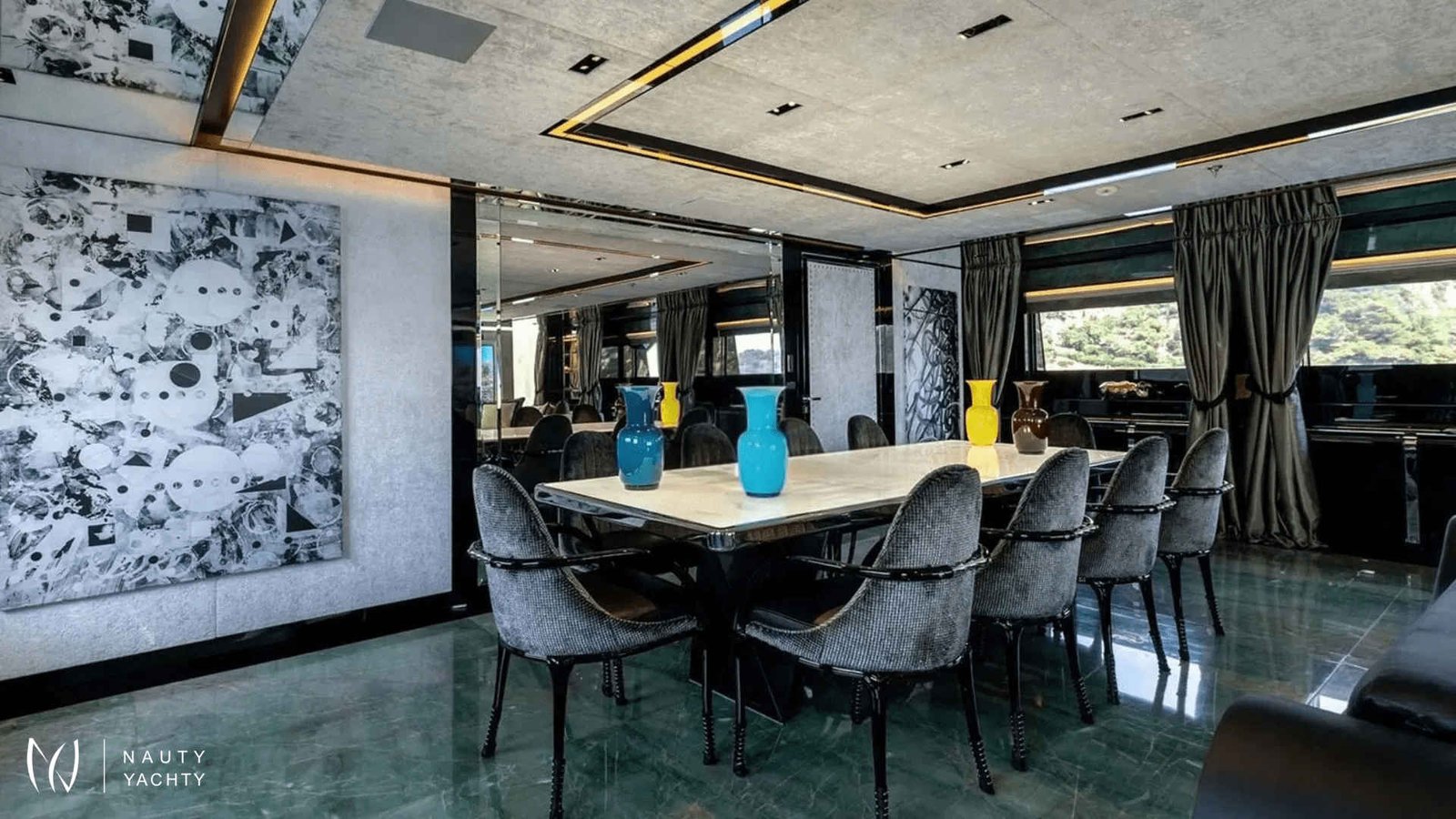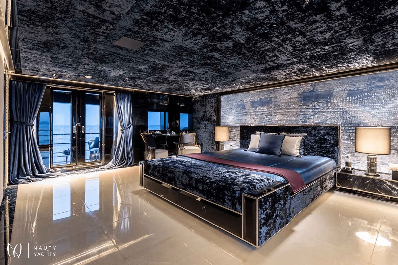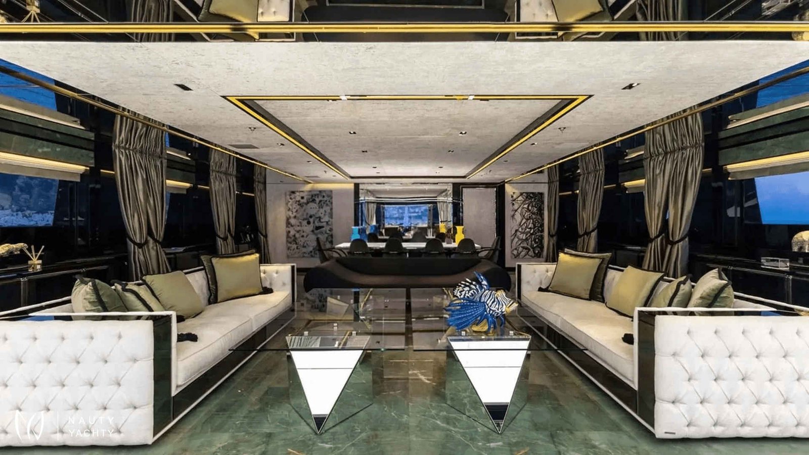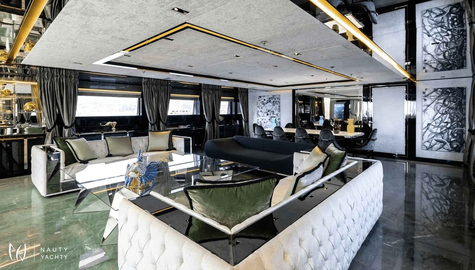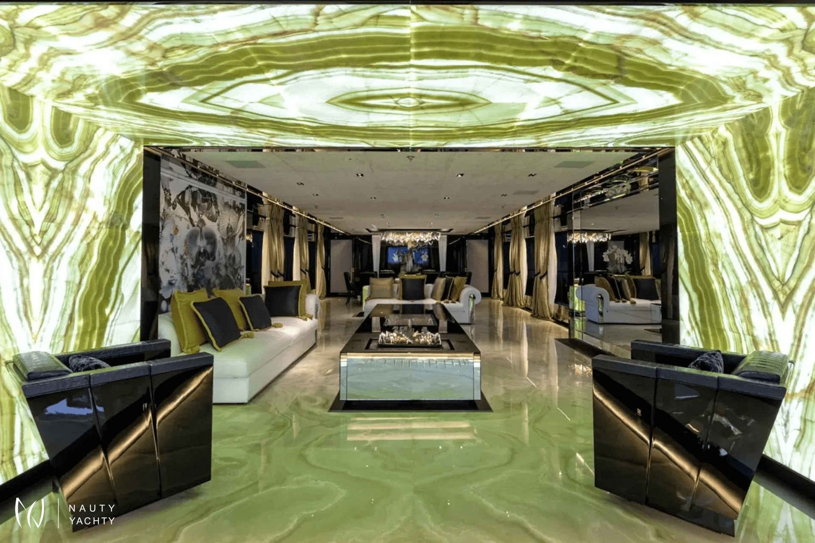 60m SARASTAR is a striking and opulent superyacht designed for total luxury on the open seas. Well-known for its lavish interiors and, with transatlantic range and the ability to reach speeds exceeding 20 knots, SARASTAR is a rare combination of high-performance and unbridled decadence. From its sleek, sculpted hull to its vibrant, eclectic interiors, every inch exudes sophistication and attention to detail.One-of-a-kind from bow to stern, more is more onboard SARASTAR.INTERIORGlamorous and full of drama, SARASTAR was designed by the hand of an owner in pursuit of perfection; its interior design full of lush materials and an exacting eye for quality.Back-lit white and green onyx lines the main salon, a spacious affair with a huge cinema screen and a state-of-the-art Kaleidescape M300 entertainment system perfect for cinephiles. Fine marble line its floors and artistic furnishings fill its spaces, providing a decadent backdrop. In this space, the lounge and formal dining areas are divided by a back-lit onyx island that at a push of a button transforms into a bar to offer seamless service. Above the stunning dining table is a striking custom Baldi amber crystal chandelier.The bridge deck salon provides another impressive lounge area with stunning deep-seated white velvet and black silk sofas, exquisite crystal tables, and the same impressive mirror TV setup as the salon below. A solid single-piece of onyx serves as yet another decadent dining option onboard and can light-up for just that little bit of "extra".Spectacular stairs made of polished steel and illuminated white onyx extend across all interior decks. Framing this stairwell is an exquisite ‘living sculpture’ by artist Lorenzo Malfatti which is made of crystal and LED lights which change colour.ACCOMMODATION:SARASTAR comfortably accommodates up to 12 guests over six cabins that rival the world’s most luxurious hotels. Each guest cabin has its own distinct personality showcasing custom silk textiles by Stefano Ricci, exotic marbles, and semi-precious stones.Master suite:SARASTAR's stunning master suite on the main deck is a masterclass in high-end design, featuring deep blue onyx detailing, a plush velvet ceiling, and fold-down balconies on both sides, offering a private sanctuary. The master suite also boasts his-and-hers bathrooms connected by an opulent walk-through Italian shower finished in gorgeous deep blue marble.Guest cabins:An additional five cabins, four double and one twin, can be found on the lower deck. All are indulgently appointed in a different color: rich purple, royal blue, glittering gold, bronze, petroleum, and rose and feature luxurious bathrooms.EXTERIORDesigners at Lucas Dini placed great emphasis on natural lighting, with skylights installed across both of SARASTAR's upper teak decks flooding the aft areas with natural light during the day and illuminating in the evening to create the perfect ambience. A backlit onyx staircase provides access from the main deck up to the sundeck.SARASTAR's main deck aft provides plush, casual seating undercover with 180-degree unimpeded views. If alfresco dining is desired, the deck above offers a large table on the spacious bridge deck aft. There is also a retractable awning available to provide shade and additional seating in large comfortable armchairs for relaxing in pre and post meal times.The foredeck is impressive with a vast open bow that can be transformed into a dance floor or a sunbathing oasis. This versatile space is perfect for taking in the sights or enjoying a private outdoor gathering. The generous seating and sunbathing areas can be sunny or shaded with convenient optional awnings. Note no heli-ops are possible for charter, the helipad is for emergency use only.SARASTAR’s sundeck is nothing short of spectacular. This oversized, open-plan space is a true highlight of the yacht, featuring a large glass-enclosed bar, a spacious lounge area and a workout space with panoramic views. Guests can enjoy the sun by day or host glamorous parties by night. A subtle glass surround provides protection from the breeze without impeding the view, and a full-beam cactus garden adds a surprising and unique touch, bringing a bit of the desert to the seas!Below, SARASTAR's sizeable beach club offers its own private retreat with sun loungers and seating during the day, and in the evening it transforms into another alfresco bar area with nightclub vibes from the ambient floor lighting.HOLLYWOOD CRED:Adding a touch of Hollywood glamour to an already utterly glamorous yacht, SARASTAR under the fictious name “Mediterranean Queen” starred in the 2019 Netflix film "Murder Mystery", featuring Jennifer Aniston and Adam Sandler.