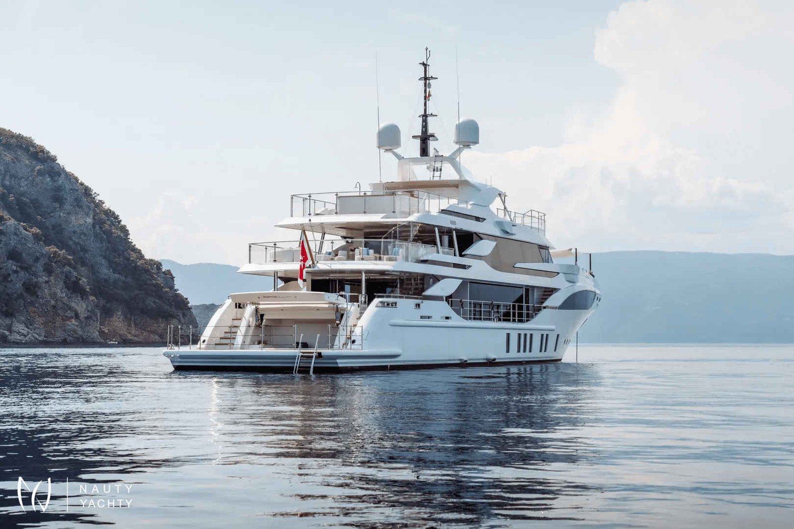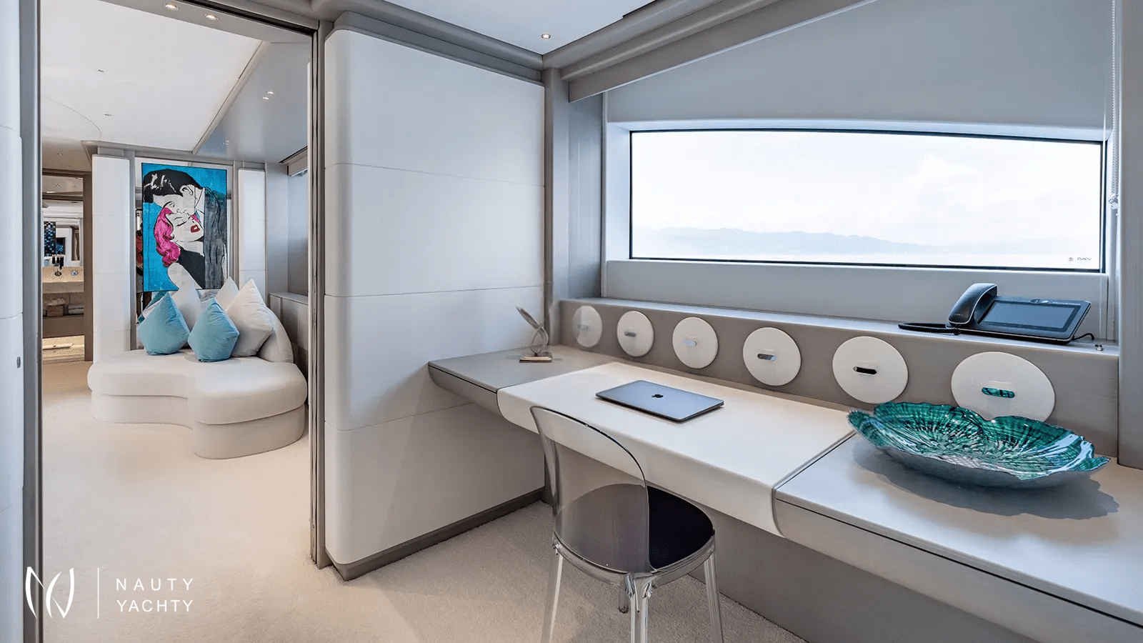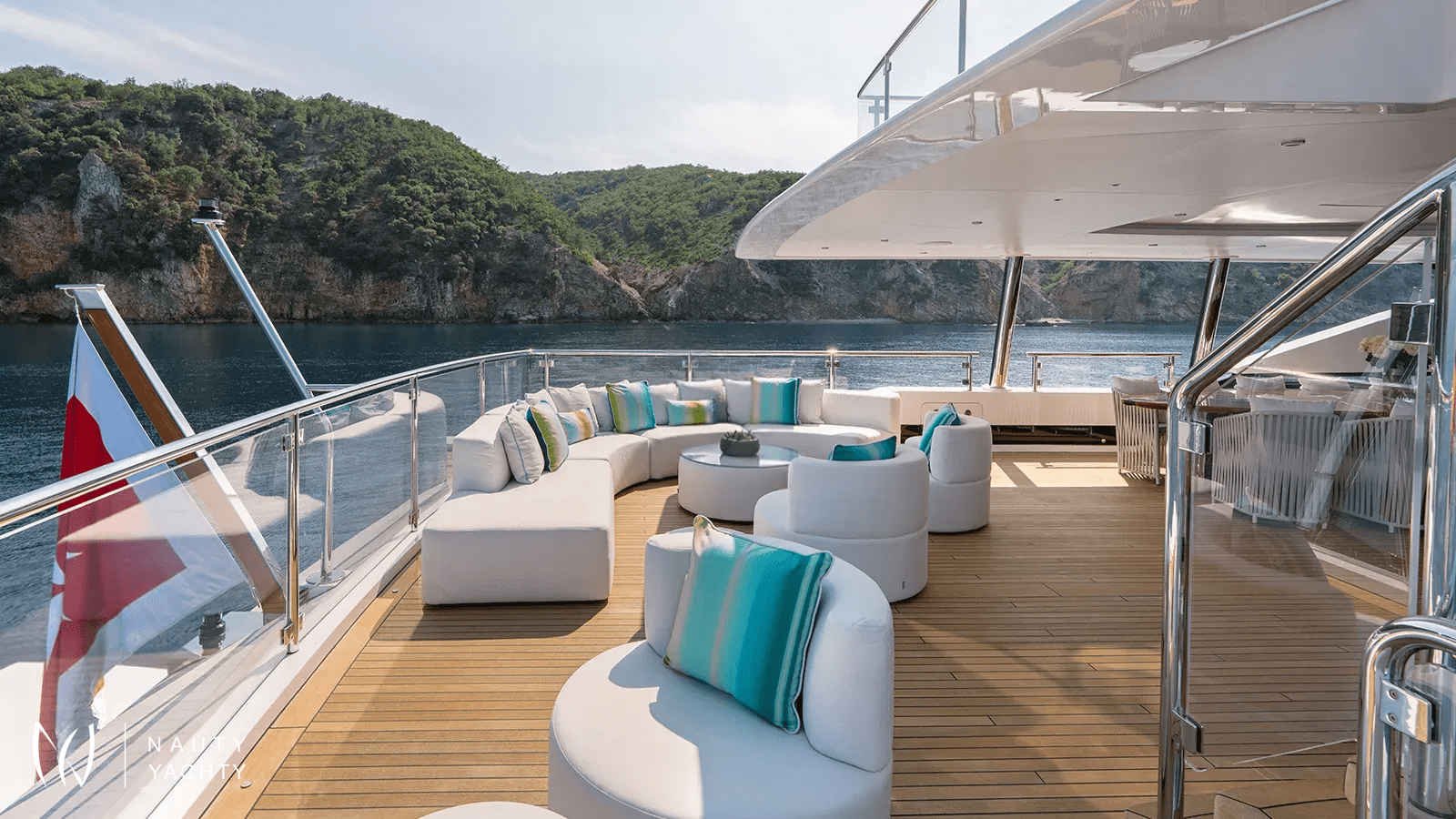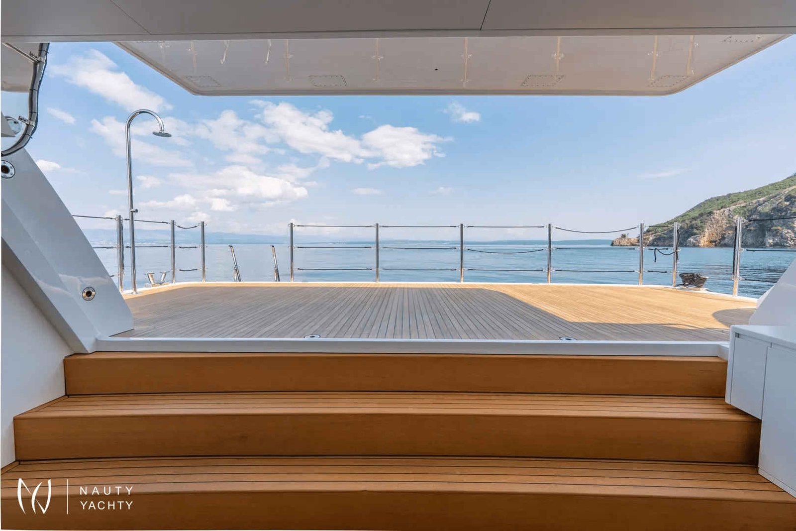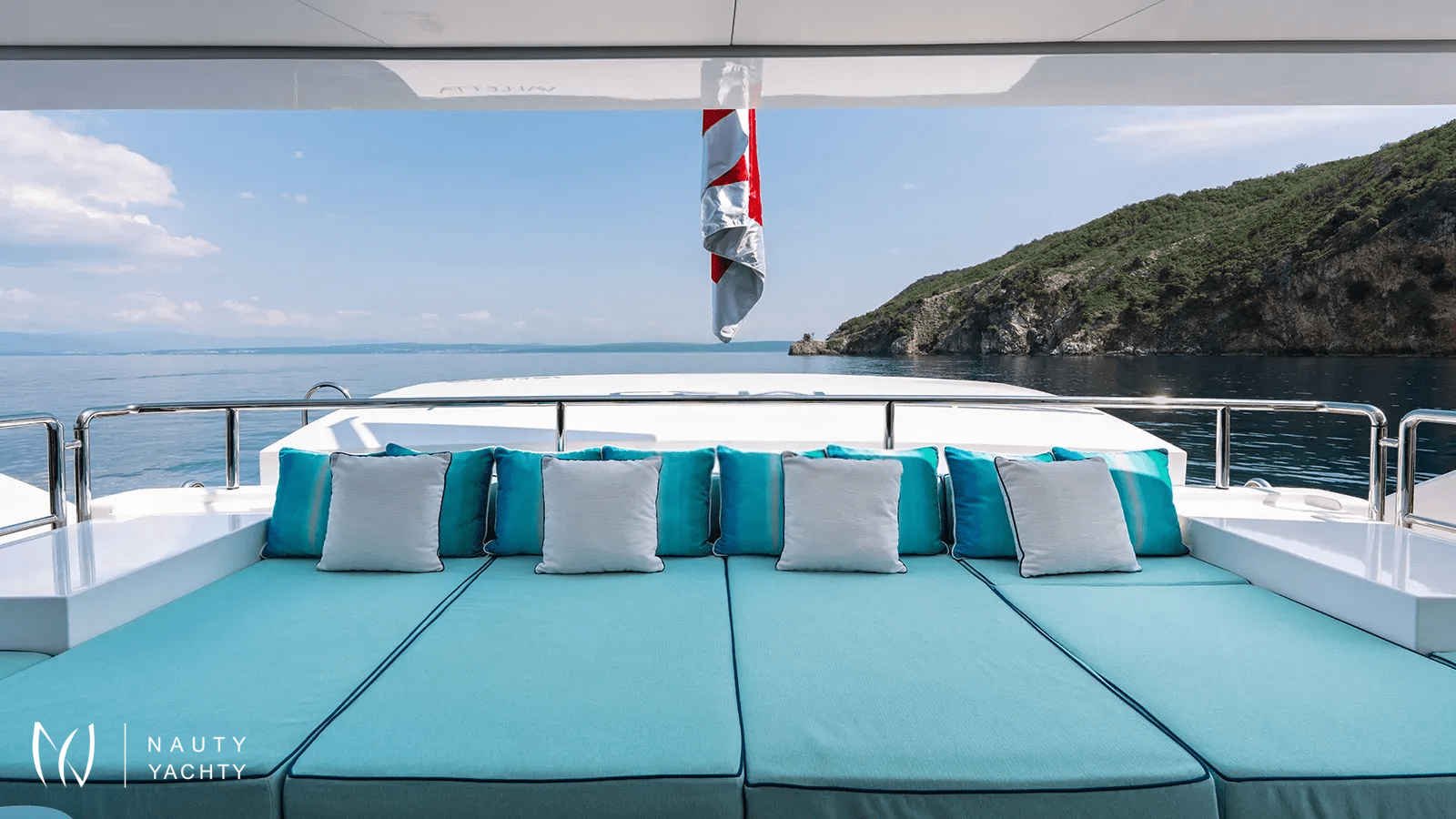 SEAGULL MRD features a sleek interior with minimalist design and contemporary sophistication. Bathed in natural light streaming through expansive windows, the spacious living areas offer a seamless connection to the surrounding ocean views. With her large volumes, guests can relish in the comfort of ample space for relaxation and entertainment indoors. Setting the onboard experience apart is not just elegance, but the silent experience she provides and a smooth and serene journey thanks to zero-speed stabilizers.Vast outdoor deck spaces make SEAGULL MRD an ideal platform for both relaxing and entertaining. She features expansive lounging areas forward and aft on the sun deck, adorned with plush sun pads, inviting sofas, and not one but two pools, including a Jacuzzi. Additional seating is found on the main deck forward, shaded for total comfort. Outdoor dining is a delight on the main deck aft, accompanied by a chic cocktail bar and vibrant turquoise-colored furnishings. With easy access to the water from the stern, guests are invited to explore the boundless beauty of the ocean.