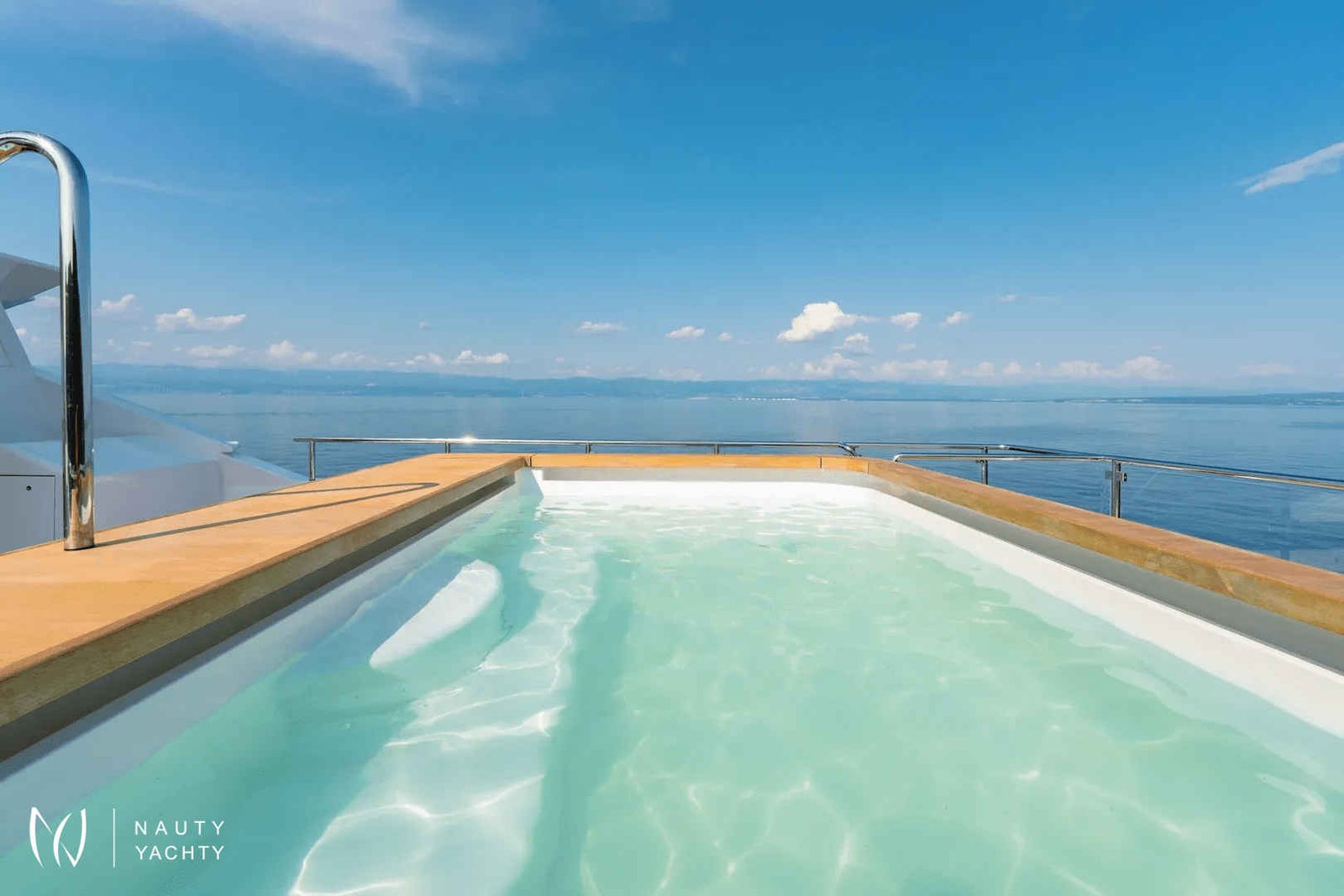 Fantastic Sun Deck featuring oversized Jacuzzi on aft & Swimming Pool forward
