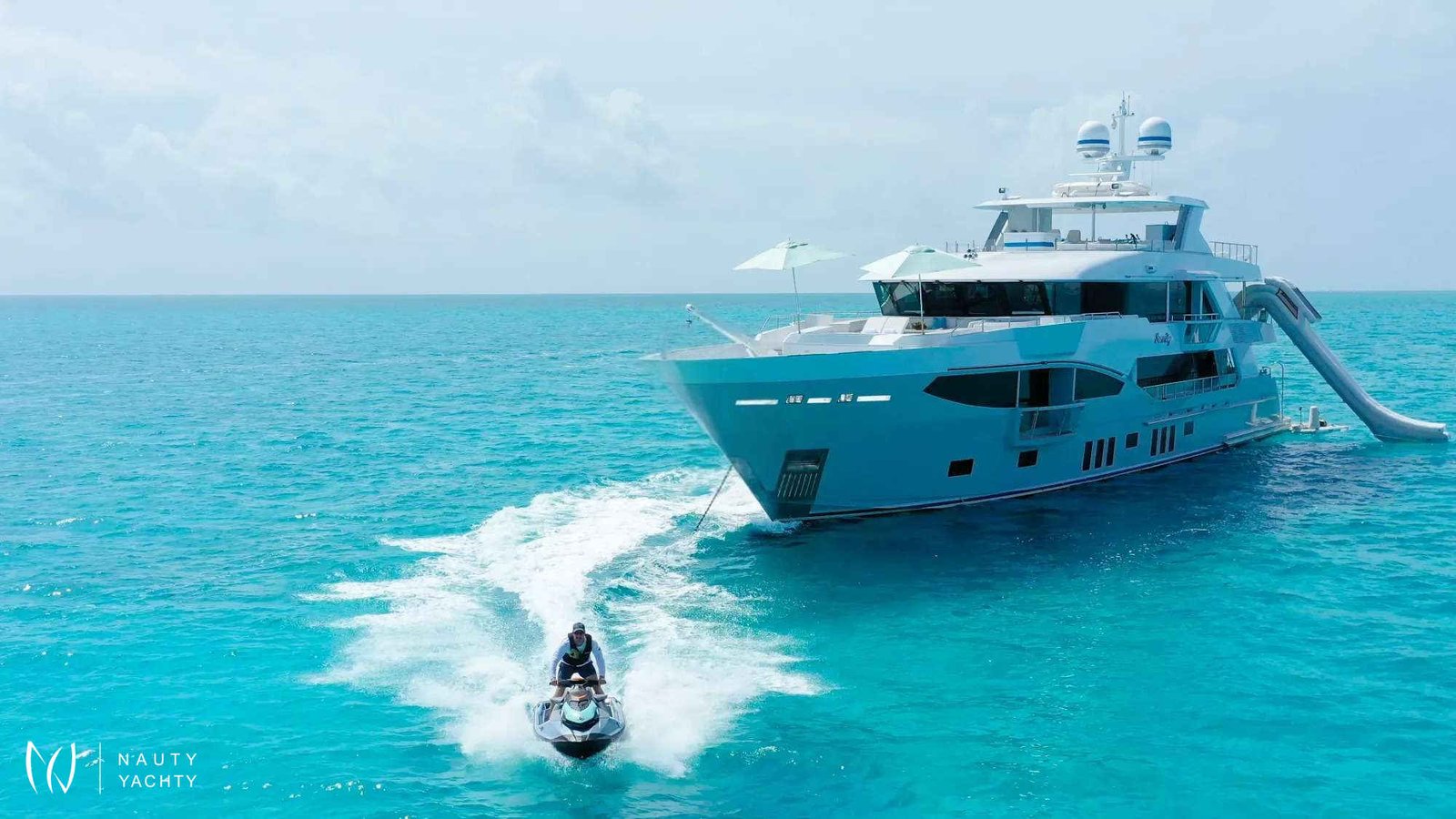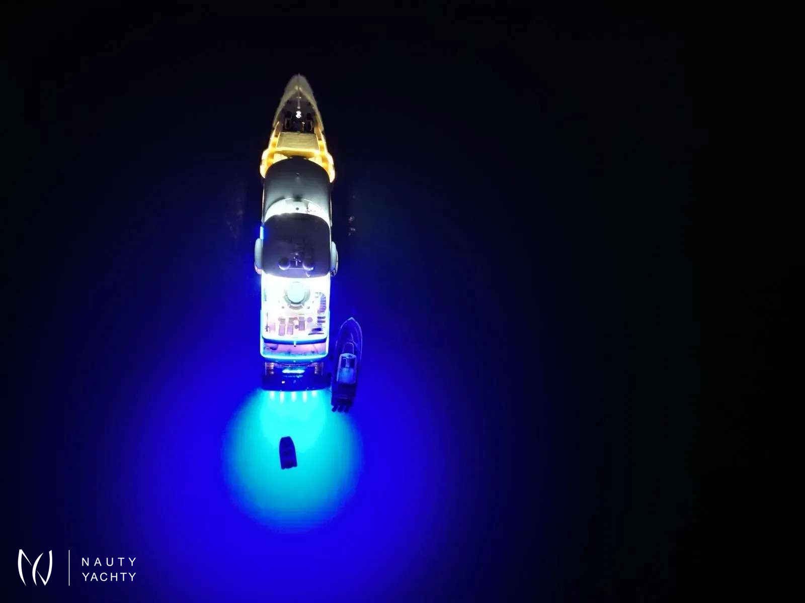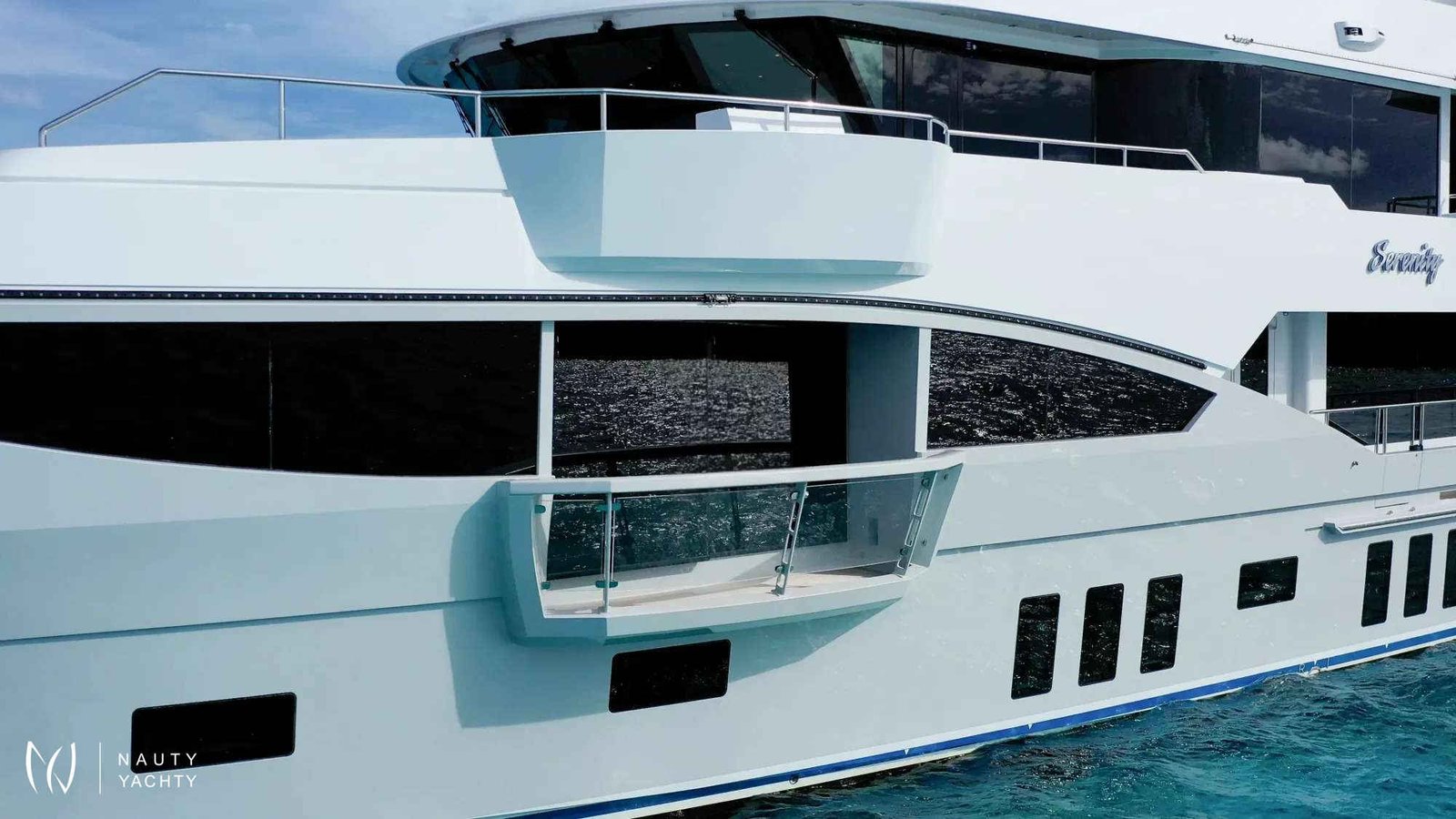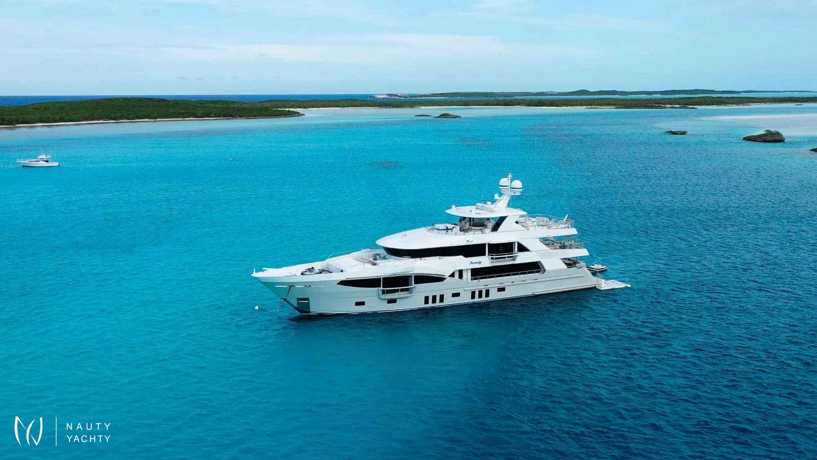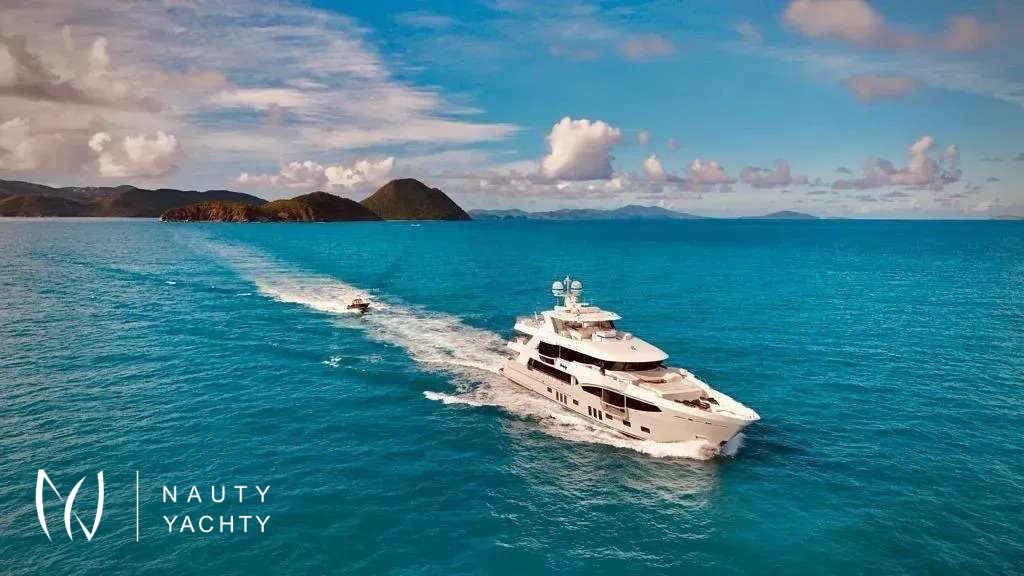 Serenity has accommodation for 12 guests in a cabin arrangement that comprises five doubles and one which is convertible between twin or double setup. The master suite resides on the main deck and benefits from his-and-her ensuites as well as two private balconies, and there’s a generously sized VIP suite on the upper deck.Sporting new interior furnishings and artwork following a 2023 refit, Serenity's interior offers versatile spaces for relaxing and socializing with ambient lighting able to set any tone. The main saloon is open plan to the formal dining table, and doors lead to an inviting aft deck with statement bar counter. Ascending to the deck above, a second skylounge features a large L-shape sofa, coffee table and cocktail bar.Serenity carries a huge array of water toys and accessories, and the selection offers something to entertain guests of all ages. There are Sea Doos and Sea Scooters, two SeaBobs, kayaks, snorkelling sets, wakeboards and body boards, various towable inflatables, fishing tackle, and a waterslide.A 34ft Custom Edge Water tender facilitates high-speed transfers between superyacht and shore, and day-long excursions along the coast. Other onboard amenities include high-speed Starlink internet, a selection of exercise equipment, and even a putting green.