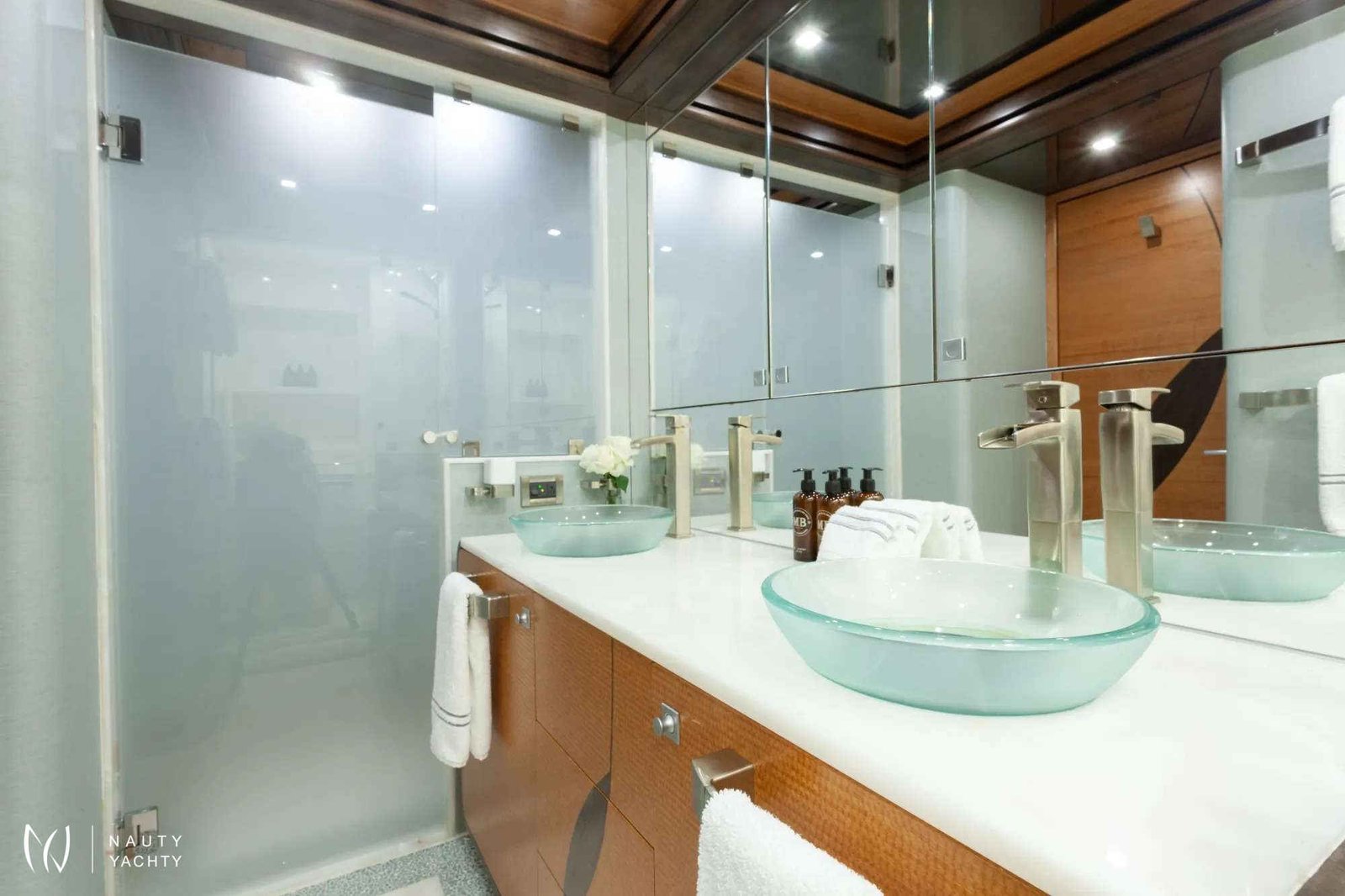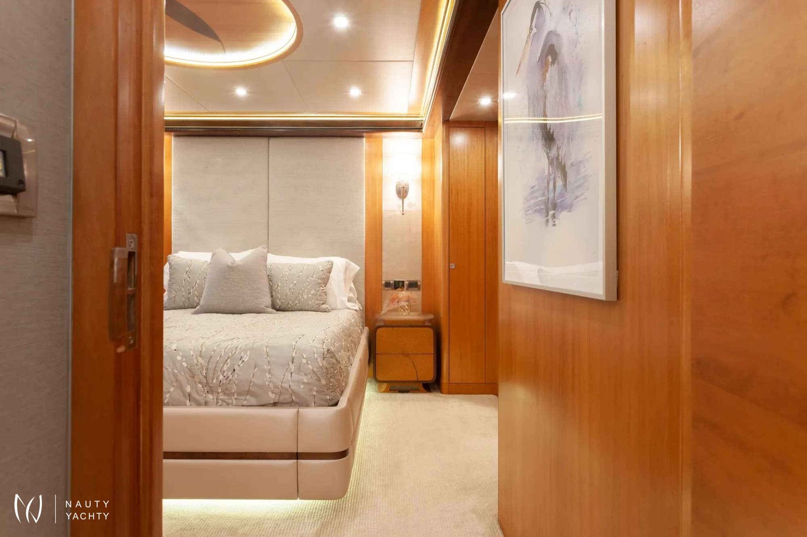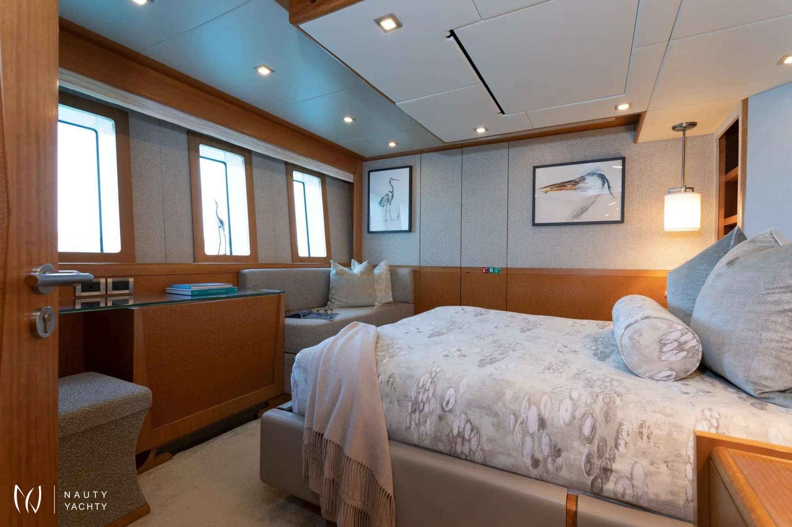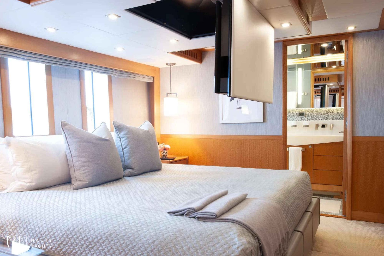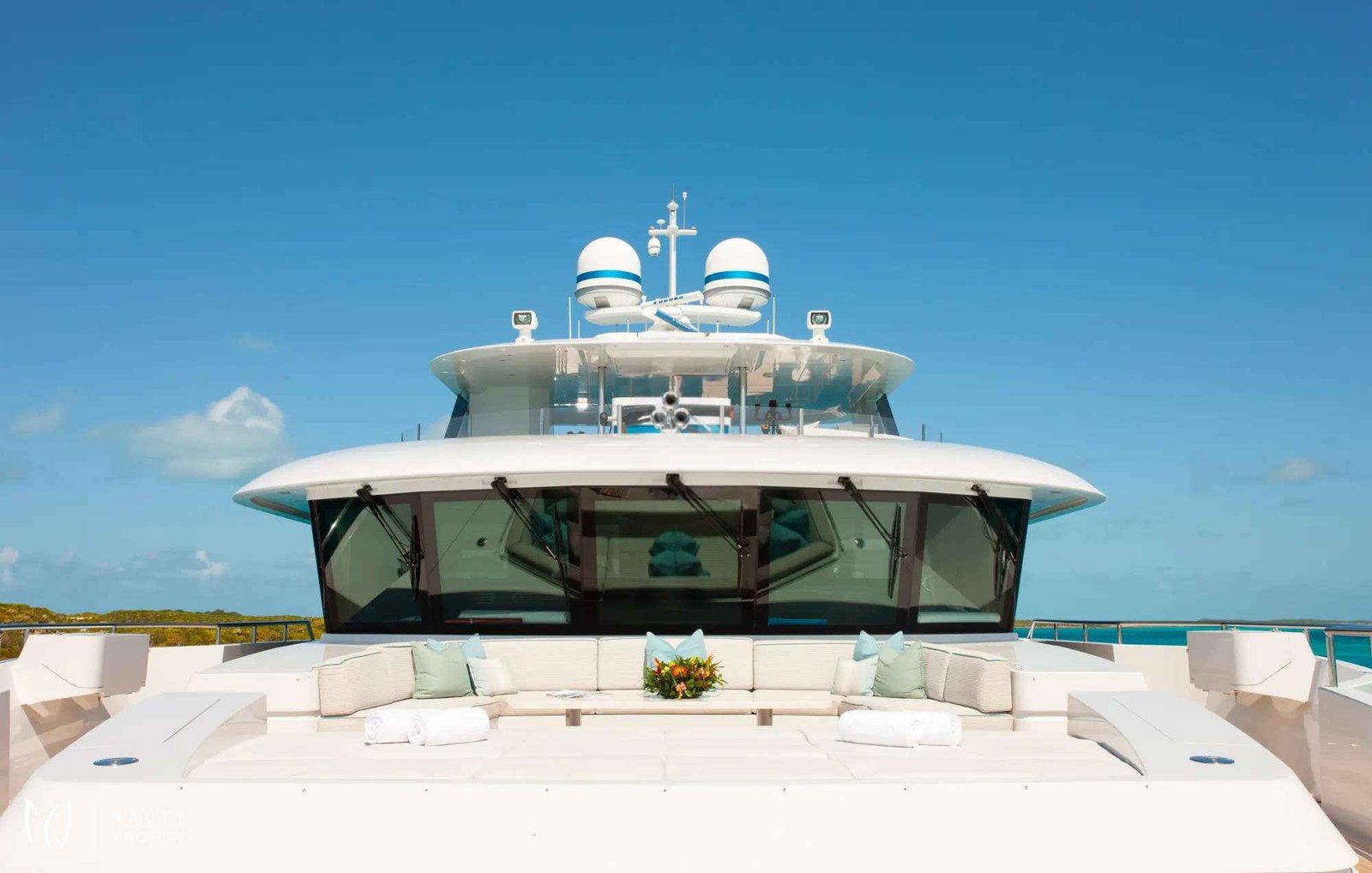 Serenity has accommodation for 12 guests in a cabin arrangement that comprises five doubles and one which is convertible between twin or double setup. The master suite resides on the main deck and benefits from his-and-her ensuites as well as two private balconies, and there’s a generously sized VIP suite on the upper deck.Sporting new interior furnishings and artwork following a 2023 refit, Serenity's interior offers versatile spaces for relaxing and socializing with ambient lighting able to set any tone. The main saloon is open plan to the formal dining table, and doors lead to an inviting aft deck with statement bar counter. Ascending to the deck above, a second skylounge features a large L-shape sofa, coffee table and cocktail bar.Serenity carries a huge array of water toys and accessories, and the selection offers something to entertain guests of all ages. There are Sea Doos and Sea Scooters, two SeaBobs, kayaks, snorkelling sets, wakeboards and body boards, various towable inflatables, fishing tackle, and a waterslide.A 34ft Custom Edge Water tender facilitates high-speed transfers between superyacht and shore, and day-long excursions along the coast. Other onboard amenities include high-speed Starlink internet, a selection of exercise equipment, and even a putting green.