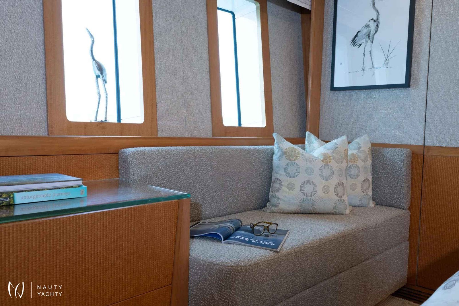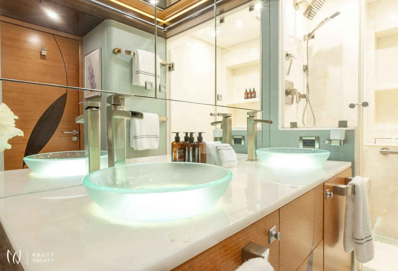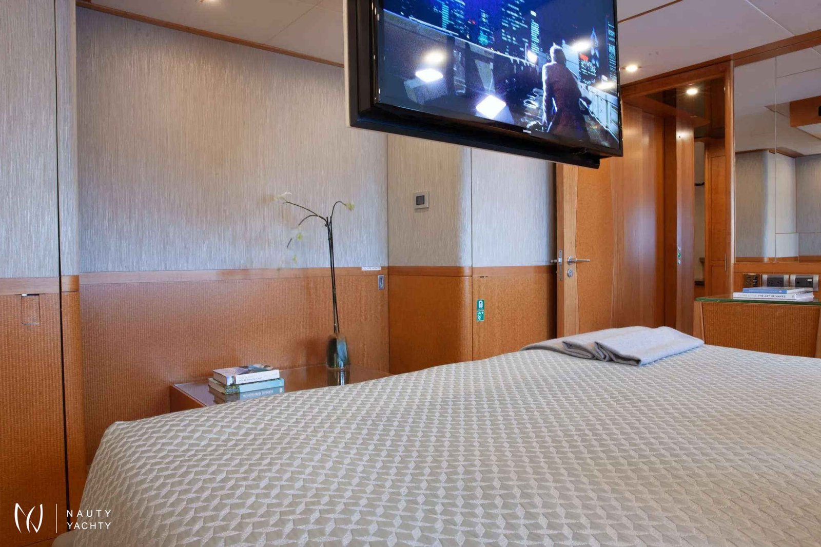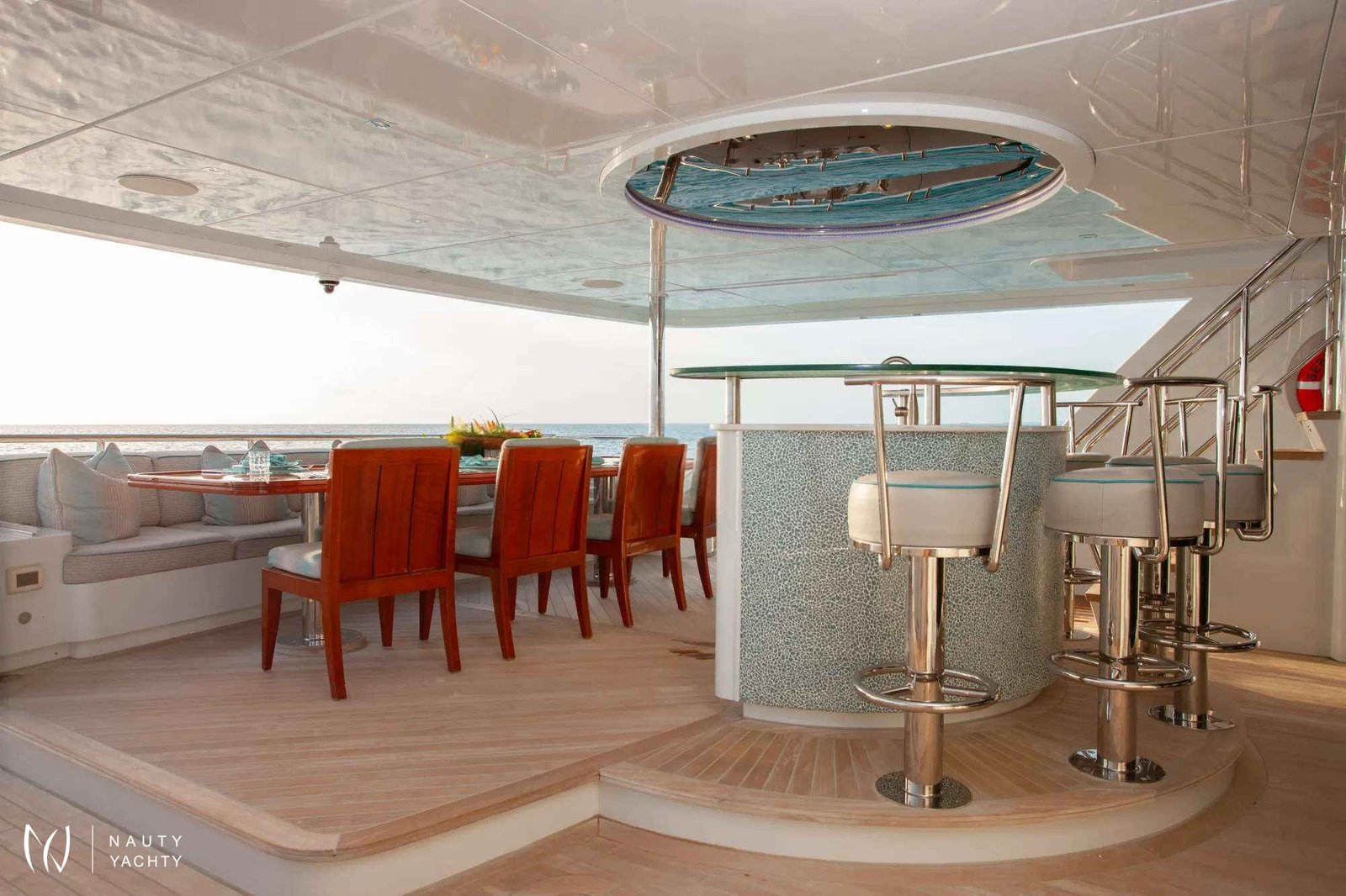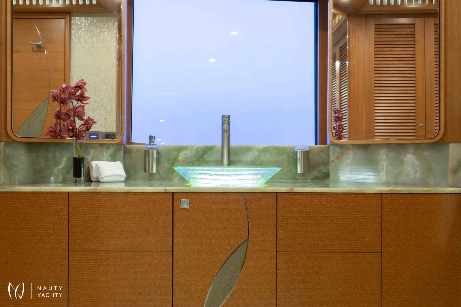 Serenity has accommodation for 12 guests in a cabin arrangement that comprises five doubles and one which is convertible between twin or double setup. The master suite resides on the main deck and benefits from his-and-her ensuites as well as two private balconies, and there’s a generously sized VIP suite on the upper deck.Sporting new interior furnishings and artwork following a 2023 refit, Serenity's interior offers versatile spaces for relaxing and socializing with ambient lighting able to set any tone. The main saloon is open plan to the formal dining table, and doors lead to an inviting aft deck with statement bar counter. Ascending to the deck above, a second skylounge features a large L-shape sofa, coffee table and cocktail bar.Serenity carries a huge array of water toys and accessories, and the selection offers something to entertain guests of all ages. There are Sea Doos and Sea Scooters, two SeaBobs, kayaks, snorkelling sets, wakeboards and body boards, various towable inflatables, fishing tackle, and a waterslide.A 34ft Custom Edge Water tender facilitates high-speed transfers between superyacht and shore, and day-long excursions along the coast. Other onboard amenities include high-speed Starlink internet, a selection of exercise equipment, and even a putting green.