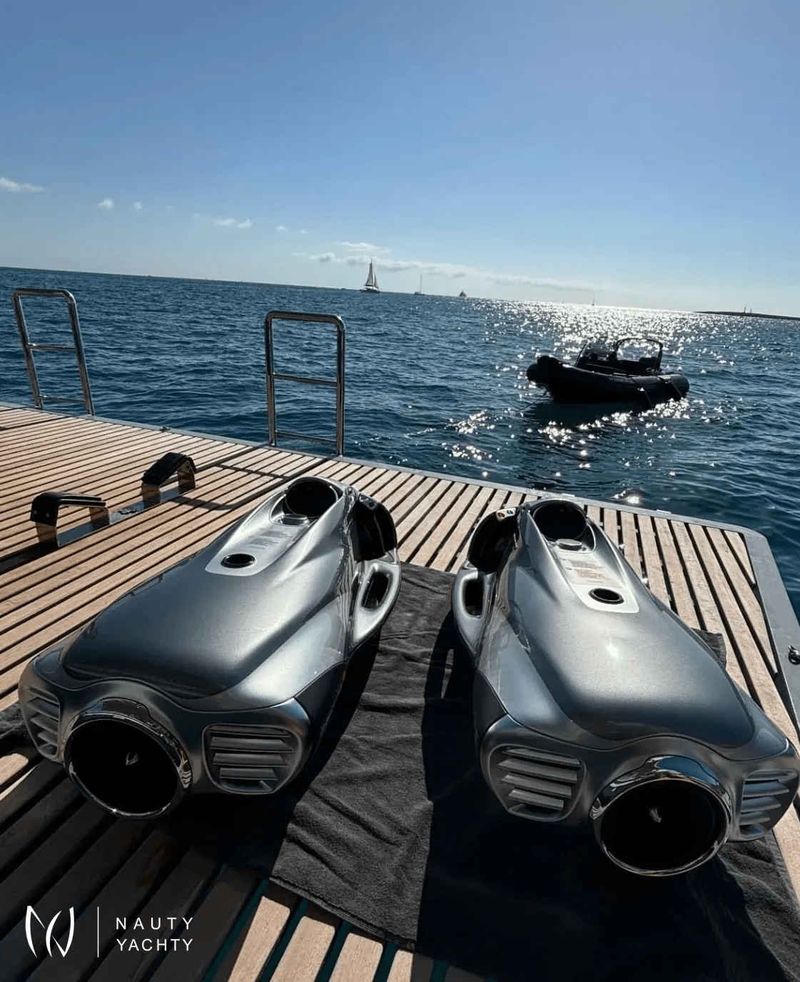 Big variety of water toys including an Audi eFoil, 2x Seabobs and inflatable SLIDE.