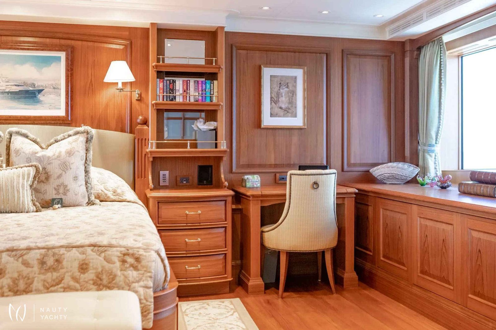 Step aboard the luxurious charter yacht SHADOWL and be transported into a world of opulence and elegance. Built by Burger and designed by Winch Design, this stunning vessel boasts some of the most intricate and complex designs ever produced by Burger. This yacht is owned by a very experienced owner with a clear vision, ultra-high standards and a specific set of requirements, making her stand out from the crowd.One of the standout features of SHADOWL is the stunning woodwork and hard-carved features visible from all points on the yacht. The design team has truly outdone itself, creating a masterpiece with luxurious and opulent interiors. The resplendent circular dining table in the main salon dining area is a work of art. Enjoying meals while admiring the ornate detailing will have you feeling like royalty. Guests will be drawn to the skylounge salon, complete with a state-of-the-art entertainment center and onboard cinema, comfortable seating areas and tons of natural light.SHADOWL isn't all about the lavish interiors; the yacht's exterior styling combines a classic gentleman's yacht and modern comfort with stunning varnish work and excellent lounge areas. The exterior spaces pay homage to the history of sailing and maritime exploration in the New England area. Her notable dark green hull further contributes to her elegant ambiance. Guests of all ages can look forward to time spent in the Jacuzzi, five-star alfresco meals on the skylounge aft and simply relaxing on the exterior lounge areas.With five cabins accommodating up to ten guests and nine crew members, SHADOWL is primed for charters. The master cabin on the main deck features a private office and a stunning jade shower, while the lower guest cabins offer three well-appointed king beds and a perfect family room, complete with twin beds and a Pullman. The lower guest cabins are designed with small children in mind, featuring tasteful and imaginative decor. Children will love letting their imaginations run wild in these enchanting spaces.SHADOWL's crew is what truly sets this yacht apart. They go above and beyond to create memorable experiences for families onboard, from pirate experiences to endless hours of fun on the yacht's many water toys. Whether you want to enjoy a romantic sunset dinner or a private champagne toast on the Portuguese deck, SHADOWL has you covered.Overall, SHADOWL is a unique and standout charter yacht, perfect for those seeking an opulent and unforgettable experience on the water. Come aboard and discover the ultimate in luxury and comfort.