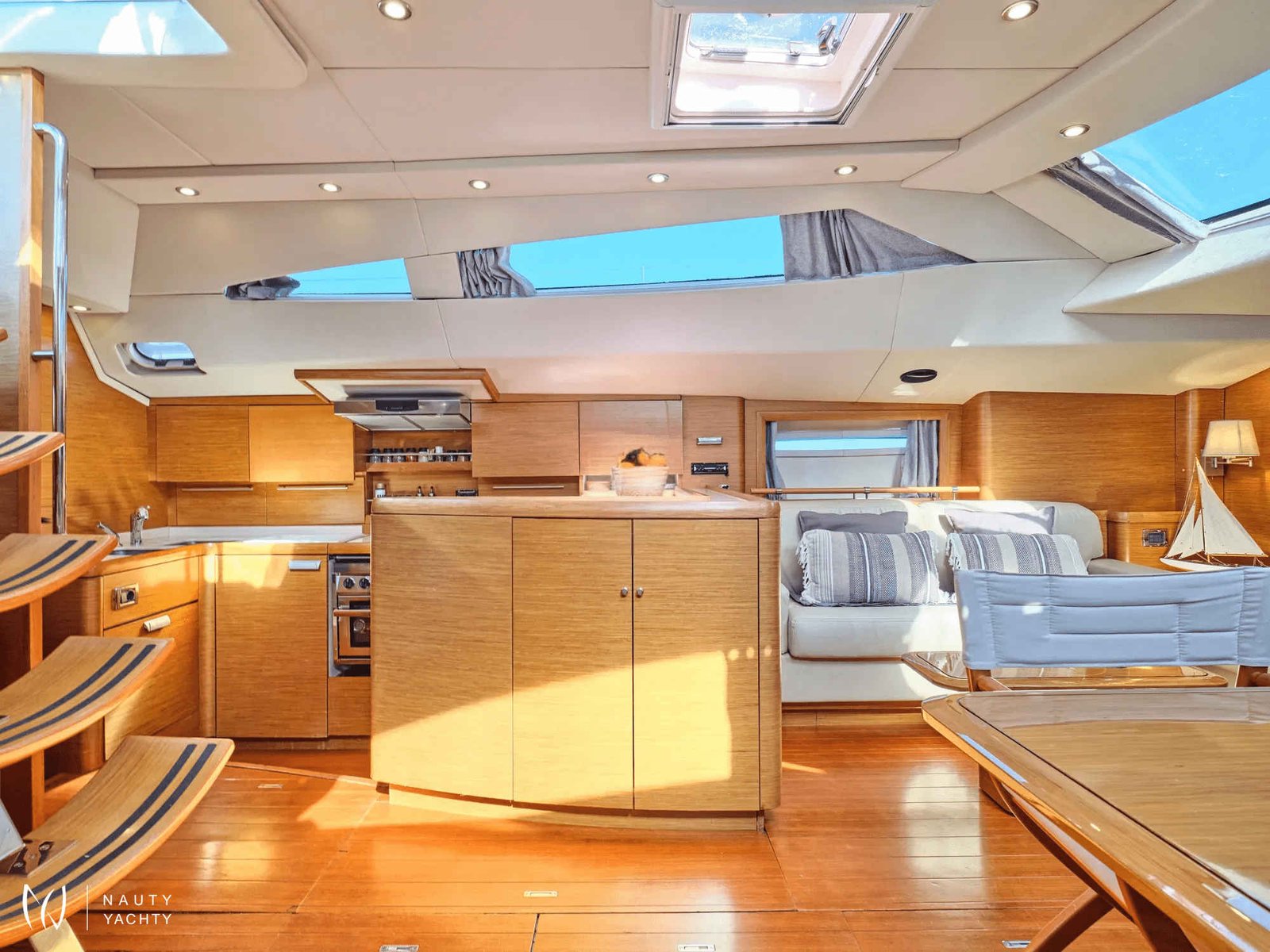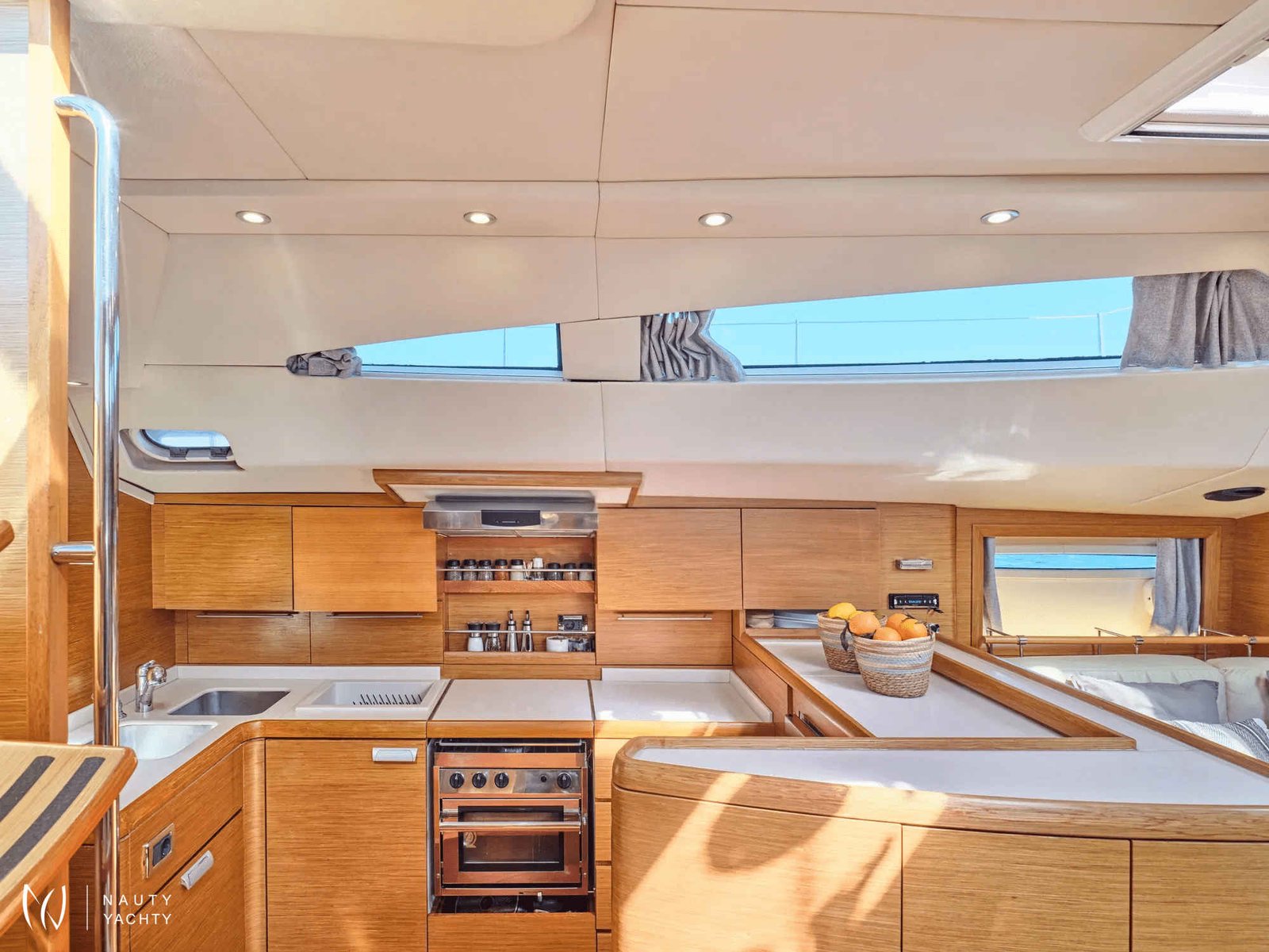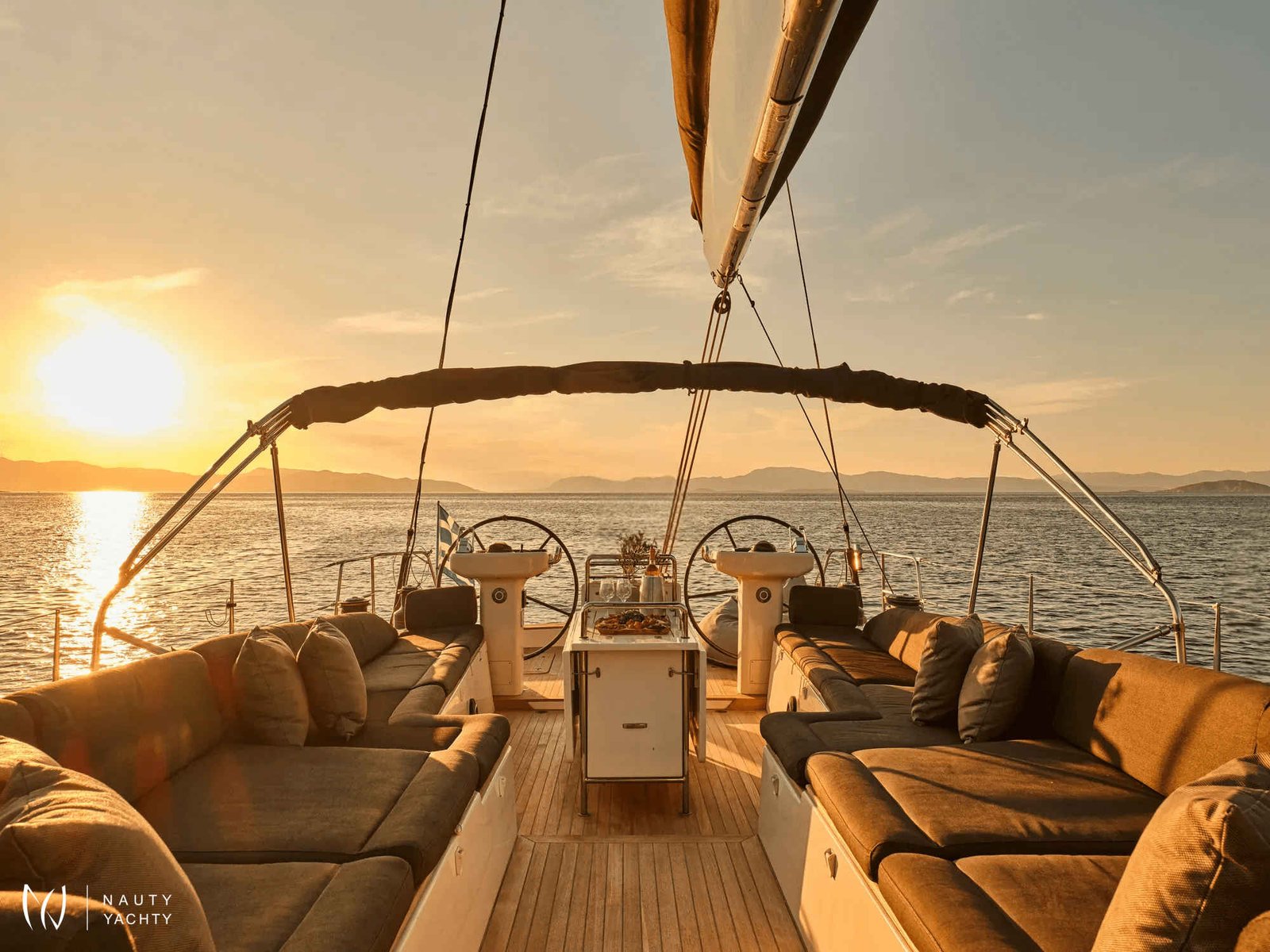 Sailing yacht Shooting Star is a Gianetti 65, a sleek and modern luxury yacht with an impressive sailing performance. It is a perfect combination of speed and comfort, with spacious interiors and top-of-the-line amenities.Measuring 20 meters in length, it accommodates up to 6 guests in three elegantly appointed cabins, with the master cabin located fore and two spacious guest cabins aft which can convert from twin to a double. The interior styling is modern and sophisticated, with a beautiful teak finish and tasteful furnishings. The main saloon is spacious and airy, with large windows offering panoramic views of the beautiful surroundings.Outside, Shooting Star features ample deck space for alfresco dining and lounging. The cockpit area is well-shaded and equipped with a dining table and comfortable seating, perfect for enjoying a meal while taking in the stunning scenery. The forward deck is perfect for sunbathing, with plenty of space to stretch out and relax in the sun.Under sail, Shooting Star is a true joy to handle, with a powerful rig and a fine-tuned sail plan. Whether racing or cruising, it delivers exceptional performance and speed, making it a popular choice among sailing enthusiasts.Overall, Shooting Star is a beautiful, elegant, and high-performing luxury yacht that offers a truly unique yachting experience.