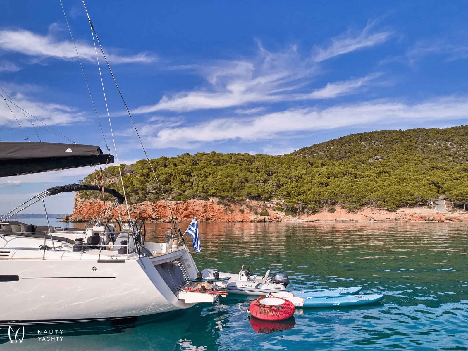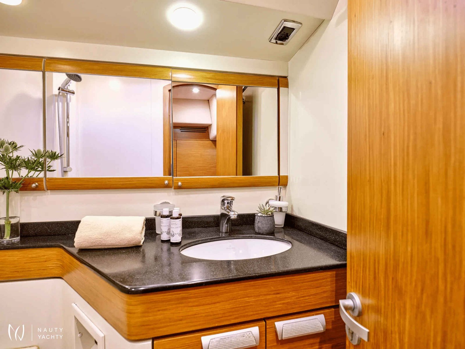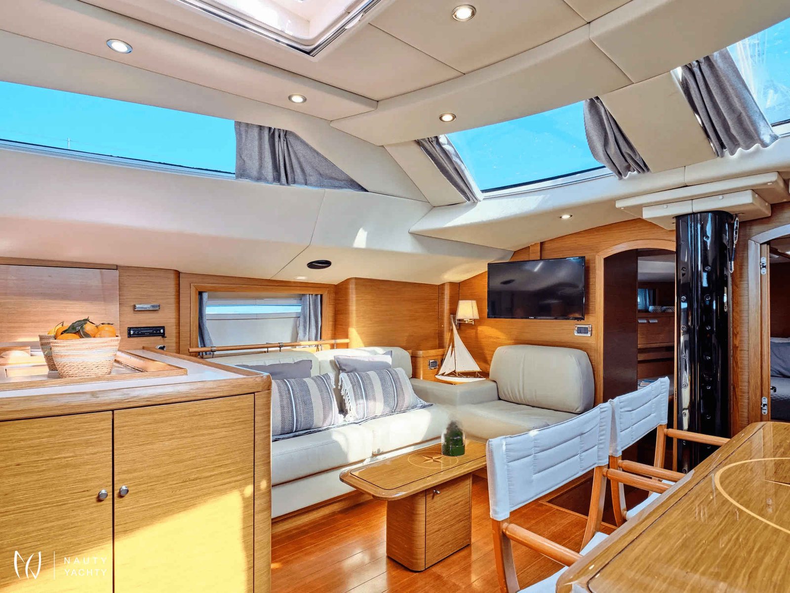 Sailing yacht Shooting Star is a Gianetti 65, a sleek and modern luxury yacht with an impressive sailing performance. It is a perfect combination of speed and comfort, with spacious interiors and top-of-the-line amenities.Measuring 20 meters in length, it accommodates up to 6 guests in three elegantly appointed cabins, with the master cabin located fore and two spacious guest cabins aft which can convert from twin to a double. The interior styling is modern and sophisticated, with a beautiful teak finish and tasteful furnishings. The main saloon is spacious and airy, with large windows offering panoramic views of the beautiful surroundings.Outside, Shooting Star features ample deck space for alfresco dining and lounging. The cockpit area is well-shaded and equipped with a dining table and comfortable seating, perfect for enjoying a meal while taking in the stunning scenery. The forward deck is perfect for sunbathing, with plenty of space to stretch out and relax in the sun.Under sail, Shooting Star is a true joy to handle, with a powerful rig and a fine-tuned sail plan. Whether racing or cruising, it delivers exceptional performance and speed, making it a popular choice among sailing enthusiasts.Overall, Shooting Star is a beautiful, elegant, and high-performing luxury yacht that offers a truly unique yachting experience.