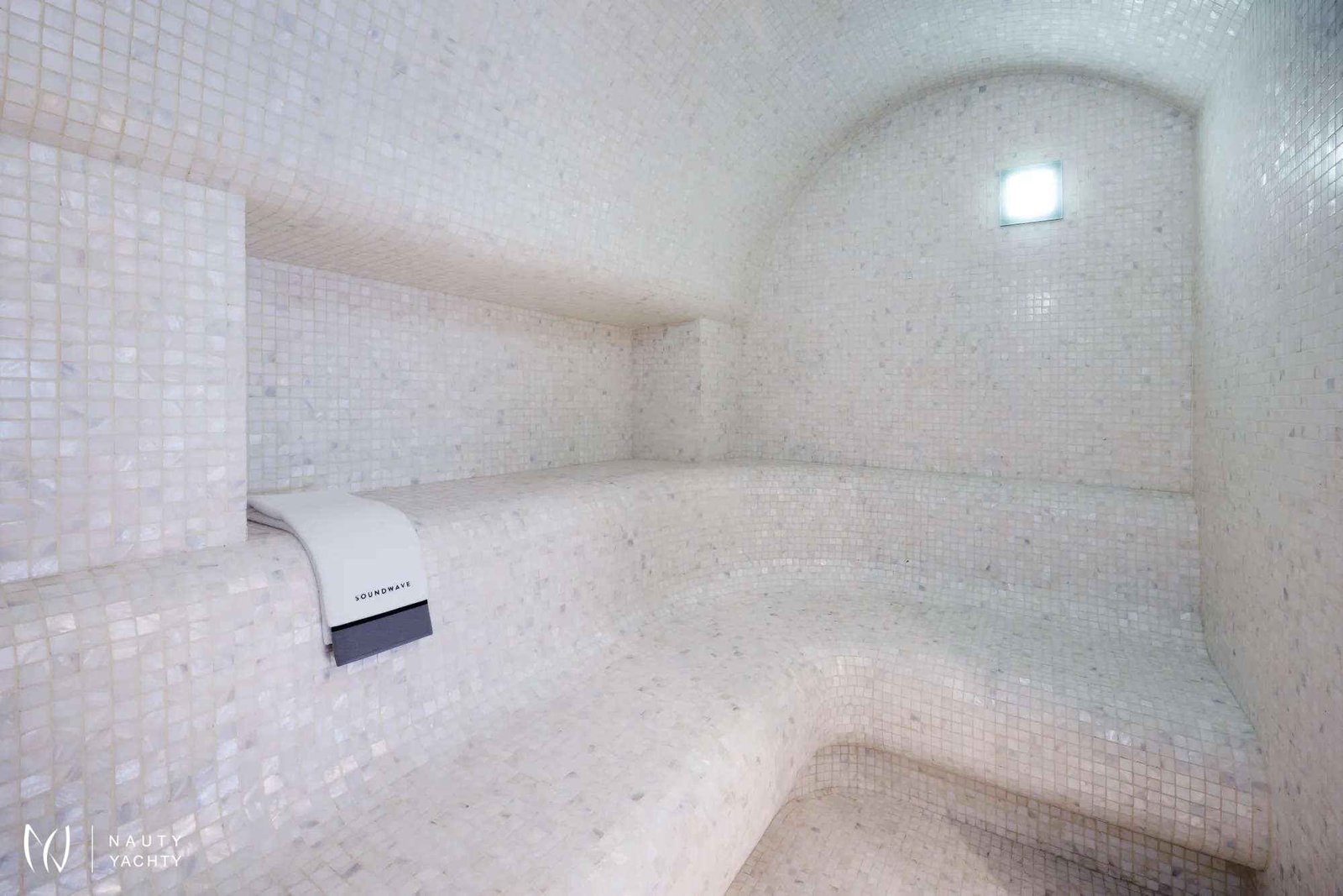 Wellness area featuring spa with massage room and mosaic-tiled steam room