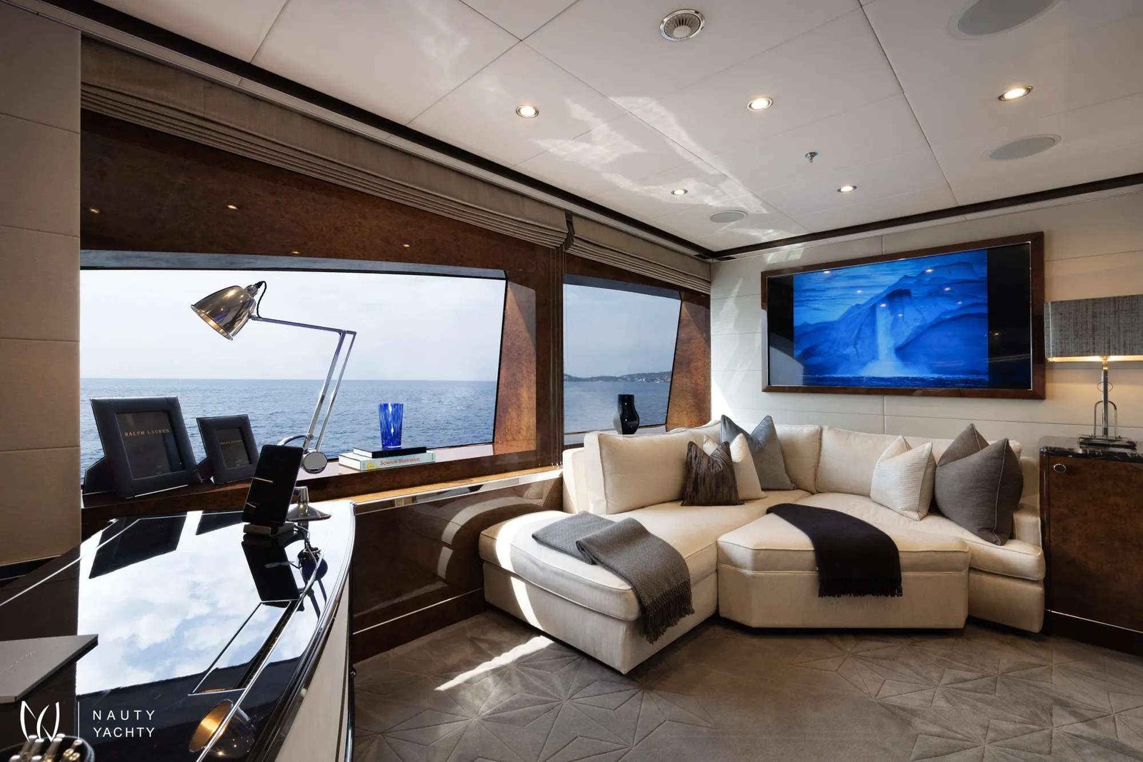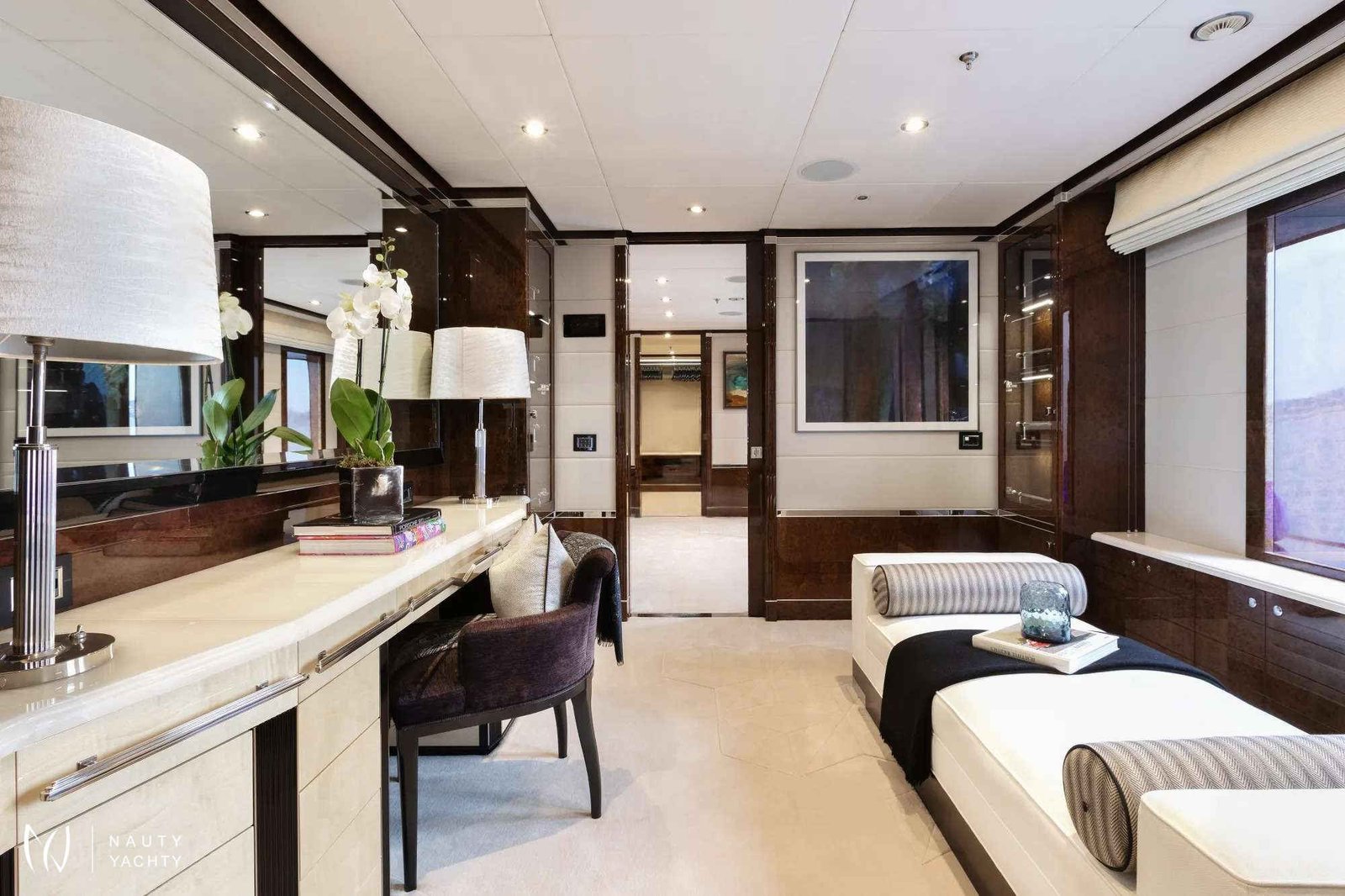 Full-beam second Master stateroom on main deck, flooded with natural light by the floor-to-ceiling windows