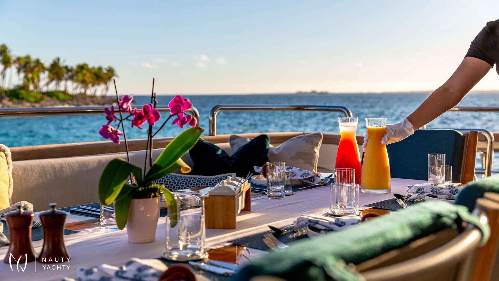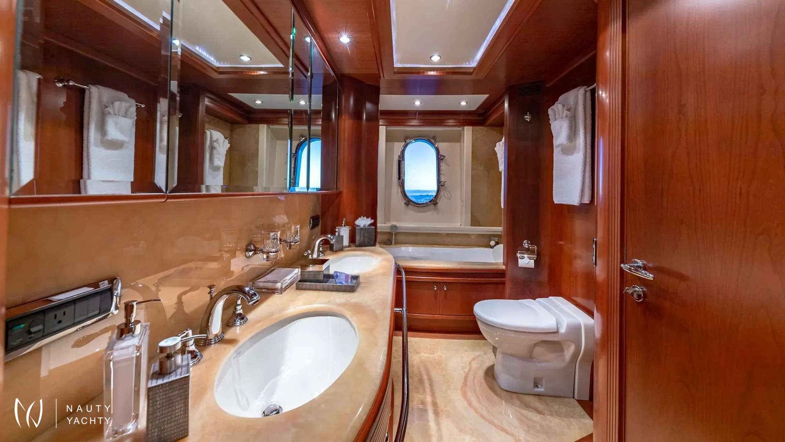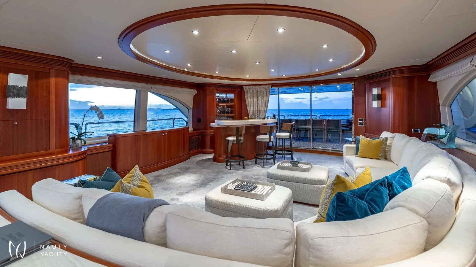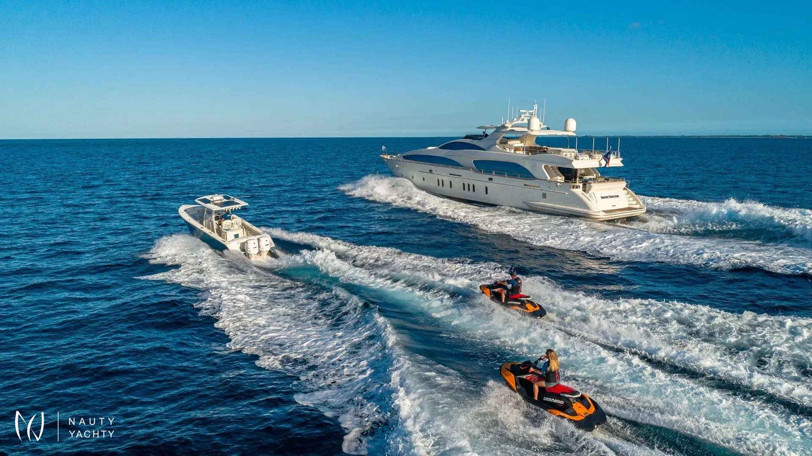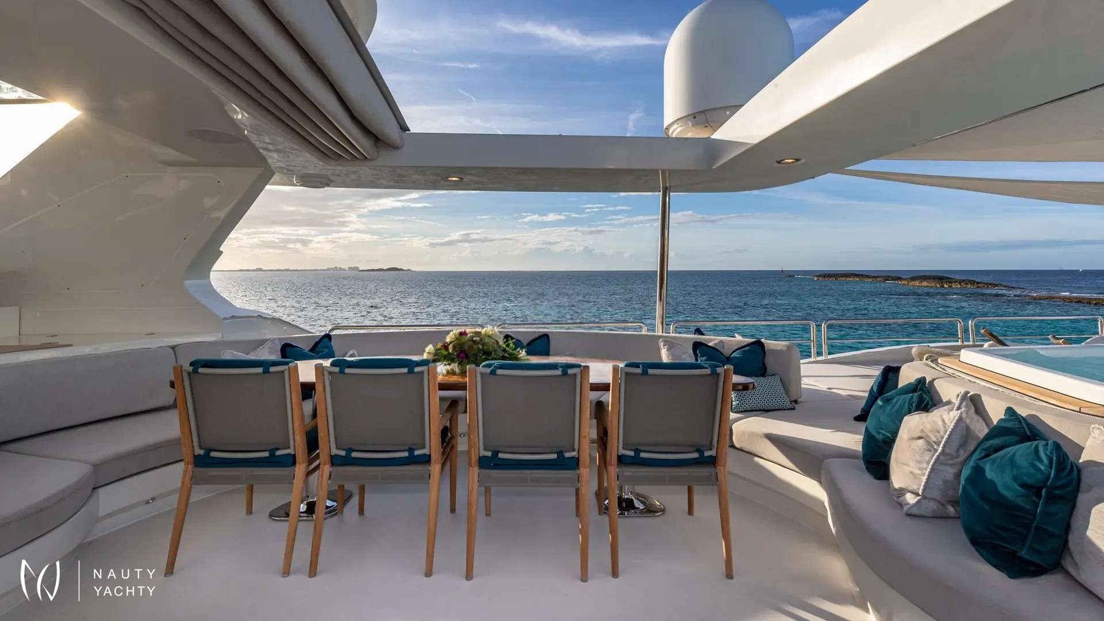 SWEET EMOCEAN completed an extensive $3.5 million refit in 2020, that’s guaranteed to upgrade her yachting experience. Her interior and exterior refit highlights include new mosaic tiles, new bar, ensuite bath renovations, full AV and IT systems upgrade, fine linens, and plush carpet. There’s also an added beach club with all new toys, 30’ tow tender, and sea bobs. SWEET EMOCEAN is bound to turn heads.She accommodates 10 guests in 5 luxurious ensuite staterooms — 2 of which are twins that can convert into queens, making her the perfect boat for 5 couples or a family. SWEET EMOCEAN’S large flybridge has a retractable roof so you can comfortably enjoy soaking up the sun or reading a book in the shade.Her crew is fun and professional and offer refined formal service. The chef makes a lobster ravioli that rivals a five-star restaurant. SWEET EMOCEAN is chartering in some of the most beautiful locations in the world, including The Bahamas and other tropical islands in the Caribbean. She’s ready to help you relax on your next ocean getaway.