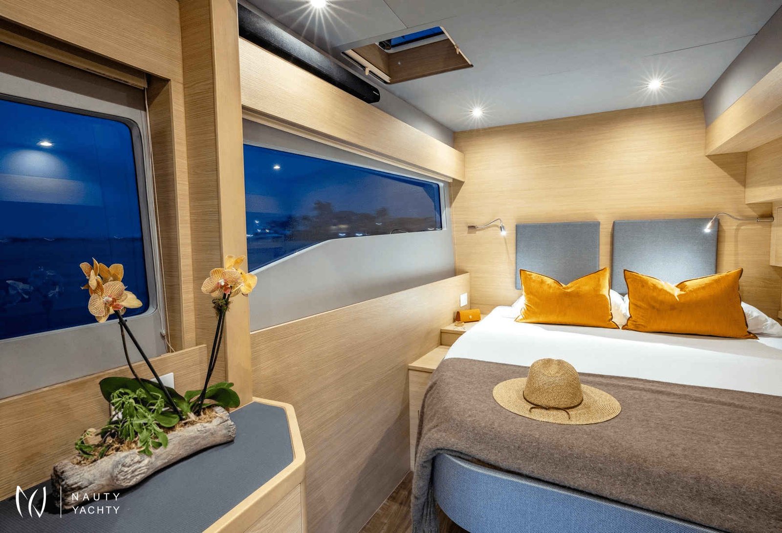 Cabin configuration: 1 full-beam master w/king bed 3 VIP cabins with queen beds, All cabins equipped with full amenities (shampoo, conditioner, body lotion, body wash)