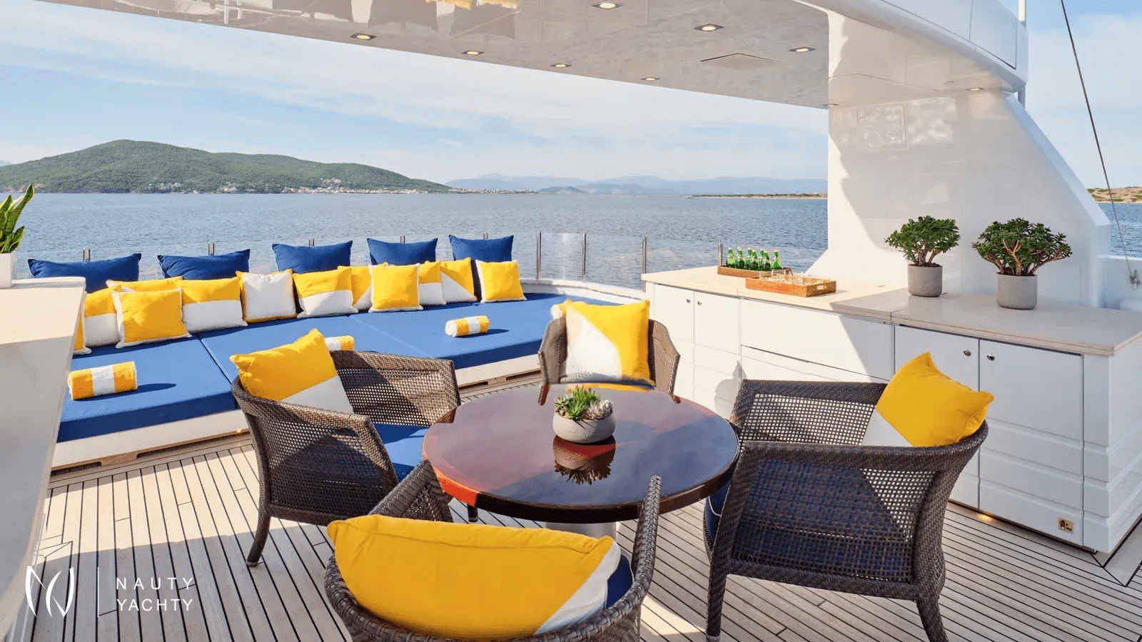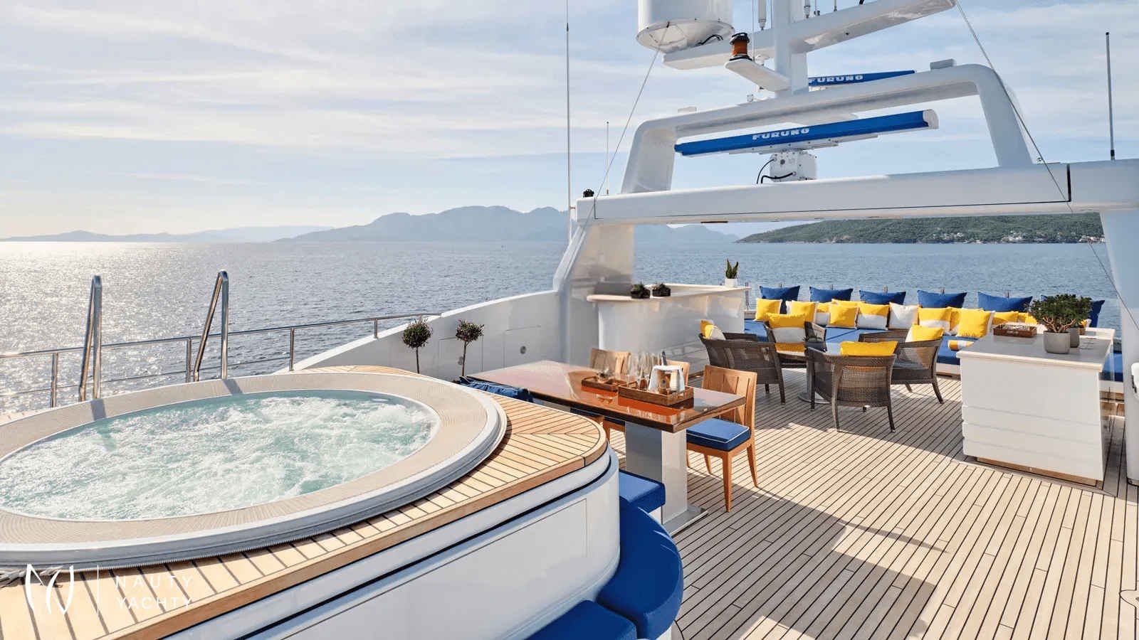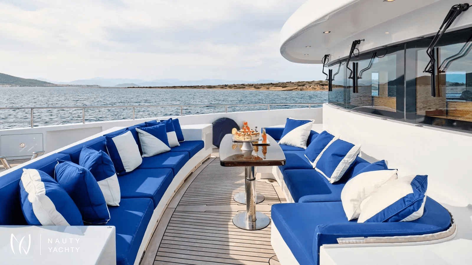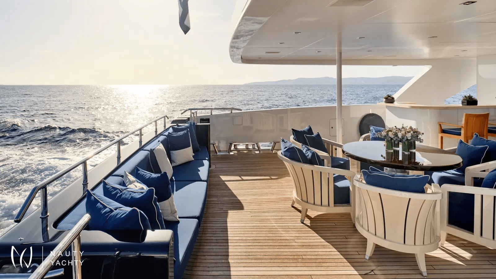 TIMBUKTU is a sleek and contemporary yacht offering the perfect platform for a luxurious escape through the Greek islands. Perfectly maintained by her Owner ever since delivery, she features a standout full-beam master suite on the main deck, a Jacuzzi on the sundeck, and an outstanding permanent crew of nine with excellent charter record, including a very talented Chef. This pet- and child-friendly yacht blends comfort, sophistication, and fun in equal measure.Accommodating up to 11 guests across five elegant cabins, TIMBUKTU is ideal for families or groups of friends. The full-beam master suite, located on the main deck, features an exceptional ensuite bathroom and a private office space. Her voluminous interiors are tastefully styled, with high ceilings and expansive windows creating a bright and inviting atmosphere throughout the main living spaces.Her generous deck spaces are designed for open-air living, with multiple areas to unwind, dine, or soak up the sun. The sundeck is a standout feature, complete with a large Jacuzzi, lounge seating, and panoramic views. Several covered areas offer respite from the midday sun, allowing for relaxed alfresco moments at any time of day. The gym, located on the upper deck, ensures guests can maintain their wellness routine while at sea.TIMBUKTU comes fully equipped with a wide array of water toys, catering to both adults and children. Highlights include two Seabobs, paddleboards, inflatables, and more. Her shallow draft and towed tender allow access to even the most secluded anchorages, making her an ideal choice for island-hopping adventures. With Zero Speed Stabilizers, guests can expect a smooth, silent cruising experience whether underway or at anchor.Thoughtfully outfitted with sustainable onboard products and a crew committed to responsible yachting, TIMBUKTU is also an eco-conscious option for discerning charterers looking to enjoy the Mediterranean in a more mindful way.