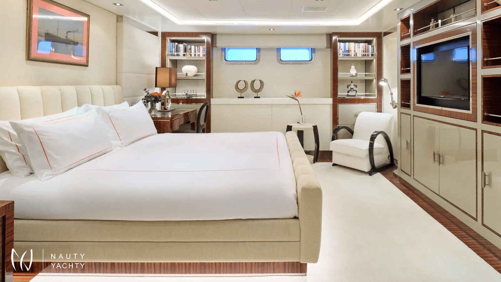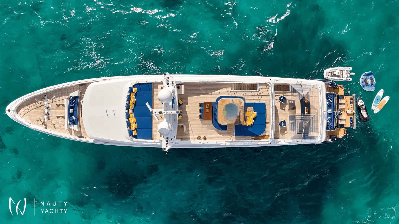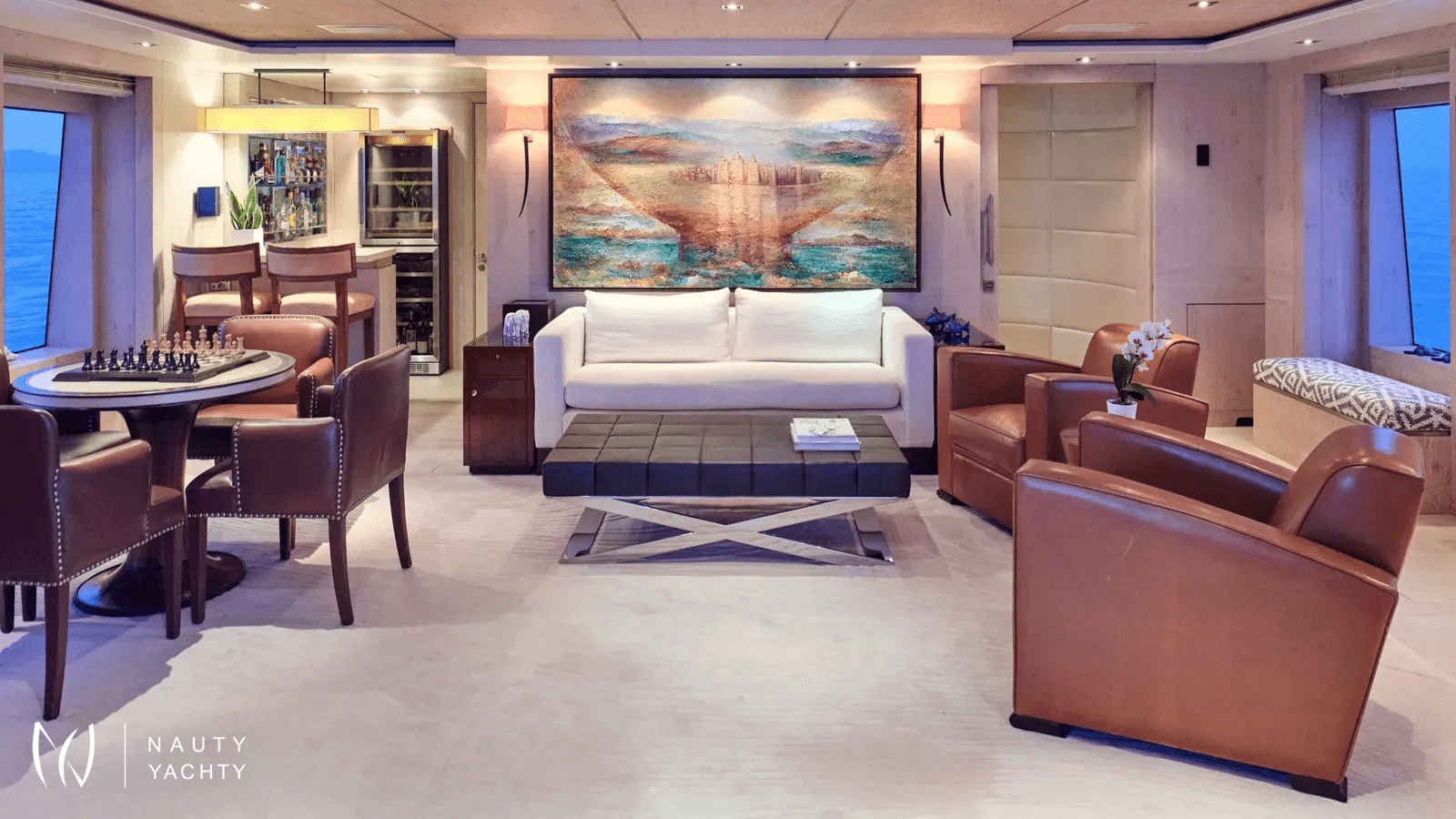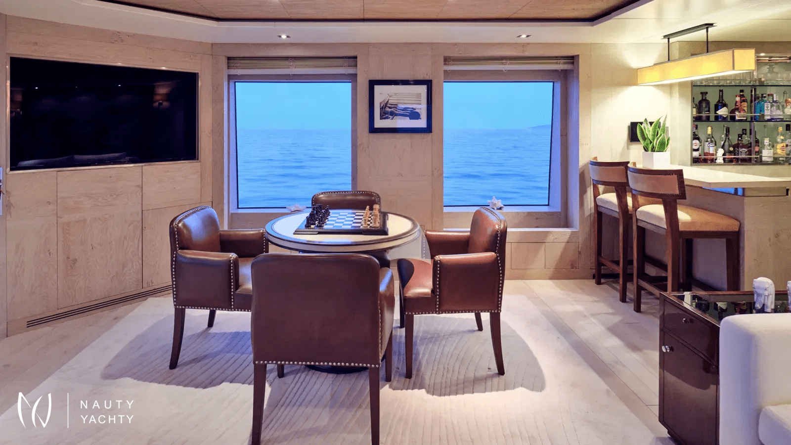 TIMBUKTU is a sleek and contemporary yacht offering the perfect platform for a luxurious escape through the Greek islands. Perfectly maintained by her Owner ever since delivery, she features a standout full-beam master suite on the main deck, a Jacuzzi on the sundeck, and an outstanding permanent crew of nine with excellent charter record, including a very talented Chef. This pet- and child-friendly yacht blends comfort, sophistication, and fun in equal measure.Accommodating up to 11 guests across five elegant cabins, TIMBUKTU is ideal for families or groups of friends. The full-beam master suite, located on the main deck, features an exceptional ensuite bathroom and a private office space. Her voluminous interiors are tastefully styled, with high ceilings and expansive windows creating a bright and inviting atmosphere throughout the main living spaces.Her generous deck spaces are designed for open-air living, with multiple areas to unwind, dine, or soak up the sun. The sundeck is a standout feature, complete with a large Jacuzzi, lounge seating, and panoramic views. Several covered areas offer respite from the midday sun, allowing for relaxed alfresco moments at any time of day. The gym, located on the upper deck, ensures guests can maintain their wellness routine while at sea.TIMBUKTU comes fully equipped with a wide array of water toys, catering to both adults and children. Highlights include two Seabobs, paddleboards, inflatables, and more. Her shallow draft and towed tender allow access to even the most secluded anchorages, making her an ideal choice for island-hopping adventures. With Zero Speed Stabilizers, guests can expect a smooth, silent cruising experience whether underway or at anchor.Thoughtfully outfitted with sustainable onboard products and a crew committed to responsible yachting, TIMBUKTU is also an eco-conscious option for discerning charterers looking to enjoy the Mediterranean in a more mindful way.