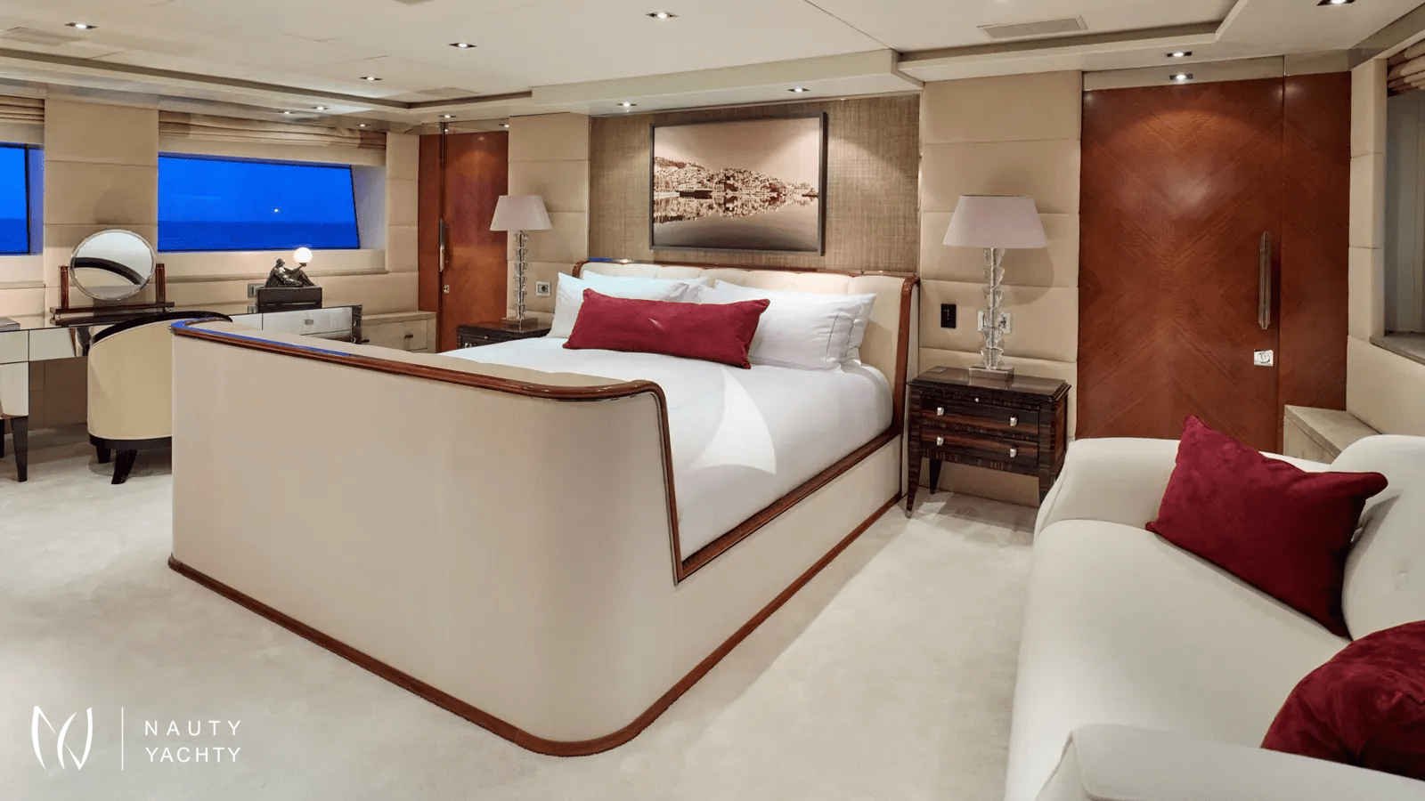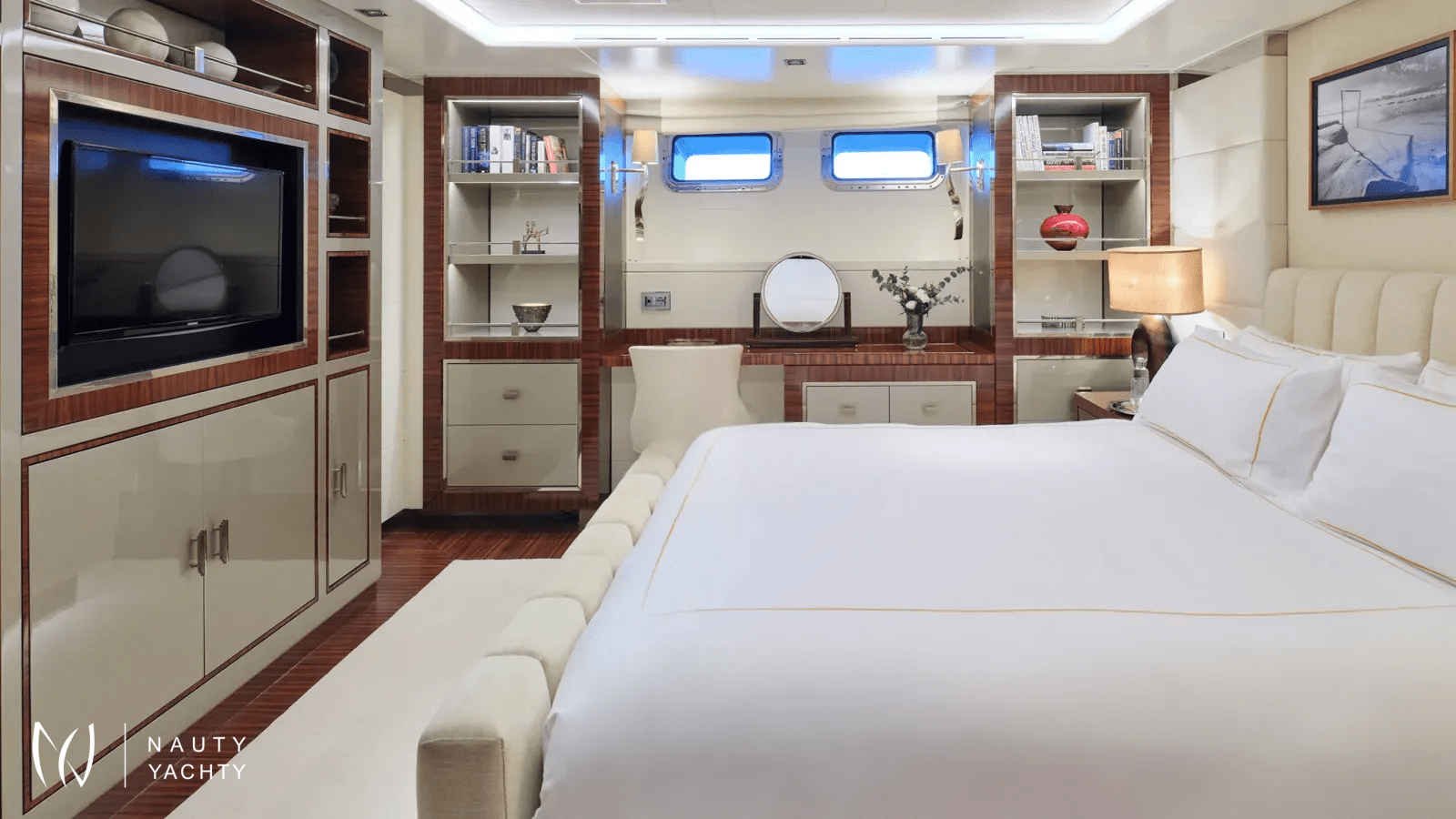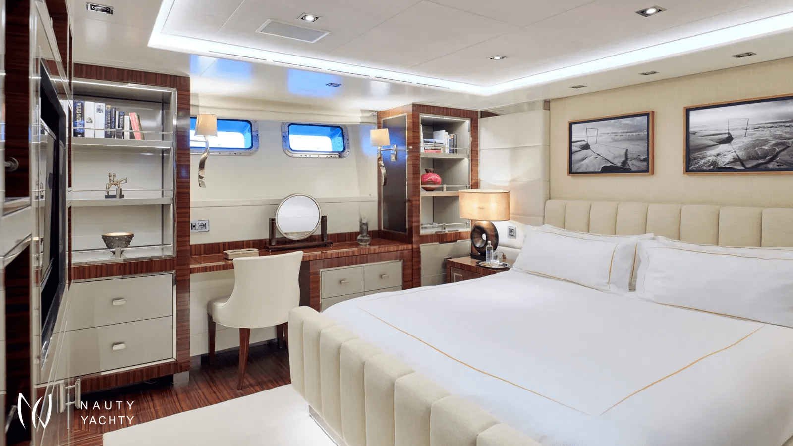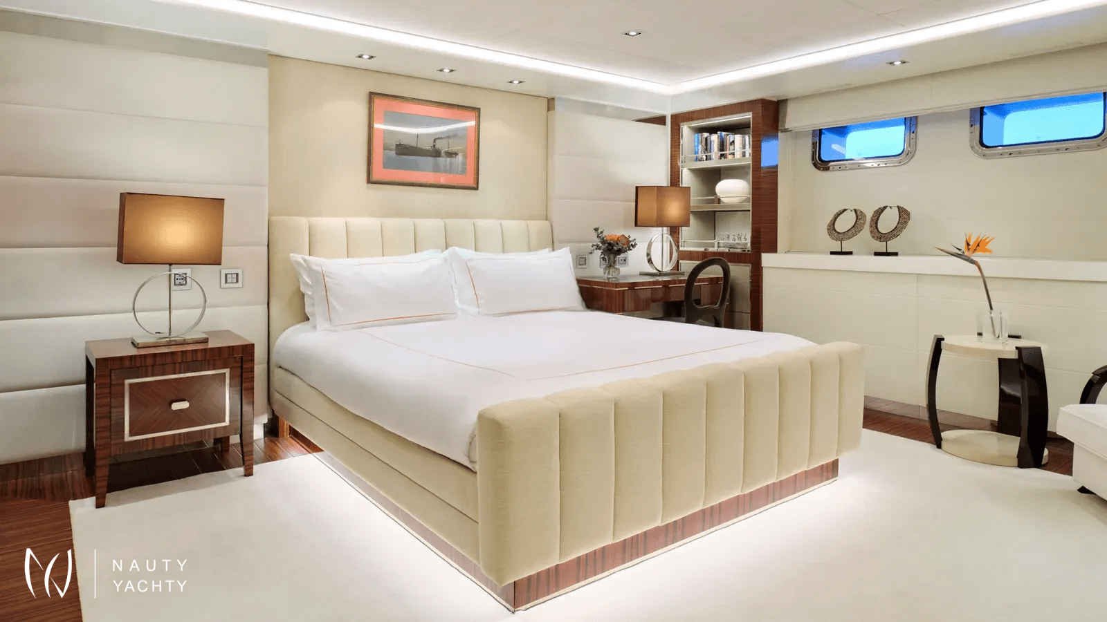 TIMBUKTU is a sleek and contemporary yacht offering the perfect platform for a luxurious escape through the Greek islands. Perfectly maintained by her Owner ever since delivery, she features a standout full-beam master suite on the main deck, a Jacuzzi on the sundeck, and an outstanding permanent crew of nine with excellent charter record, including a very talented Chef. This pet- and child-friendly yacht blends comfort, sophistication, and fun in equal measure.Accommodating up to 11 guests across five elegant cabins, TIMBUKTU is ideal for families or groups of friends. The full-beam master suite, located on the main deck, features an exceptional ensuite bathroom and a private office space. Her voluminous interiors are tastefully styled, with high ceilings and expansive windows creating a bright and inviting atmosphere throughout the main living spaces.Her generous deck spaces are designed for open-air living, with multiple areas to unwind, dine, or soak up the sun. The sundeck is a standout feature, complete with a large Jacuzzi, lounge seating, and panoramic views. Several covered areas offer respite from the midday sun, allowing for relaxed alfresco moments at any time of day. The gym, located on the upper deck, ensures guests can maintain their wellness routine while at sea.TIMBUKTU comes fully equipped with a wide array of water toys, catering to both adults and children. Highlights include two Seabobs, paddleboards, inflatables, and more. Her shallow draft and towed tender allow access to even the most secluded anchorages, making her an ideal choice for island-hopping adventures. With Zero Speed Stabilizers, guests can expect a smooth, silent cruising experience whether underway or at anchor.Thoughtfully outfitted with sustainable onboard products and a crew committed to responsible yachting, TIMBUKTU is also an eco-conscious option for discerning charterers looking to enjoy the Mediterranean in a more mindful way.