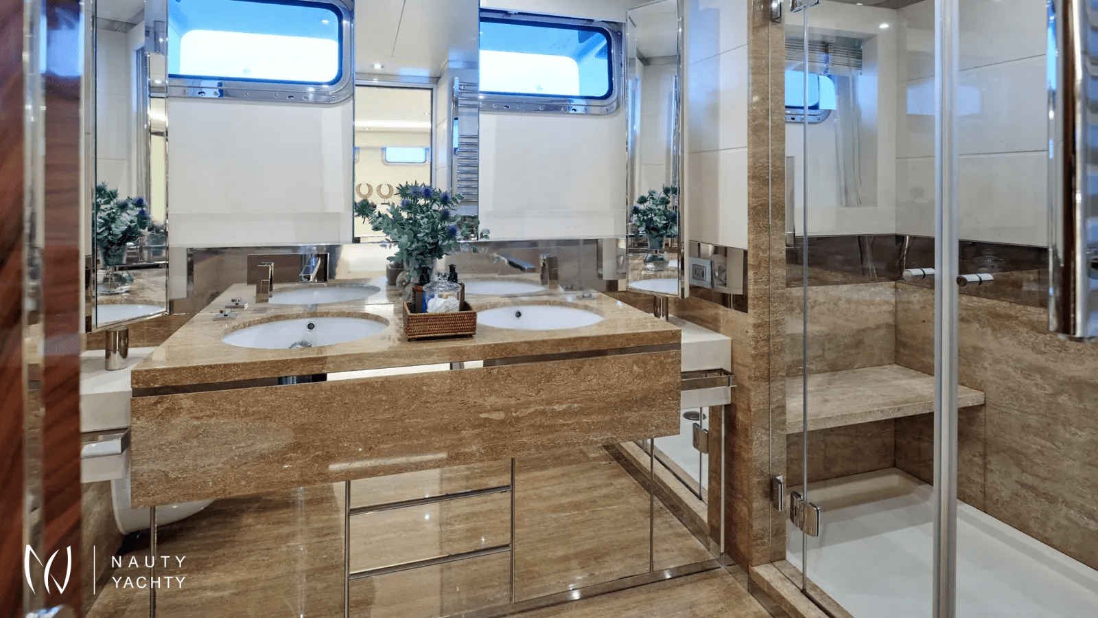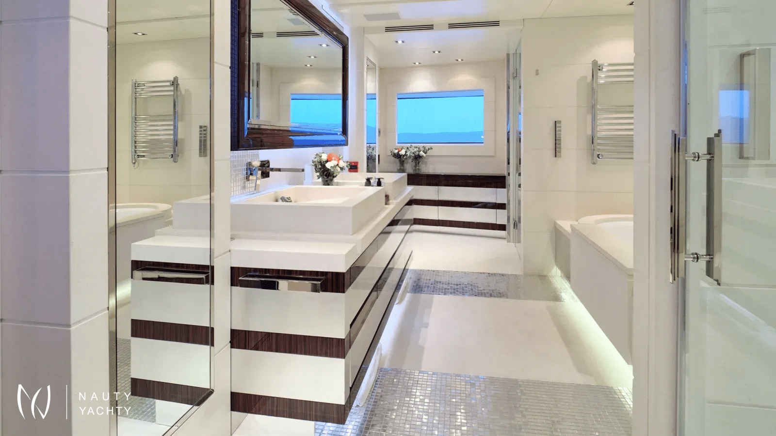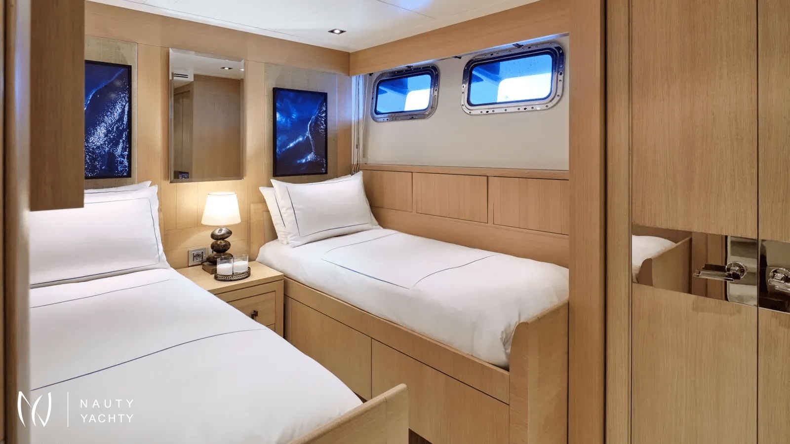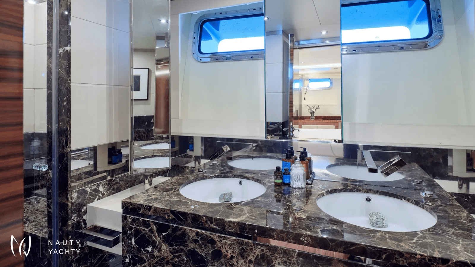 TIMBUKTU is a sleek and contemporary yacht offering the perfect platform for a luxurious escape through the Greek islands. Perfectly maintained by her Owner ever since delivery, she features a standout full-beam master suite on the main deck, a Jacuzzi on the sundeck, and an outstanding permanent crew of nine with excellent charter record, including a very talented Chef. This pet- and child-friendly yacht blends comfort, sophistication, and fun in equal measure.Accommodating up to 11 guests across five elegant cabins, TIMBUKTU is ideal for families or groups of friends. The full-beam master suite, located on the main deck, features an exceptional ensuite bathroom and a private office space. Her voluminous interiors are tastefully styled, with high ceilings and expansive windows creating a bright and inviting atmosphere throughout the main living spaces.Her generous deck spaces are designed for open-air living, with multiple areas to unwind, dine, or soak up the sun. The sundeck is a standout feature, complete with a large Jacuzzi, lounge seating, and panoramic views. Several covered areas offer respite from the midday sun, allowing for relaxed alfresco moments at any time of day. The gym, located on the upper deck, ensures guests can maintain their wellness routine while at sea.TIMBUKTU comes fully equipped with a wide array of water toys, catering to both adults and children. Highlights include two Seabobs, paddleboards, inflatables, and more. Her shallow draft and towed tender allow access to even the most secluded anchorages, making her an ideal choice for island-hopping adventures. With Zero Speed Stabilizers, guests can expect a smooth, silent cruising experience whether underway or at anchor.Thoughtfully outfitted with sustainable onboard products and a crew committed to responsible yachting, TIMBUKTU is also an eco-conscious option for discerning charterers looking to enjoy the Mediterranean in a more mindful way.