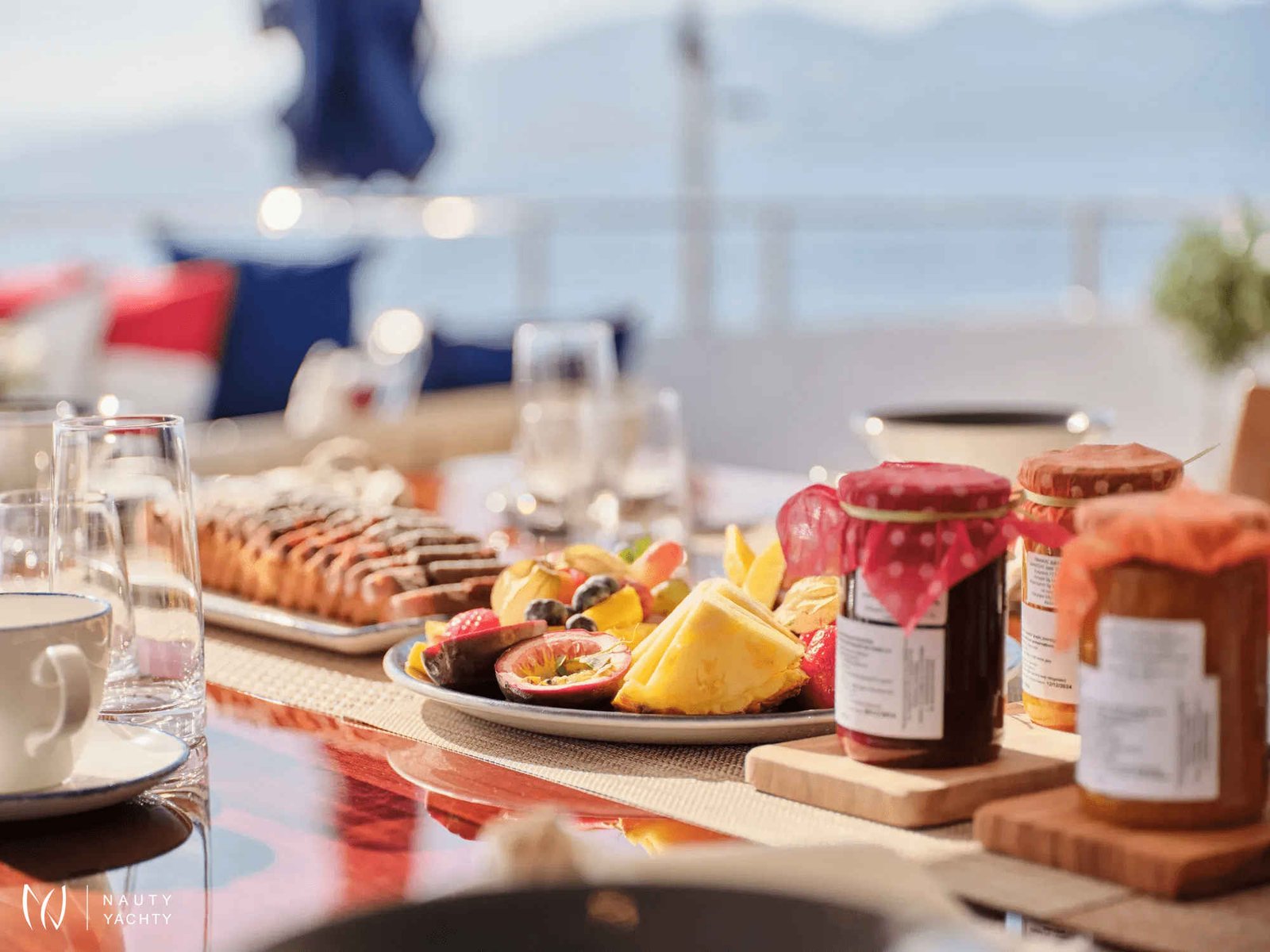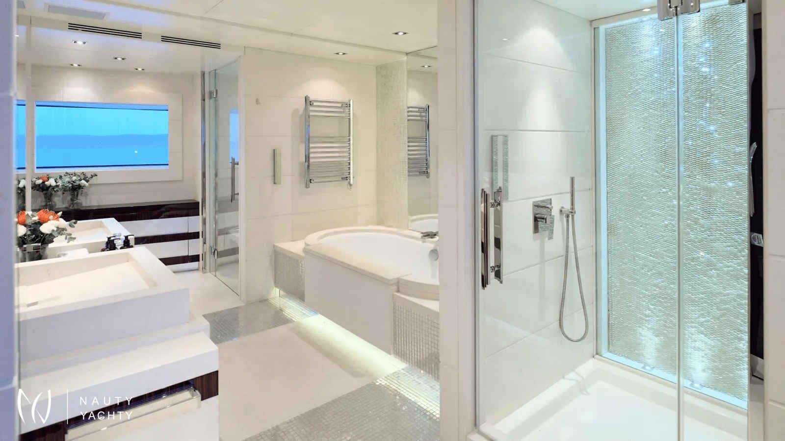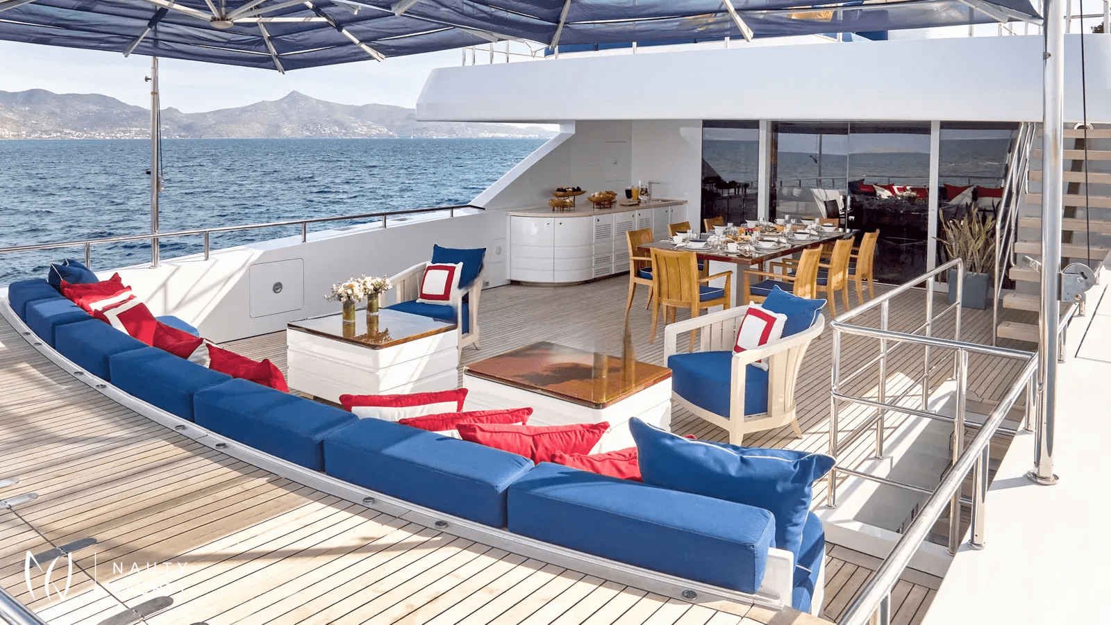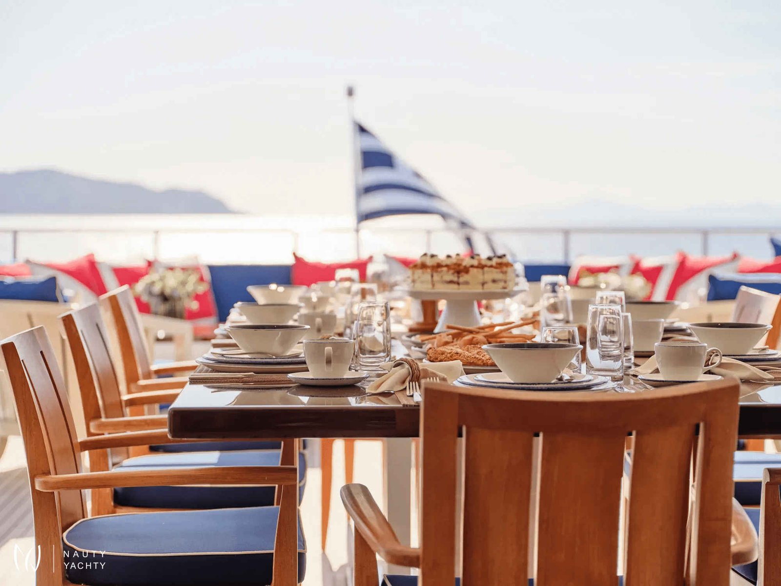 Guests will be tendered in full style enabling access to the most secluded coves whilst warranting absolute safety. The tender is towed behind the yacht under way. The cruising speed of 15.5 KN knots is the actual speed including the towed tender.