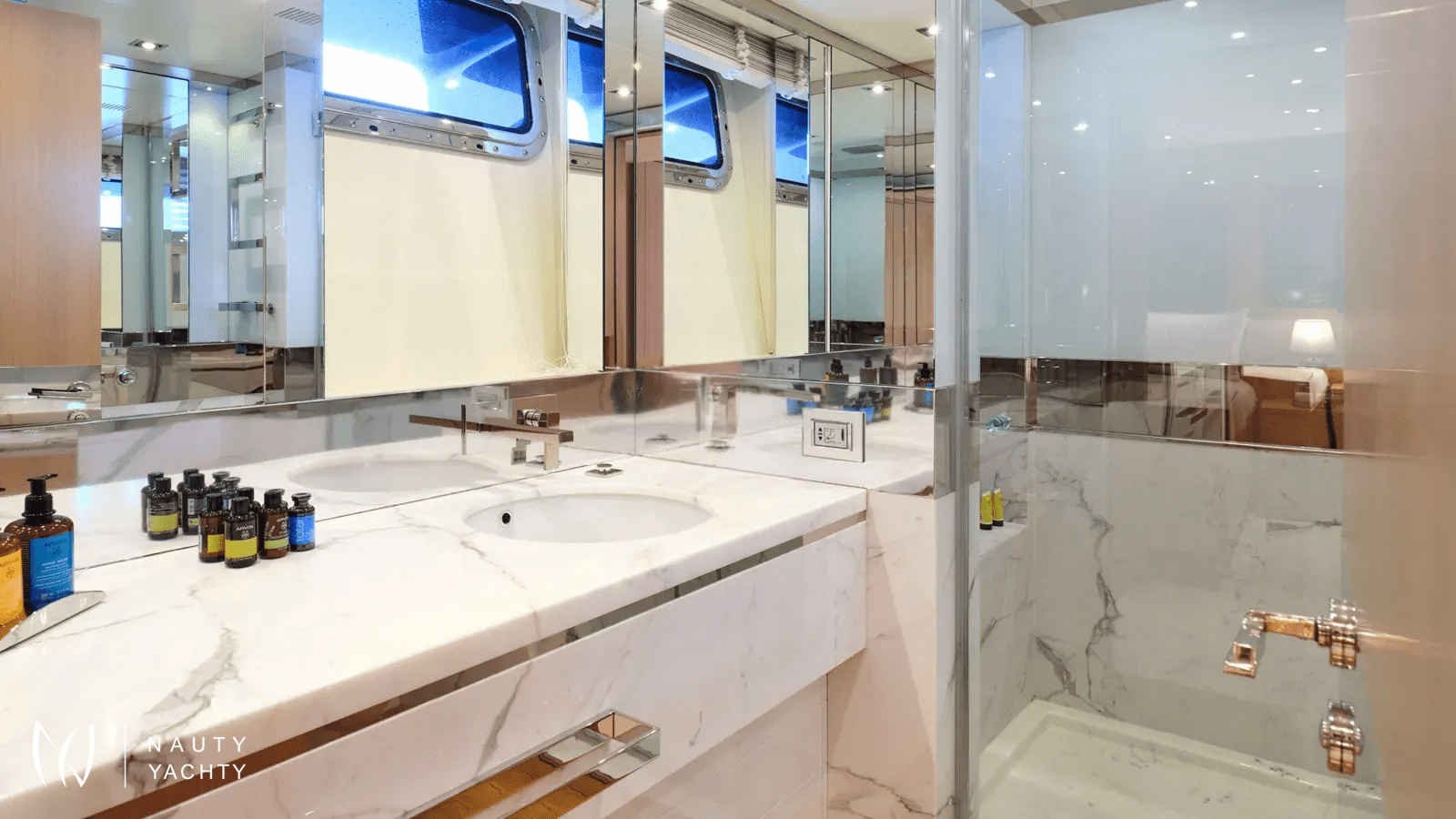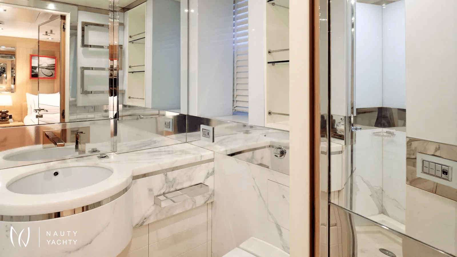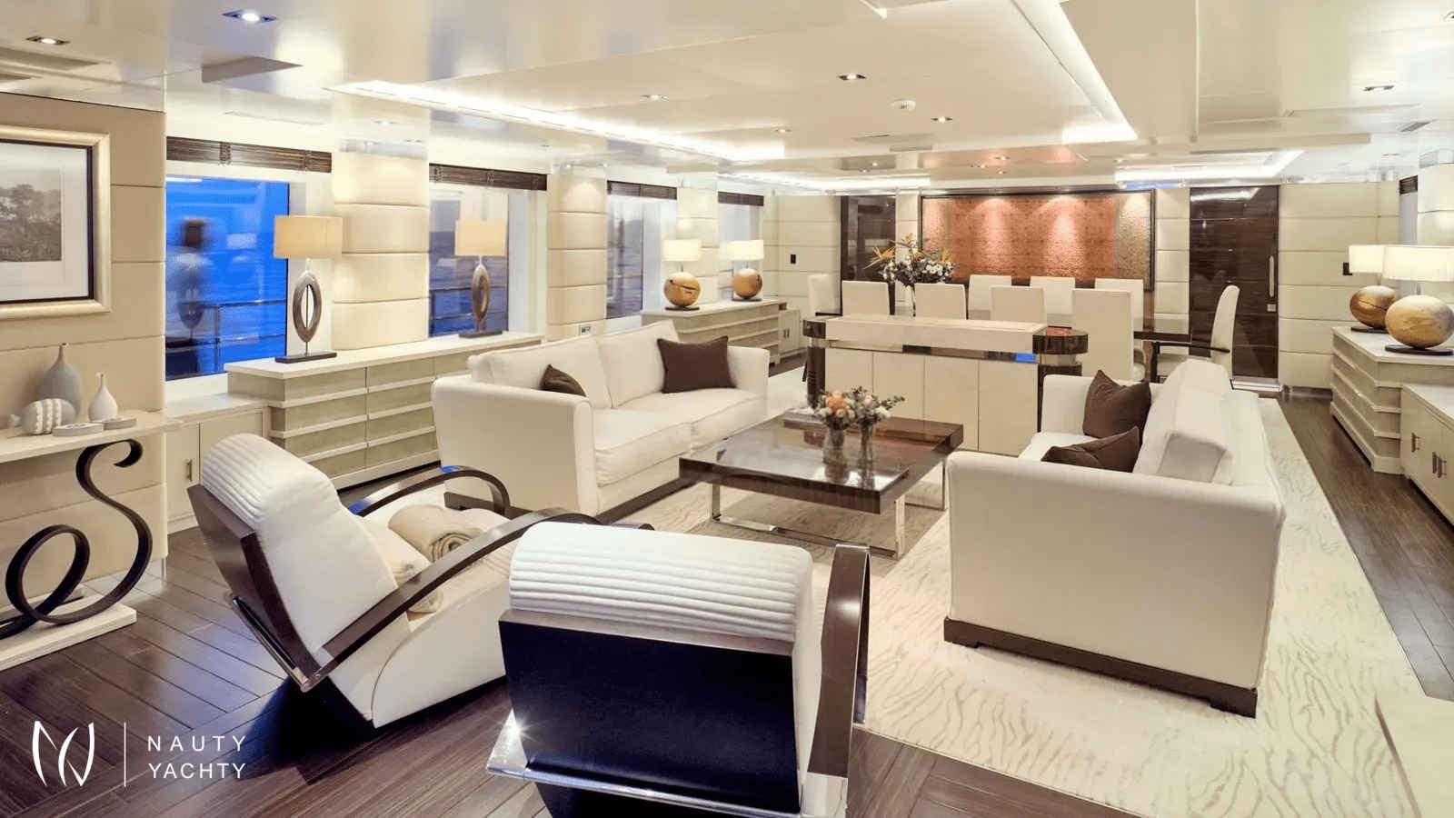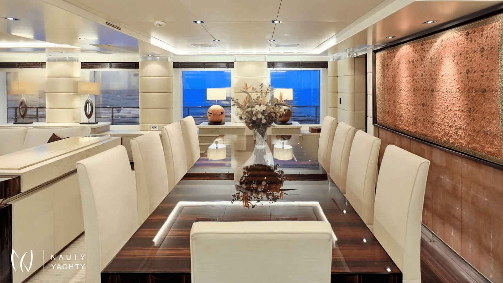 Guests will be tendered in full style enabling access to the most secluded coves whilst warranting absolute safety. The tender is towed behind the yacht under way. The cruising speed of 15.5 KN knots is the actual speed including the towed tender.
