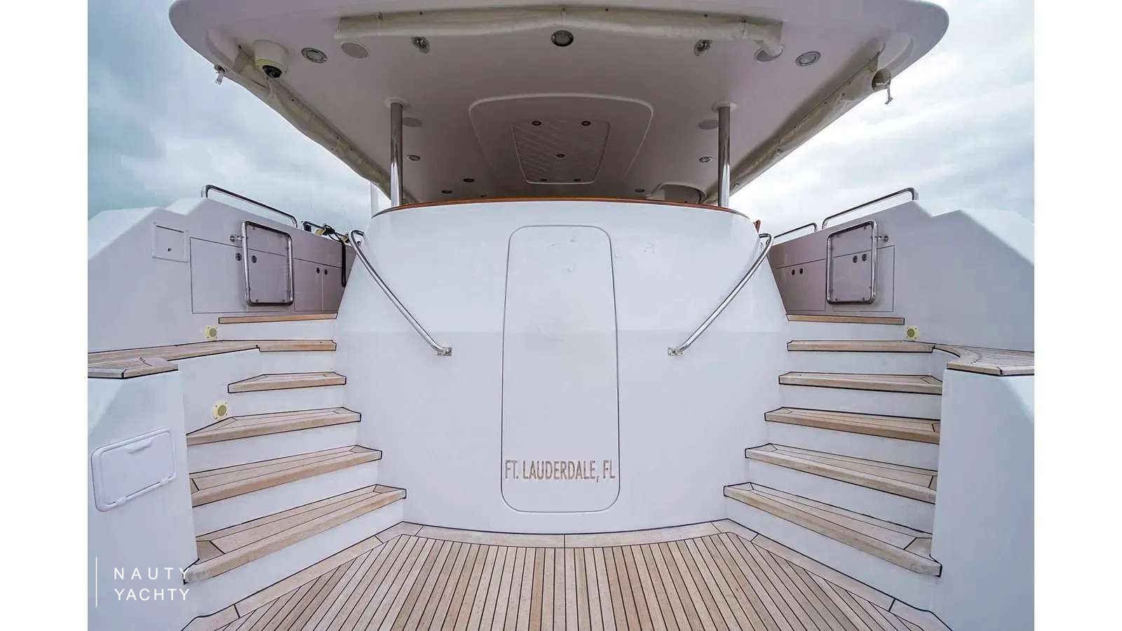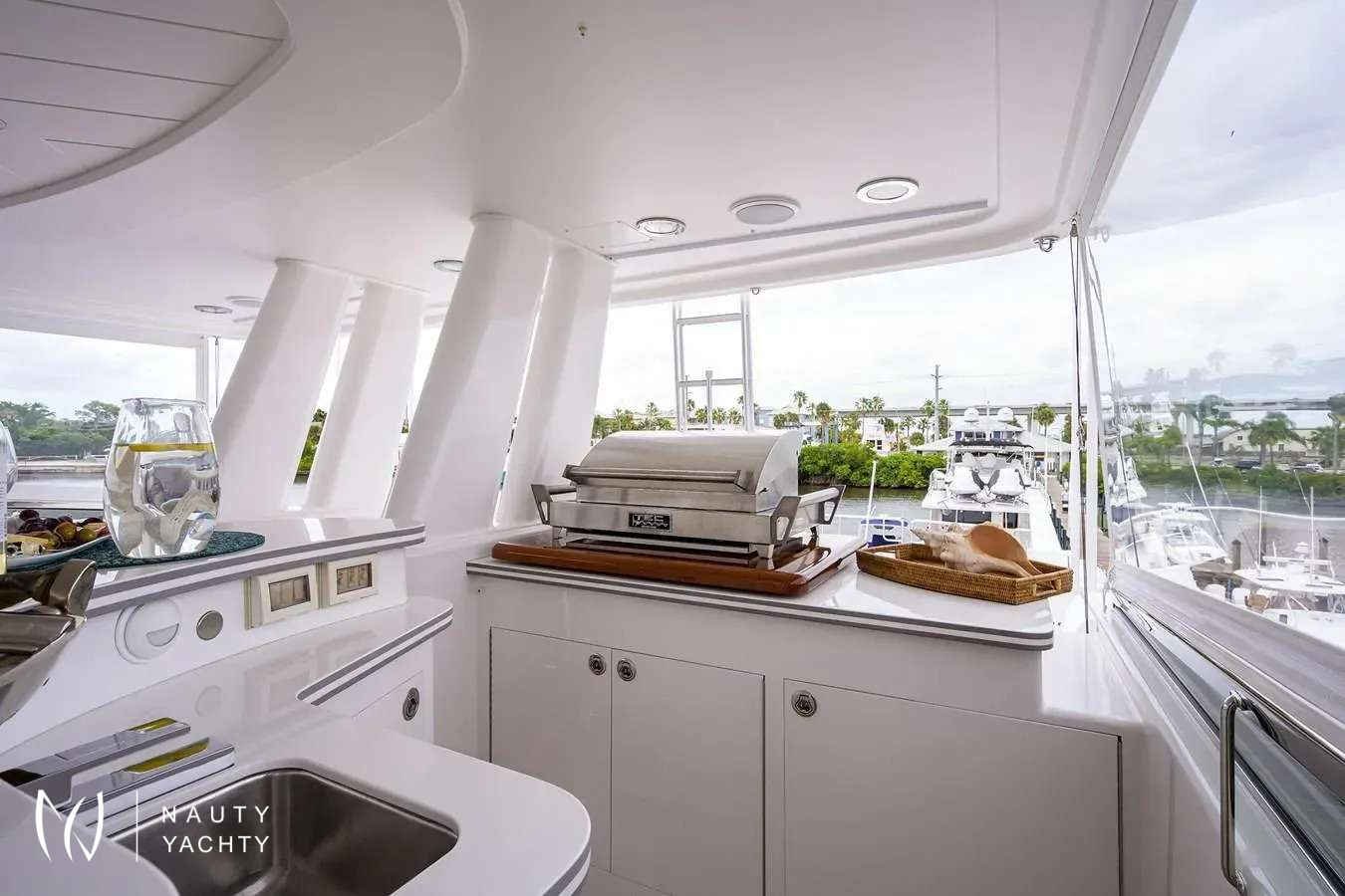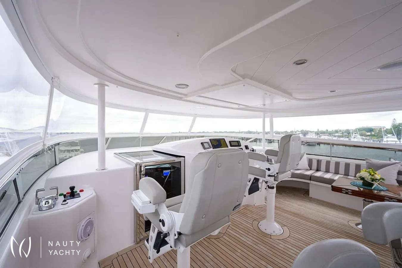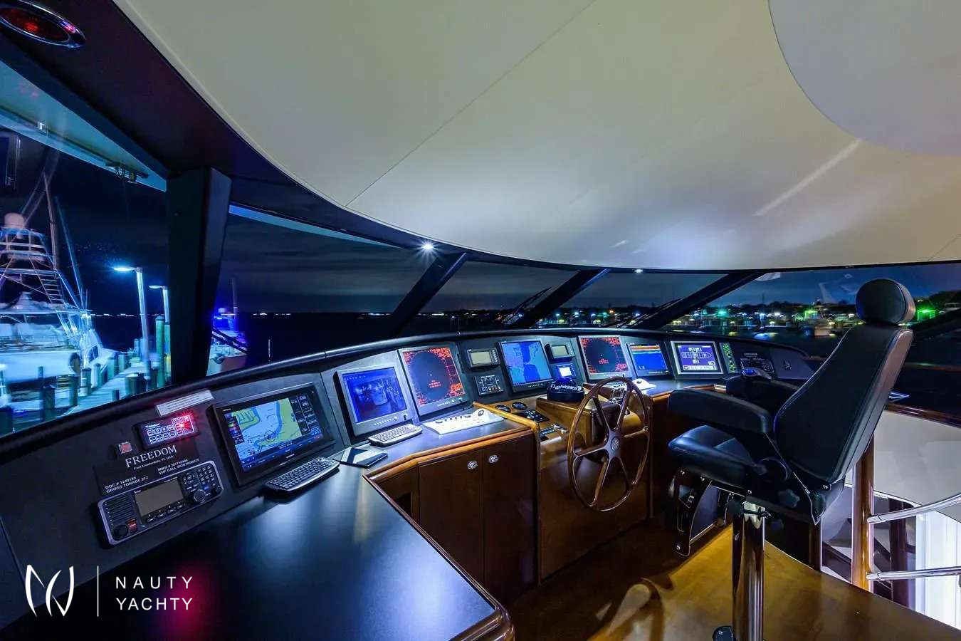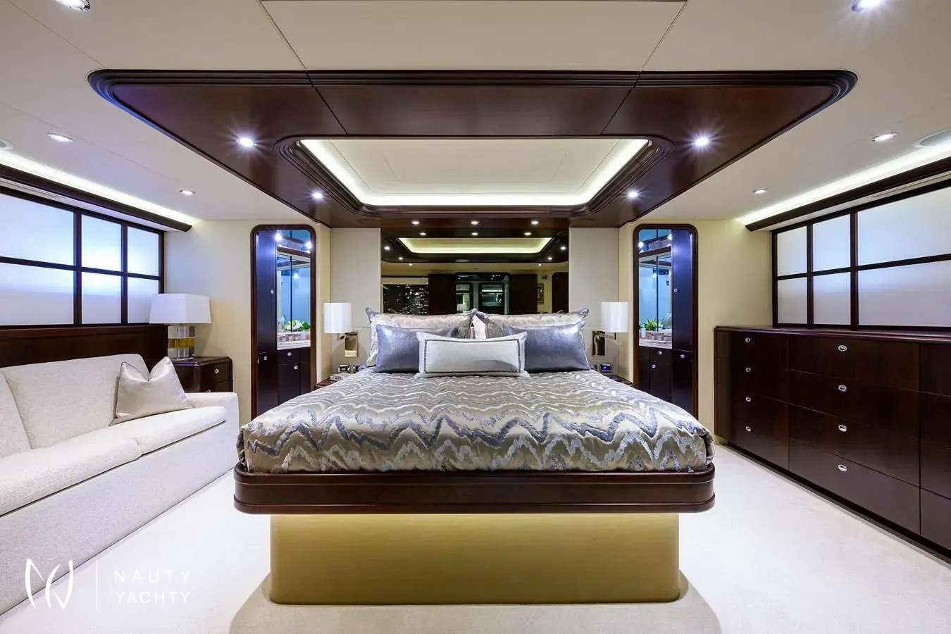 UNWINED is a classic example of Westport style and sure to please every guest. No expense has been spared in preparing her for the luxury charter market (major refit 2023). UNWINED accommodates 8 guests in 4 cabins, each en suite with cedar-lined closets and TV / with satellite receiver and surround sound. The yacht tows a 35 ft Boston Whaler Outrage outfitted for exciting offshore fishing (towed), a 17ft RIB and a selection of watersport toys. Make your great Bahamas vacation escape today and "unwined"!______CABINSVIP QUEEN CABIN: Forward of the galley / below. Walk-in closet. Settee to starboard, vanity to portBathroom with marble counter. Shower_____BELOWMASTER CABIN. Below amidship forward. Full-width with double entrance doorsCALIFORNIA KING (facing aft). Large walk-in closet to starboard at entranceFull-width his / her bathroom forward of the bed with oversize central shower / honey onyx marble throughoutDesk and sofa to port, large dresser to starboard. TV with satellite receiver (lift system concealed overhead)VIP QUEEN. Port. ShowerTWIN. Starboard (twin beds not convertible). ShowerWALK THROUGHDirecTV HD throughout the yacht / Latin America and USAPlex - central movie server available in the master cabin and main salonSurround sound in all guest cabins, main salon and flybridgeMusic via Spotify / iPads control audio and video throughout the interior and on the flybridgeMAIN DECK. Open planDouble sliding doors aft. Ample seating. Large window for expansive views and natural light.TV to portFormal dining forward for 8 guests (credenza separate the salon and the dining area)Powder room forward off foyer"COUNTRY KITCHEN" galley forwardRaised settee with casual black granite dining table, 2 stainless steel and black leather high chairs.TVWalk-around center island. Stainless steel appliances and black granite countertops.MAIN AFT DECKBuilt in settee aft with custom high-gloss high-low table (sliding base for al fresco dinning or cocktail service)6 chairs. Port forward service bar with stools. TVRoll up Eisenglass screens provide comfort in inclement weatherChild safety gates on port and starboard stair access to the swim platform with fresh water showerHydraulic passerelle; port & starboard side boardingFLYBRIDGE. Accessed via starboard main deck stairwell or through the raised pilot houseUnder hard top offers shaded al fresco dining and loungingWrap-around settee with 2 fold-out cocktail tables (convertible to a dining table seating 8)Full service bar with stools to port. BBQ grill. Concealed TV on a lift systemFront and sides of the flybridge can be enclosed with roll up Eisenglass screens to protect guests in inclement weatherSUNDECK: Jacuzzi to port (converts to large raised sunpad). L-shaped settee with table to starboardSliding hatch access to spiral staircase to main aft deckFOREDECKThe foredeck features a circular seating area--a private haven to "unwined" and take in the views of the charter destination.____________TV sizes:Main salon55" TV / DVR / DirecTV HD receiver (USA / Latin America)Main deck aft32" TV with tuner and satellite receiverFlybridge32" TV with tuner on lift system, concealed overheadMaster cabin40" TV /DVD/CD on lift system, concealed overheadTuner & satellite receiver, Apple TVVIP Queen and the Queen & Twin cabins below each with:29" TV with tuner & satellite receiver
