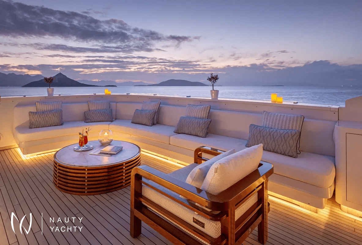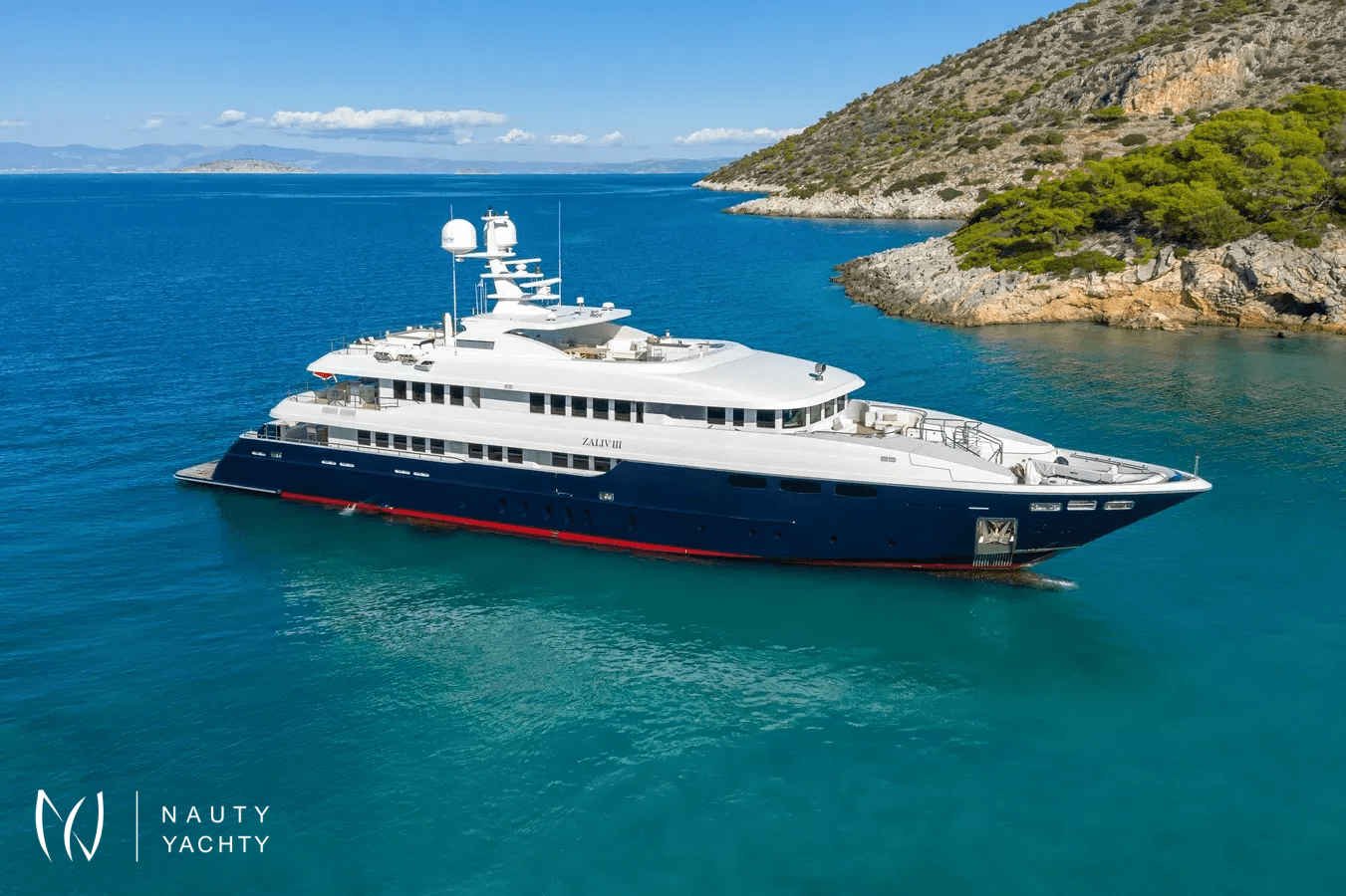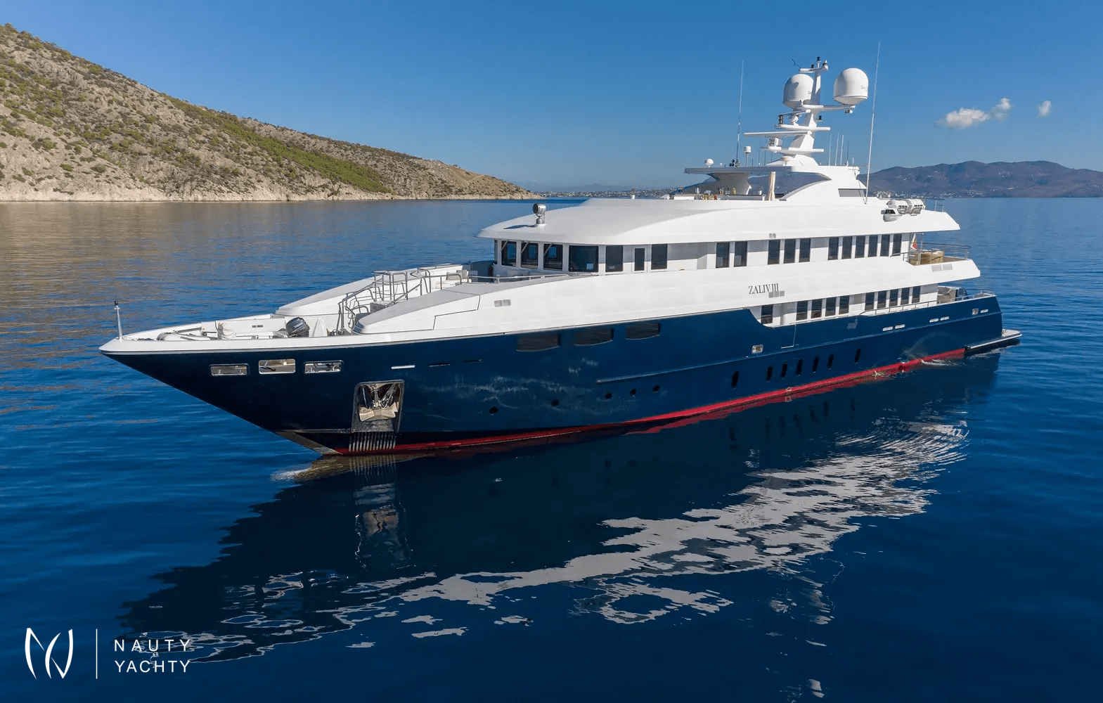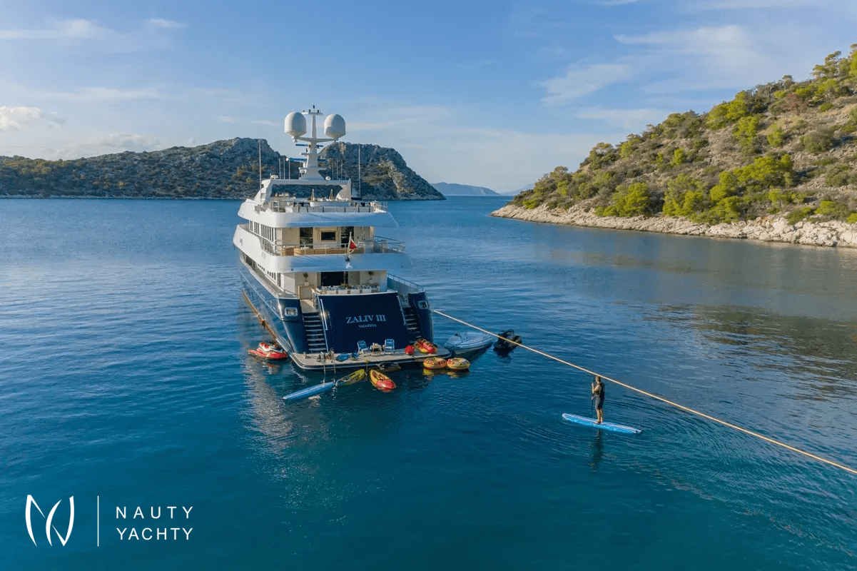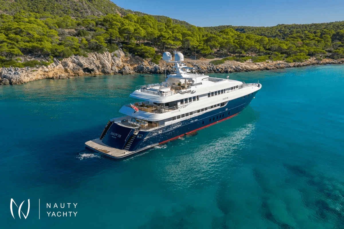 M/Y Zaliv III was a finalist in the "Three deck Semi-displacement Motor Yachts" category at the prestigious 2012 World Super Yacht Awards & 2012 Show Boats Design Awards. One of the few available 50 meters semi displacement aluminum yachts in the market. The choice of a contemporary, almost minimalist design contrasting with exquisitely tasteful furniture makes ZALIV III unique and original. Materials and colors of the interiors enhance the sense of space. The superb sundeck is fitted with a large Jacuzzi, beautiful lounge, sunbathing area and al fresco dining. She has been built with the most modern equipment such as Zero speed stabilizers, state of the art entertainment system and electrical curtains adjusted with the main Lutron monitoring system, architecturally studied high end lighting and edge engineering insulating level and many others features.She accommodates 12 guests in one master cabin with a king size bed, his & hers bathroom, jacuzzi, shower, steam bath, walk in closet, a private lounge area with an office, wine cellar and cigars humidifier & a private deck area on the upper deck. One full beam VIP cabin with a king size bed, his & hers bathroom, jacuzzi, shower, steam bath, walk in closet and an office area with two Pullman berths on the main deck (it is like a second master). Two spacious double cabins with a queen size bed and two twin cabins with a Pullman berth on the lower deck, all with ensuite facilities. (All baths have chromotherapy)M/Y Zaliv III is the ideal choice for families and friends who wish to enjoy a premier yachting experience.Her plentiful amenities ranging from fabulous exterior areas, exquisite interior spaces and versatile accommodation to a wide list of water toys, SPA treatments on board, haute cuisine and superior hospitality services are especially designed to satisfy even the most diverse of charter parties.Captain Kostas and his crew hold excellent charter references. They are experts in tailor made cruises and they are always eager to offer amazing moments to all the guests onboard!