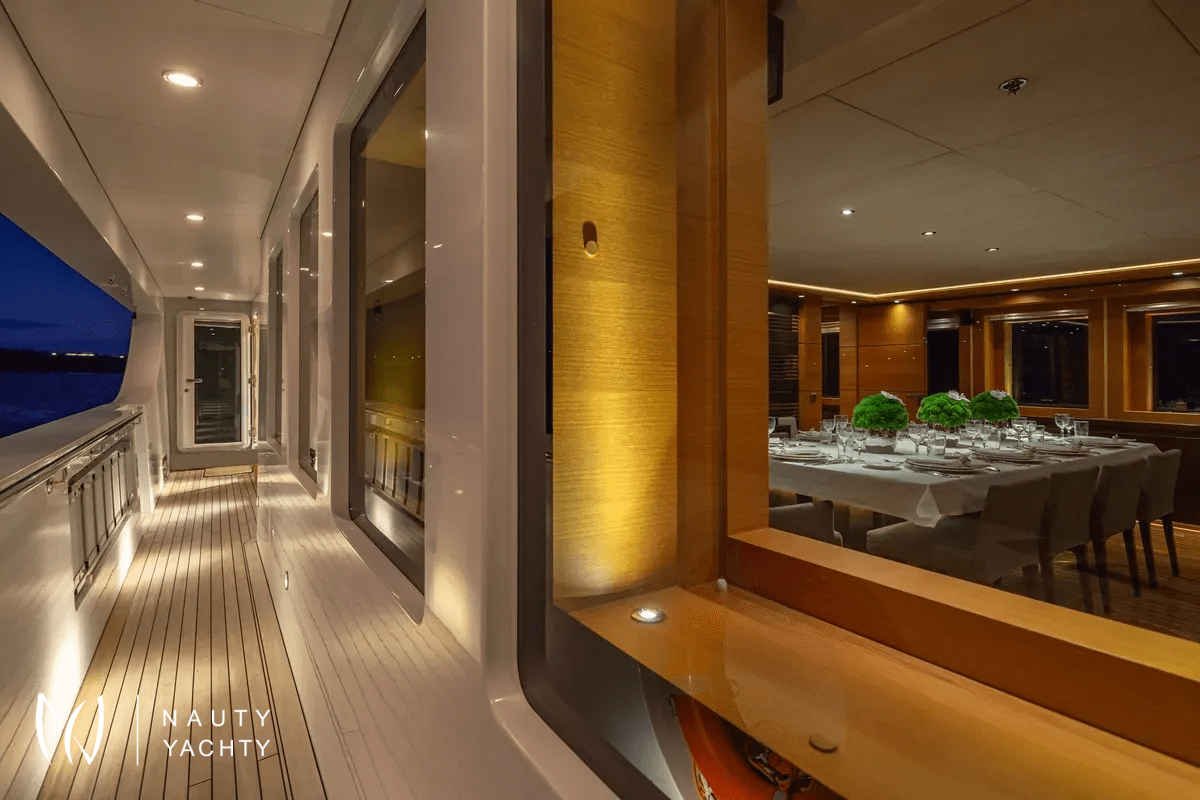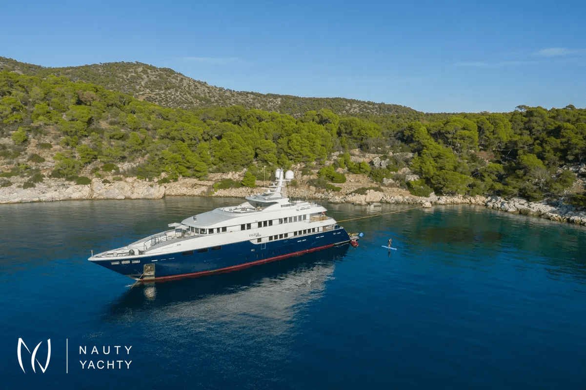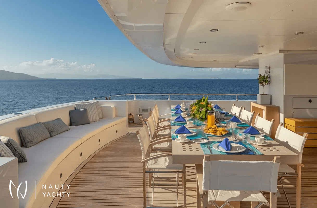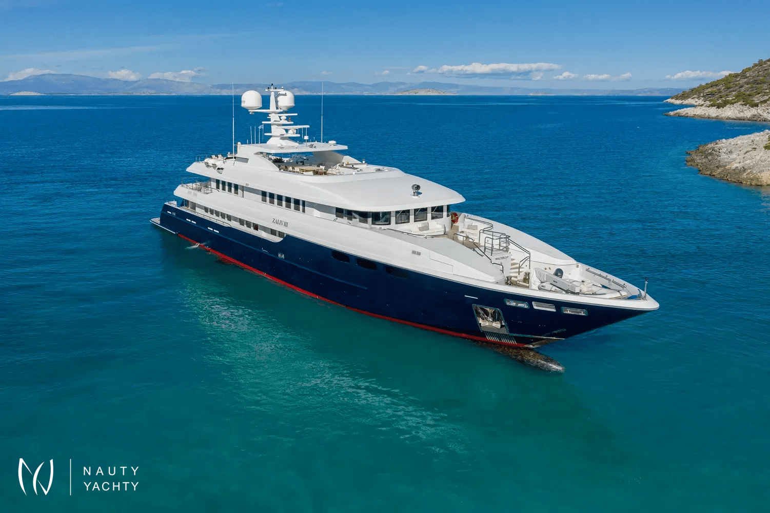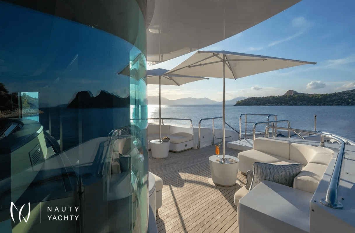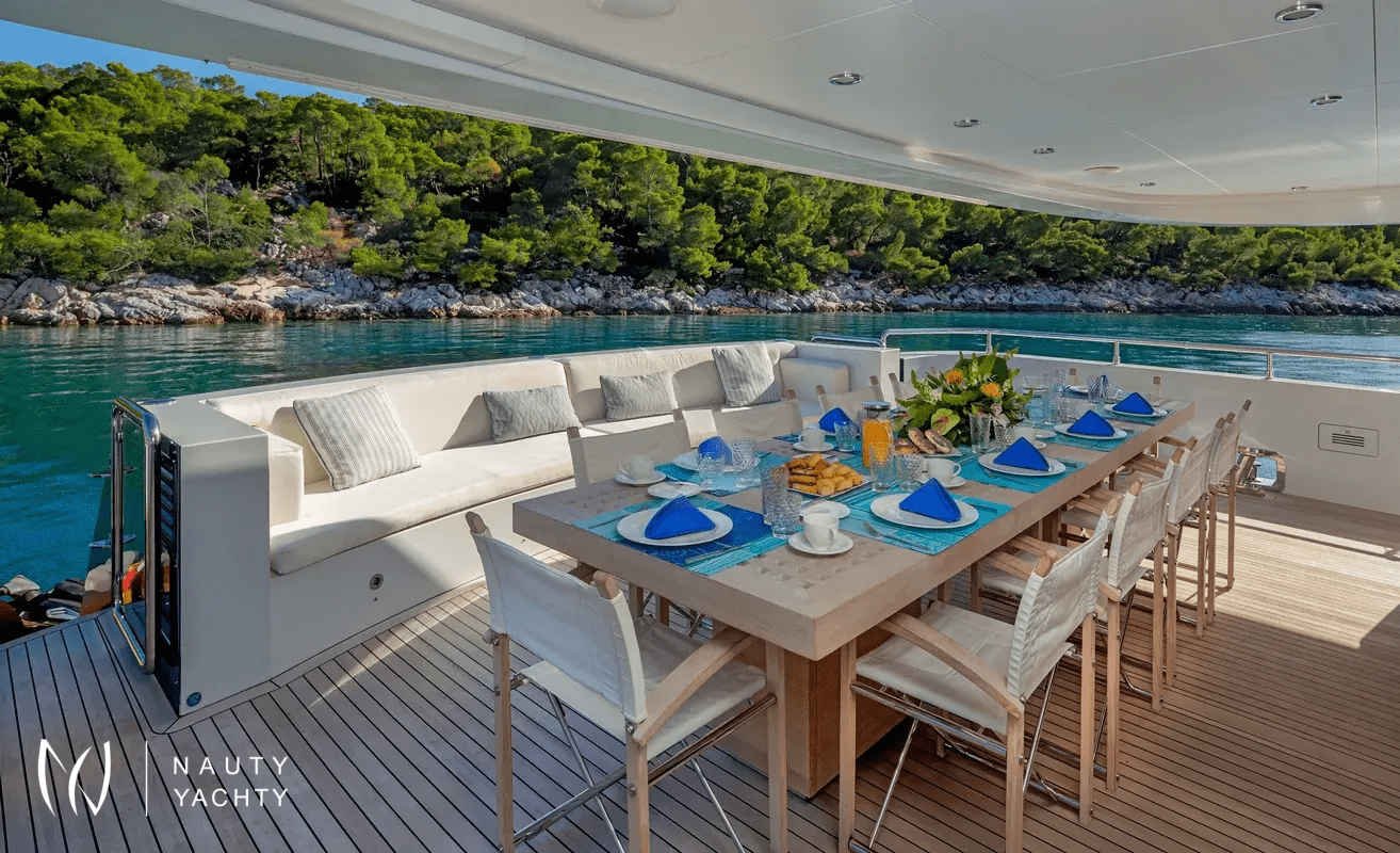 M/Y Zaliv III was a finalist in the "Three deck Semi-displacement Motor Yachts" category at the prestigious 2012 World Super Yacht Awards & 2012 Show Boats Design Awards. One of the few available 50 meters semi displacement aluminum yachts in the market. The choice of a contemporary, almost minimalist design contrasting with exquisitely tasteful furniture makes ZALIV III unique and original. Materials and colors of the interiors enhance the sense of space. The superb sundeck is fitted with a large Jacuzzi, beautiful lounge, sunbathing area and al fresco dining. She has been built with the most modern equipment such as Zero speed stabilizers, state of the art entertainment system and electrical curtains adjusted with the main Lutron monitoring system, architecturally studied high end lighting and edge engineering insulating level and many others features.She accommodates 12 guests in one master cabin with a king size bed, his & hers bathroom, jacuzzi, shower, steam bath, walk in closet, a private lounge area with an office, wine cellar and cigars humidifier & a private deck area on the upper deck. One full beam VIP cabin with a king size bed, his & hers bathroom, jacuzzi, shower, steam bath, walk in closet and an office area with two Pullman berths on the main deck (it is like a second master). Two spacious double cabins with a queen size bed and two twin cabins with a Pullman berth on the lower deck, all with ensuite facilities. (All baths have chromotherapy)M/Y Zaliv III is the ideal choice for families and friends who wish to enjoy a premier yachting experience.Her plentiful amenities ranging from fabulous exterior areas, exquisite interior spaces and versatile accommodation to a wide list of water toys, SPA treatments on board, haute cuisine and superior hospitality services are especially designed to satisfy even the most diverse of charter parties.Captain Kostas and his crew hold excellent charter references. They are experts in tailor made cruises and they are always eager to offer amazing moments to all the guests onboard!