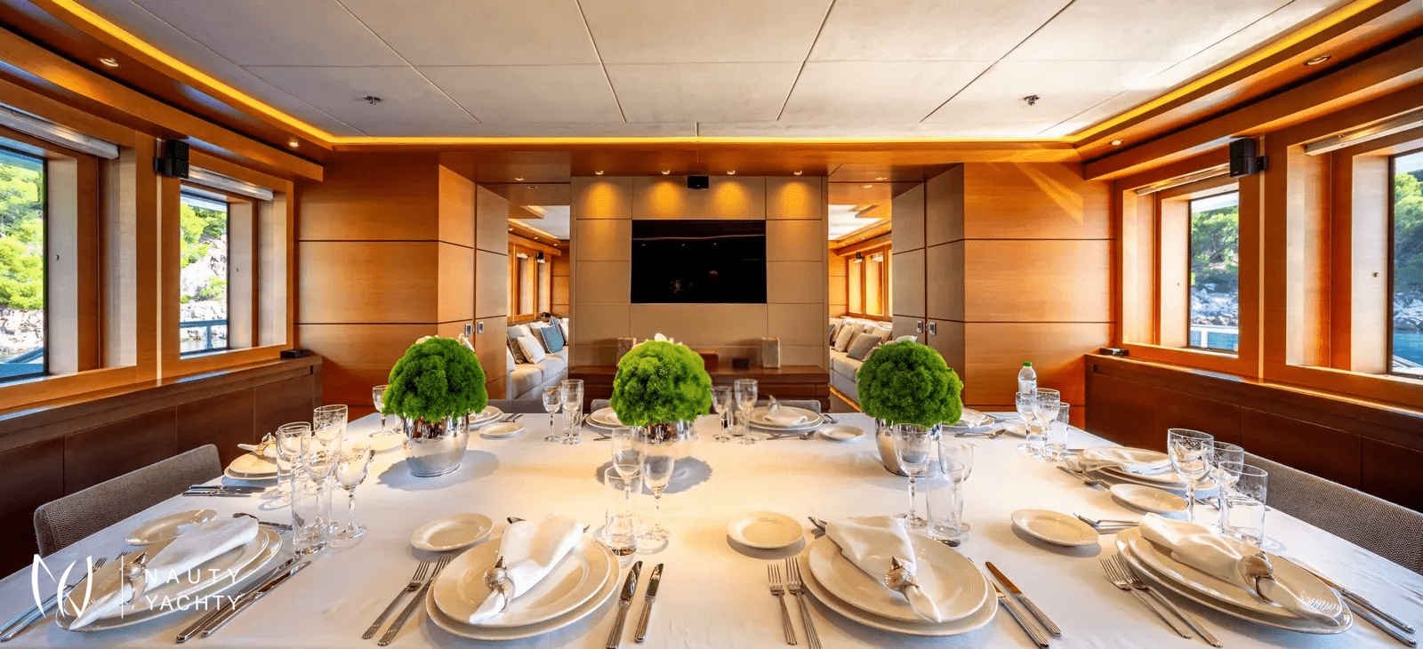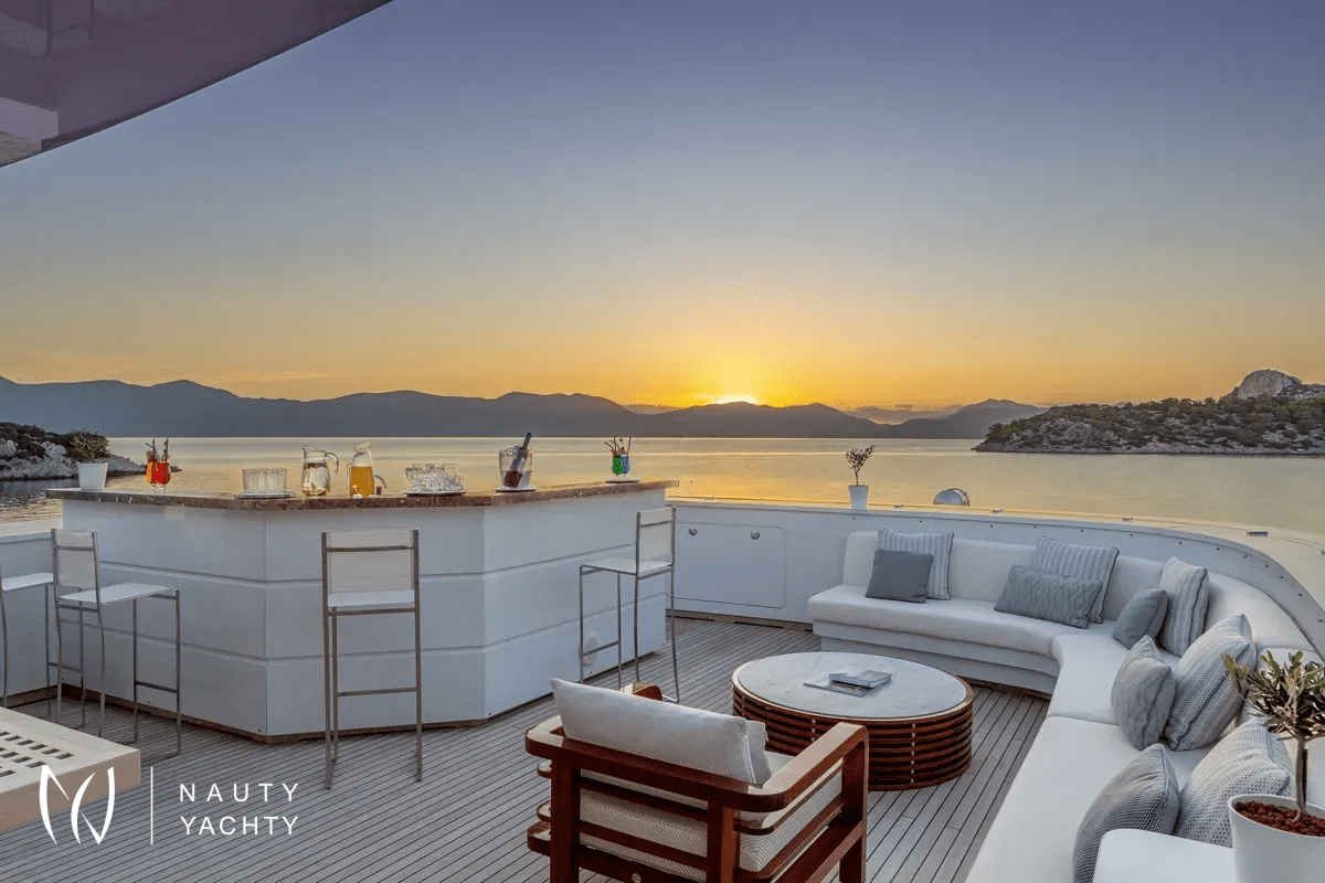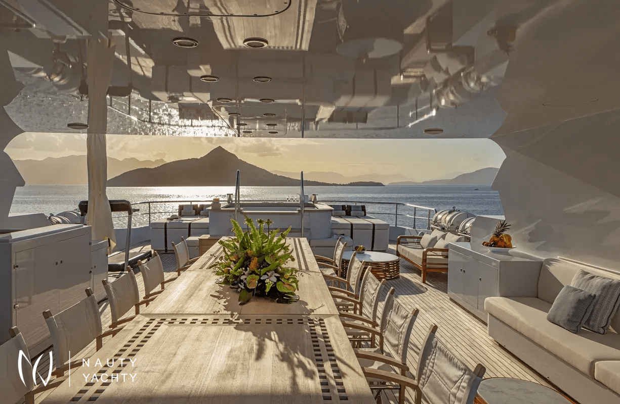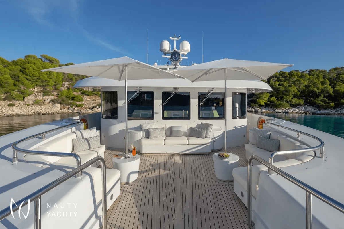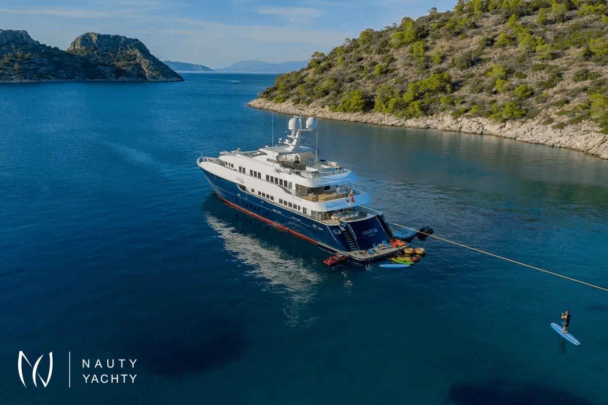 M/Y Zaliv III was a finalist in the "Three deck Semi-displacement Motor Yachts" category at the prestigious 2012 World Super Yacht Awards & 2012 Show Boats Design Awards. One of the few available 50 meters semi displacement aluminum yachts in the market. The choice of a contemporary, almost minimalist design contrasting with exquisitely tasteful furniture makes ZALIV III unique and original. Materials and colors of the interiors enhance the sense of space. The superb sundeck is fitted with a large Jacuzzi, beautiful lounge, sunbathing area and al fresco dining. She has been built with the most modern equipment such as Zero speed stabilizers, state of the art entertainment system and electrical curtains adjusted with the main Lutron monitoring system, architecturally studied high end lighting and edge engineering insulating level and many others features.She accommodates 12 guests in one master cabin with a king size bed, his & hers bathroom, jacuzzi, shower, steam bath, walk in closet, a private lounge area with an office, wine cellar and cigars humidifier & a private deck area on the upper deck. One full beam VIP cabin with a king size bed, his & hers bathroom, jacuzzi, shower, steam bath, walk in closet and an office area with two Pullman berths on the main deck (it is like a second master). Two spacious double cabins with a queen size bed and two twin cabins with a Pullman berth on the lower deck, all with ensuite facilities. (All baths have chromotherapy)M/Y Zaliv III is the ideal choice for families and friends who wish to enjoy a premier yachting experience.Her plentiful amenities ranging from fabulous exterior areas, exquisite interior spaces and versatile accommodation to a wide list of water toys, SPA treatments on board, haute cuisine and superior hospitality services are especially designed to satisfy even the most diverse of charter parties.Captain Kostas and his crew hold excellent charter references. They are experts in tailor made cruises and they are always eager to offer amazing moments to all the guests onboard!