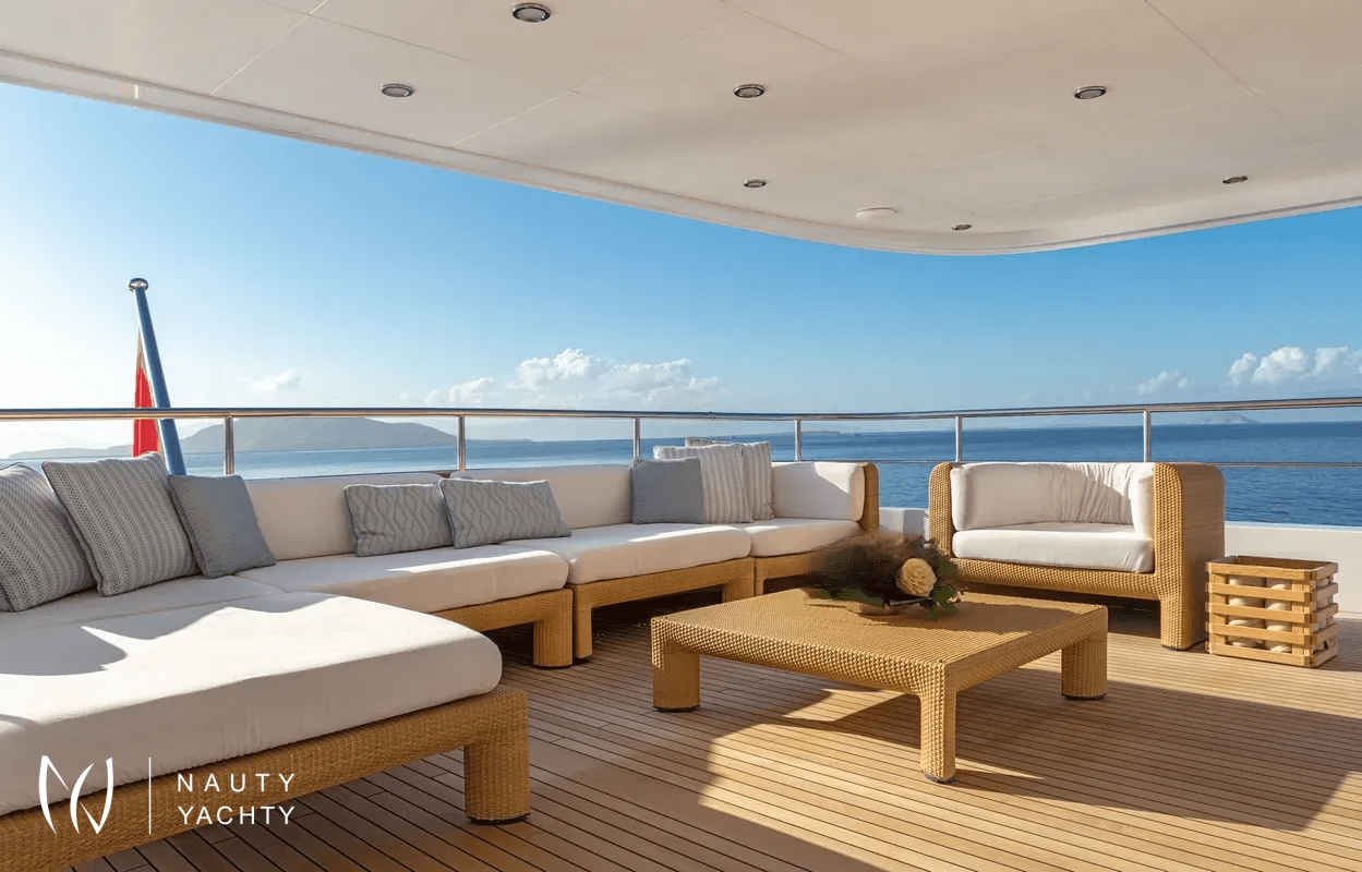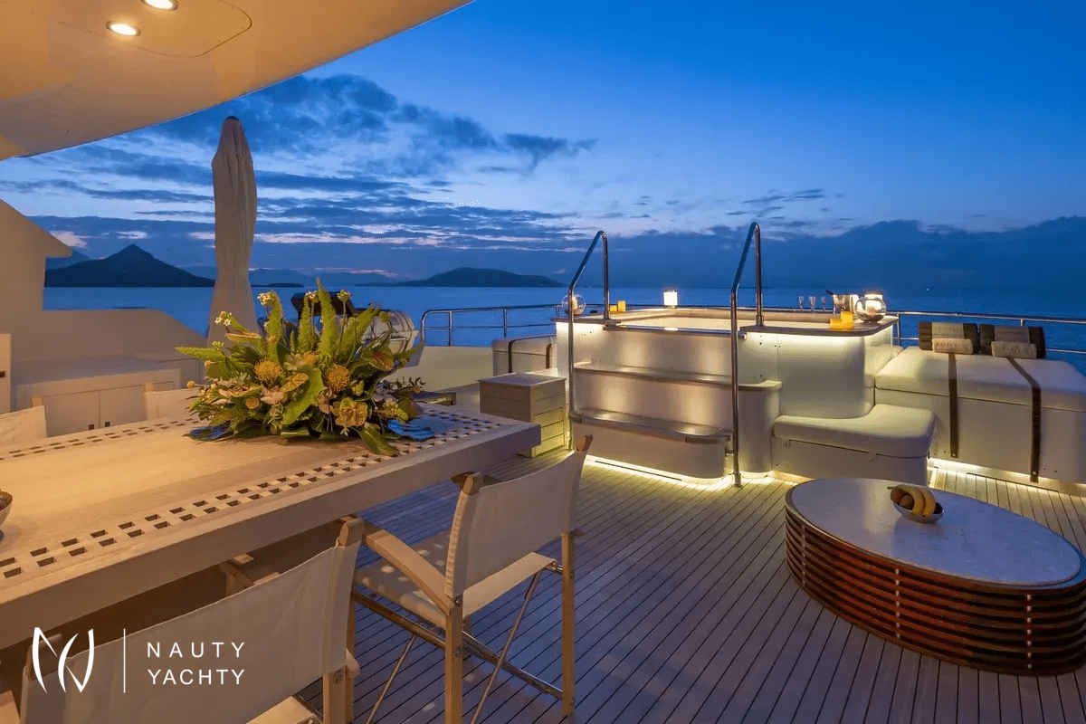 Superb sundeck with a large Jacuzzi, beautiful lounge, bar, al fresco dining and sunbathing area