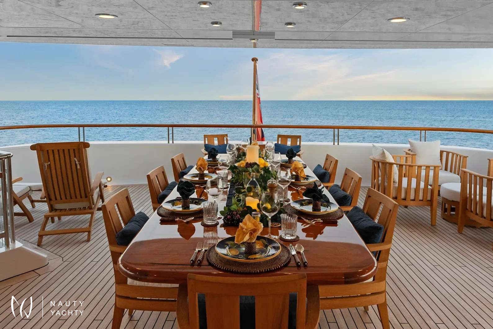 With accommodation for 12 guests across five lavish staterooms and a dedicated crew of nine, AMICA MEA promises a seamless fusion of thrilling exploration and serene relaxation. Your unforgettable Grecian odyssey awaits.