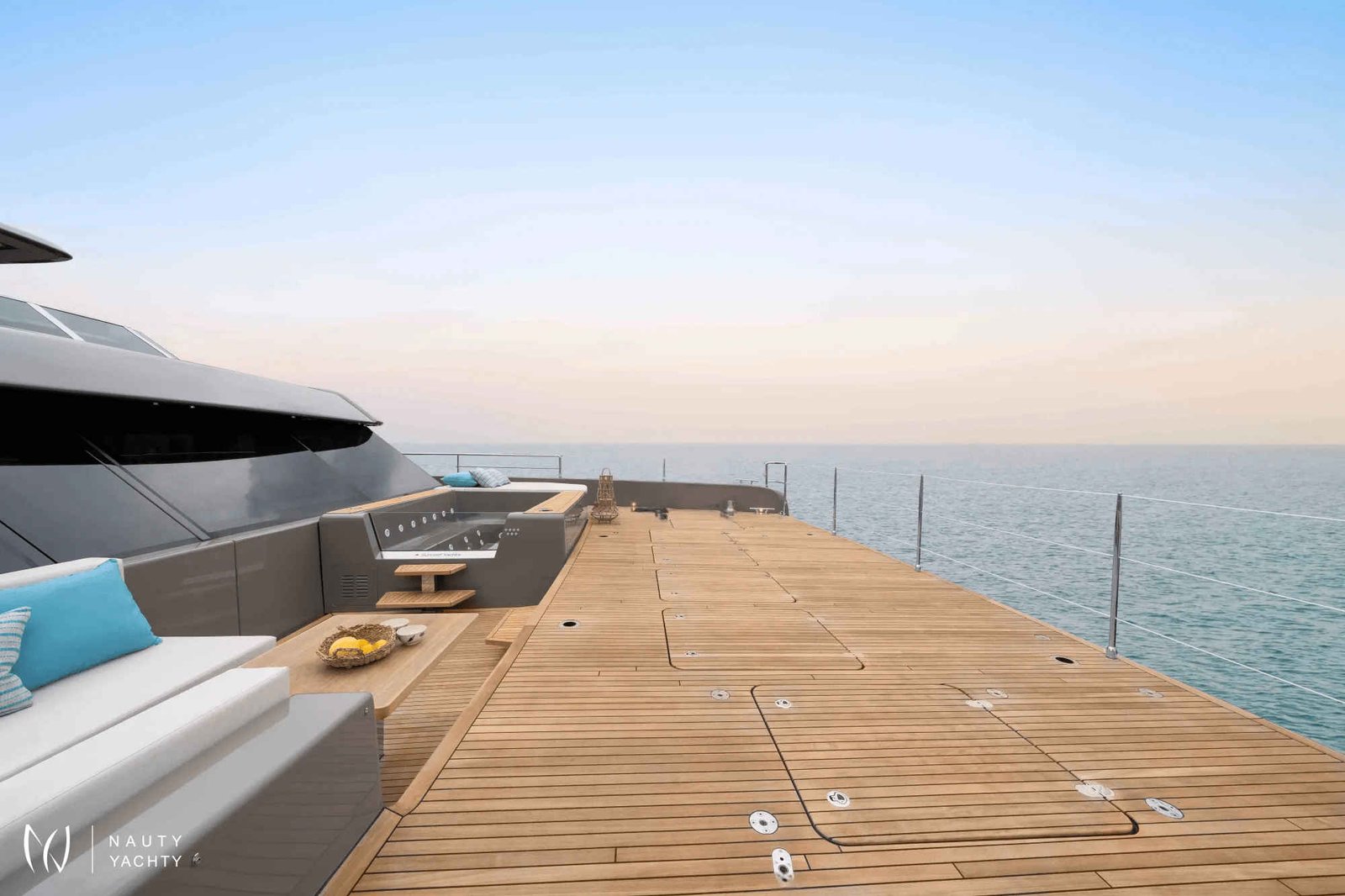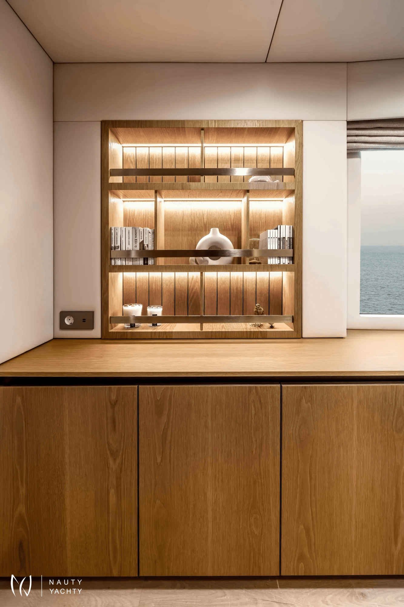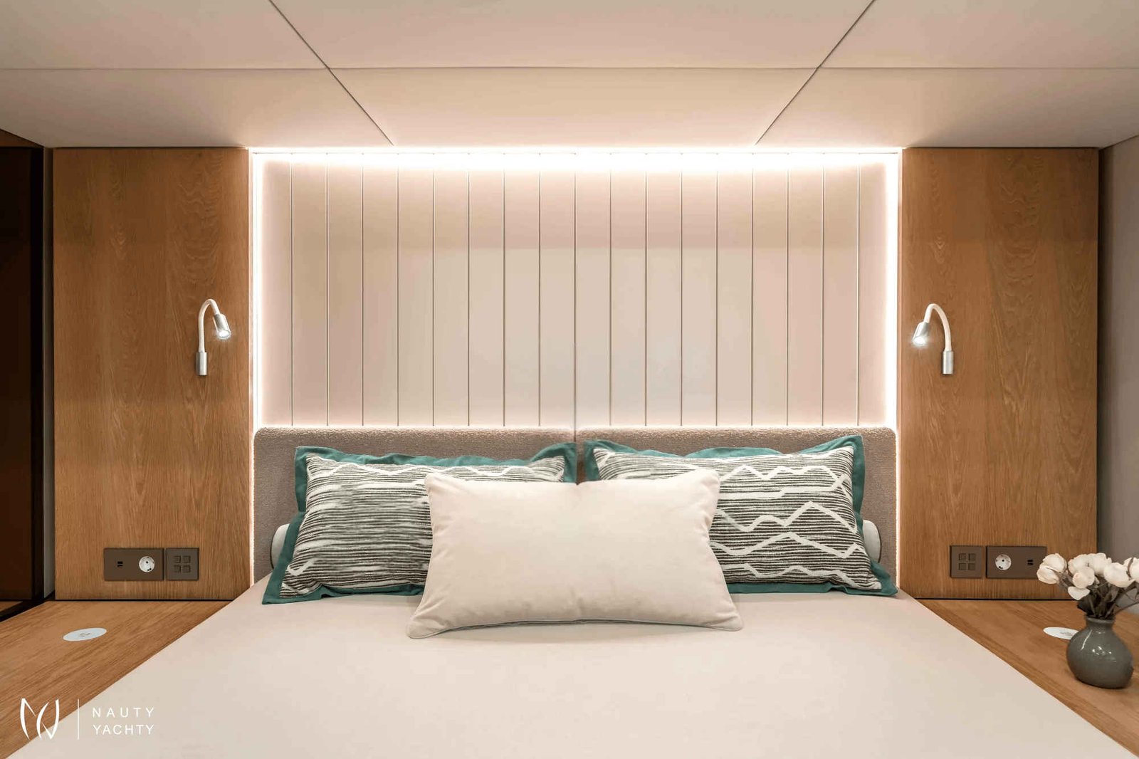 The yacht's intelligent layout offers a sanctuary of tranquility for all on board. Key features include: