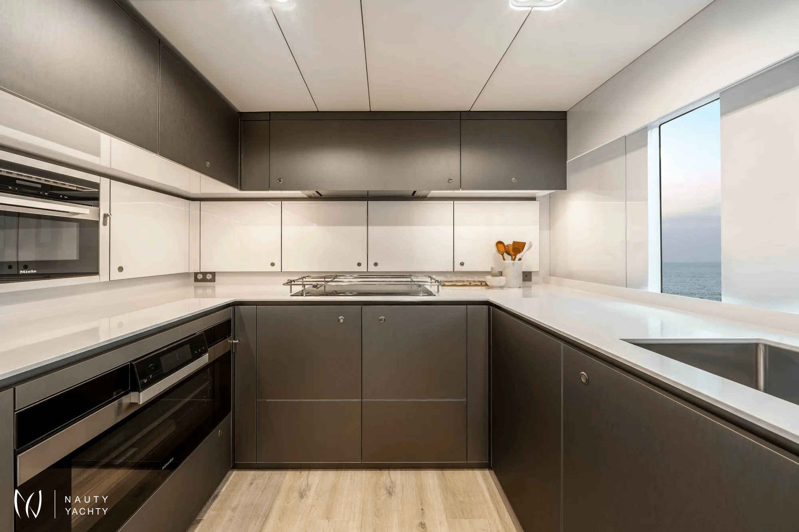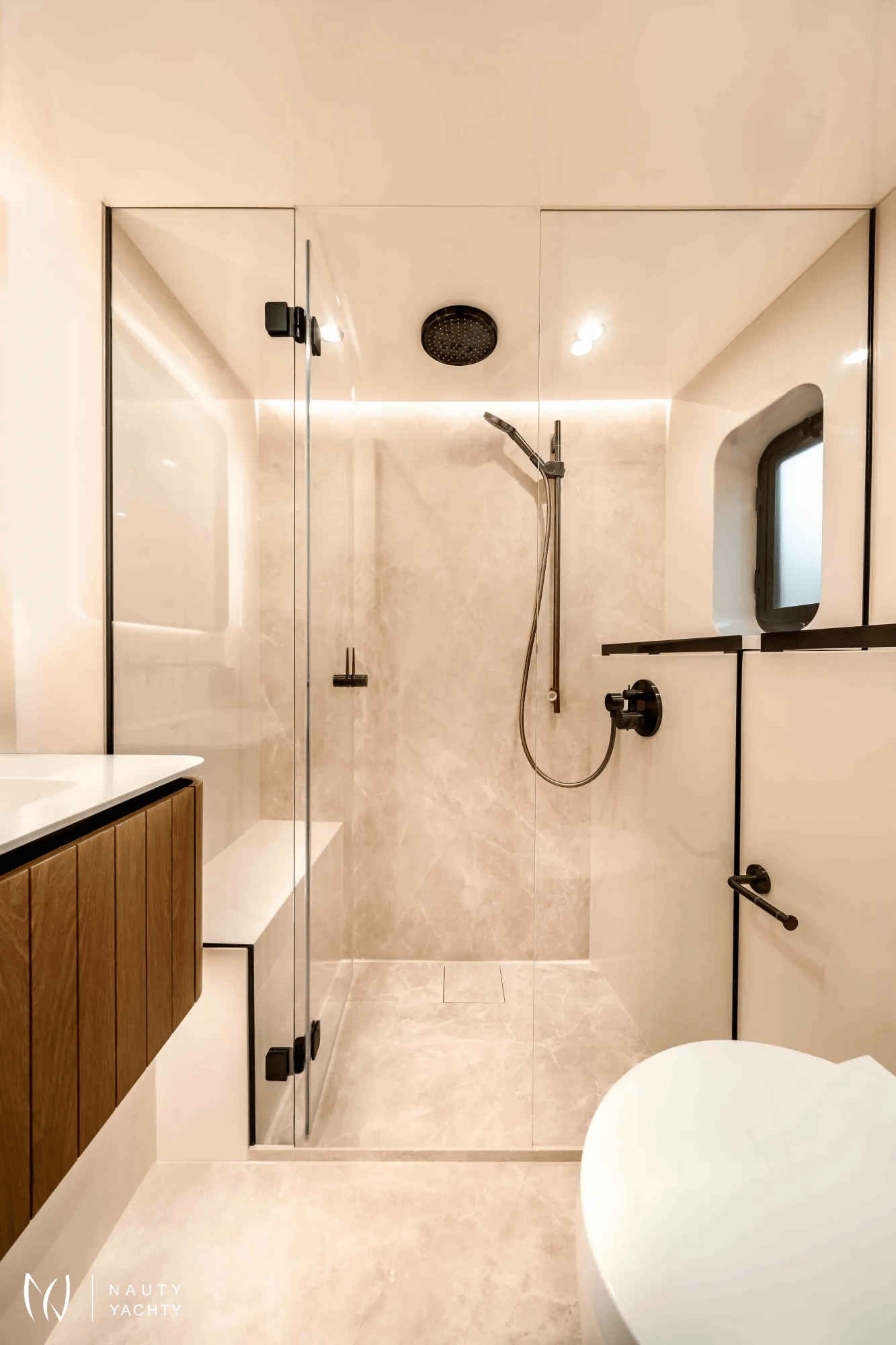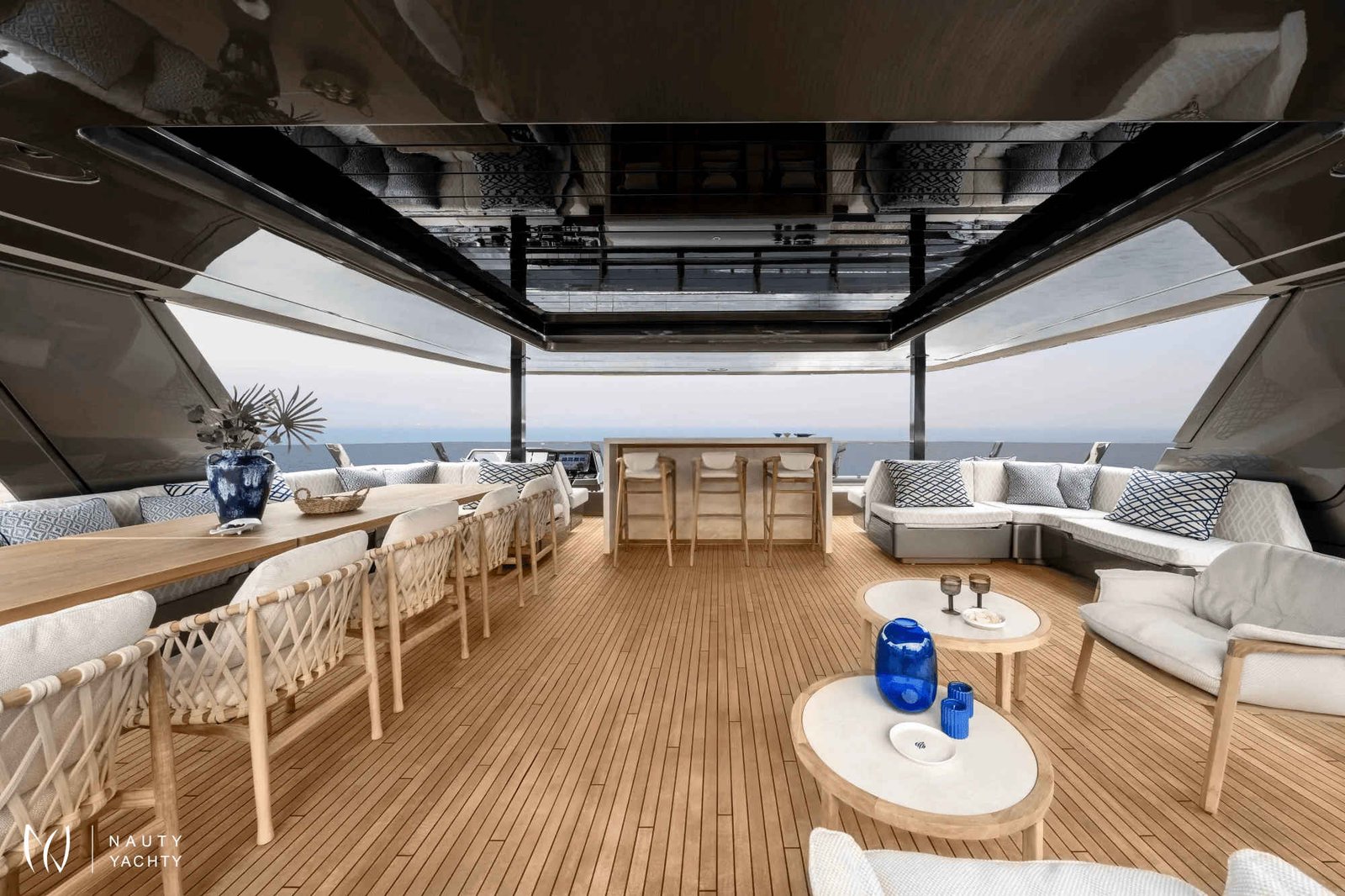 The yacht's intelligent layout offers a sanctuary of tranquility for all on board. Key features include: