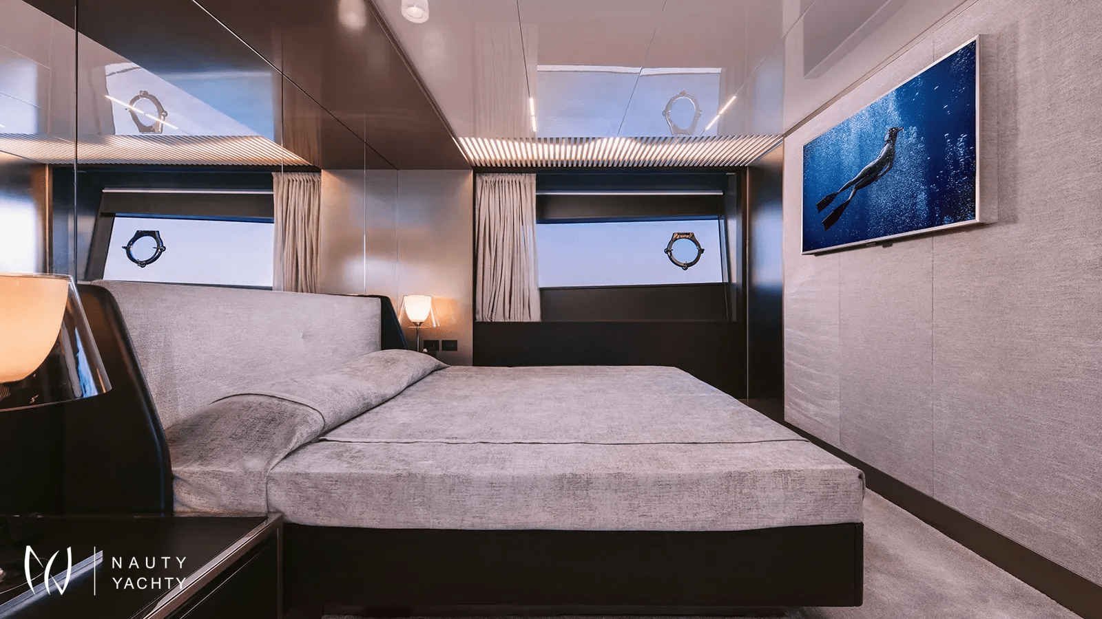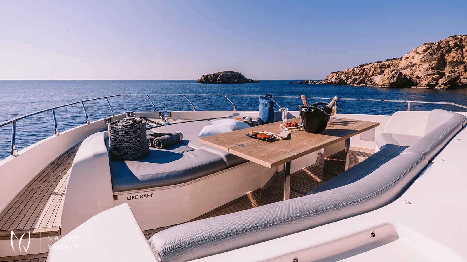 The sun-drenched interior, envisioned by Zuccon, offers a serene sanctuary for up to nine guests. The accommodation is thoughtfully arranged across four chic cabins, ensuring private and restful retreats after a day of discovery. On deck, multiple spaces invite al fresco dining and relaxation, all while being cared for by a highly professional crew of five. With ANASSA A, every detail is curated for an unforgettable journey.