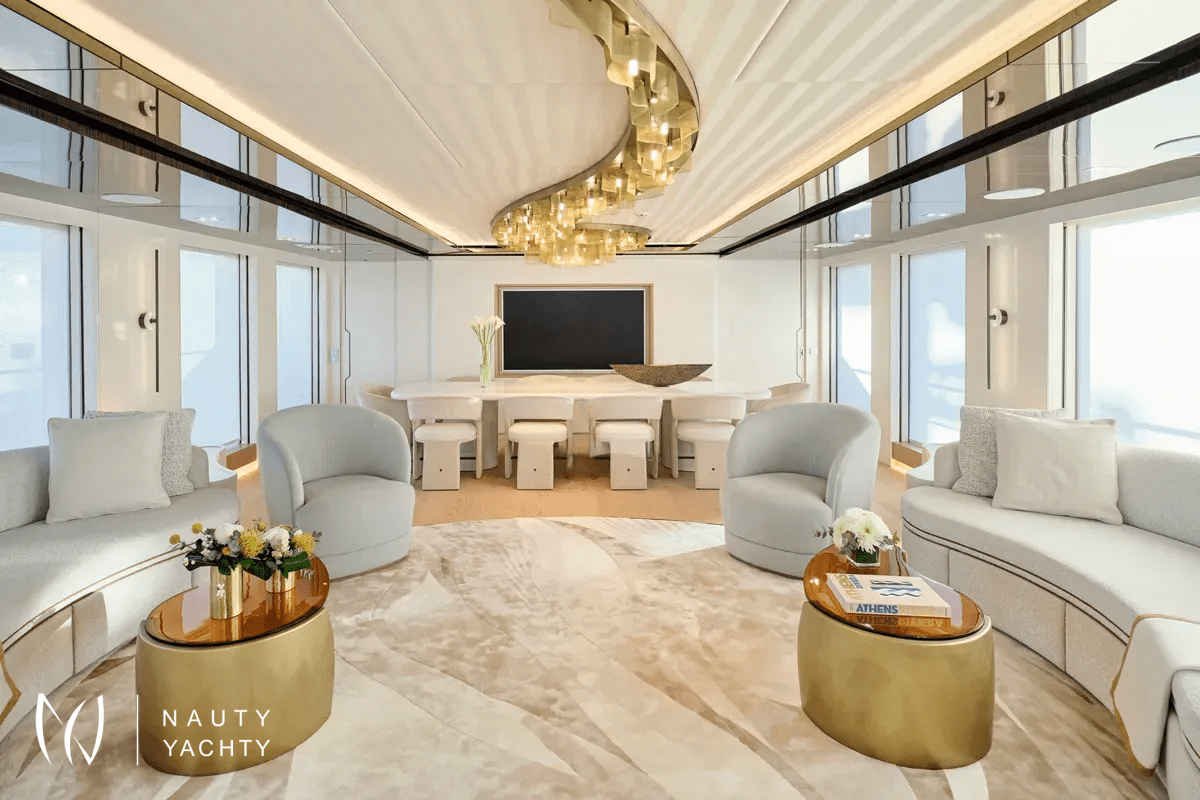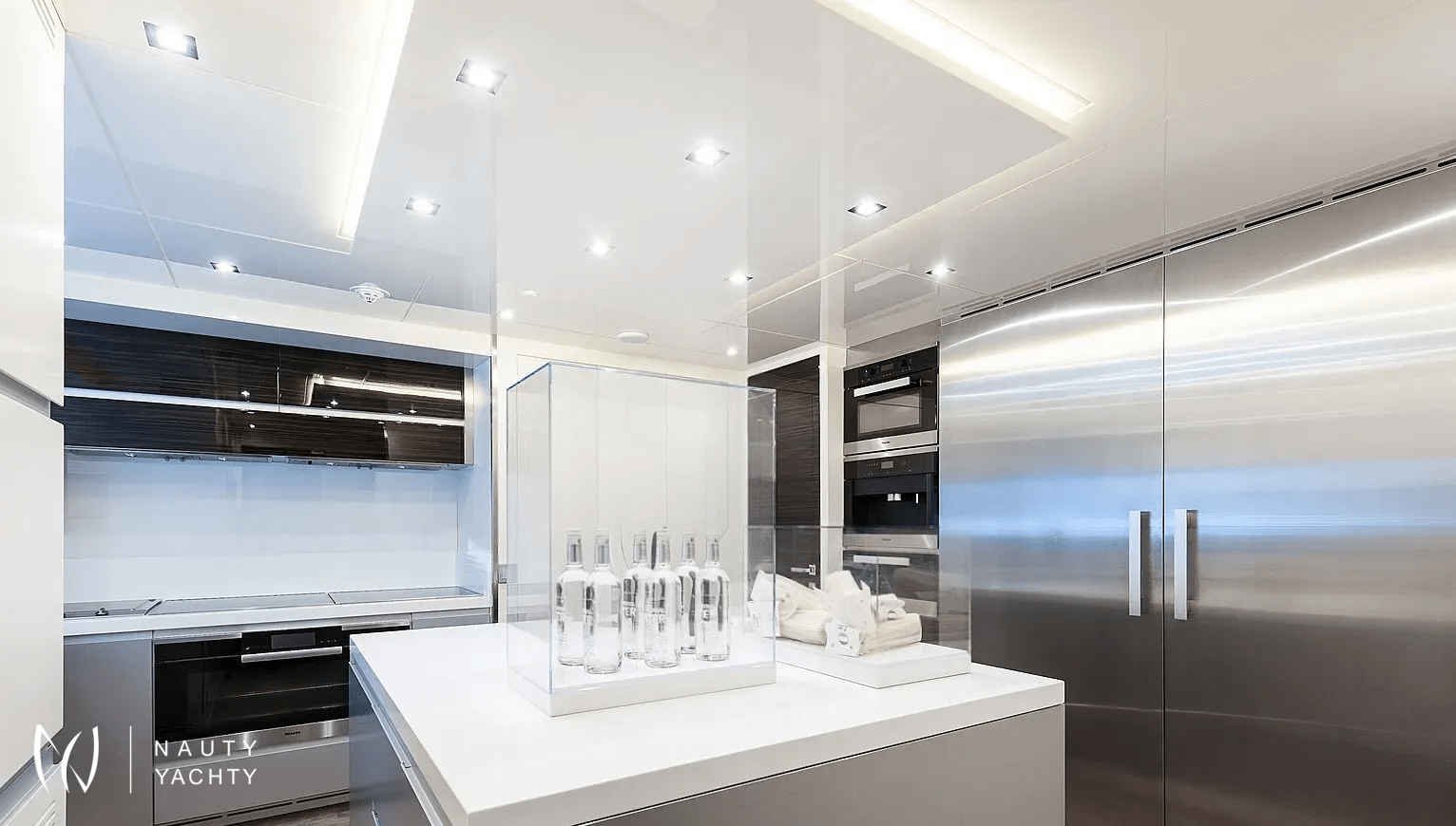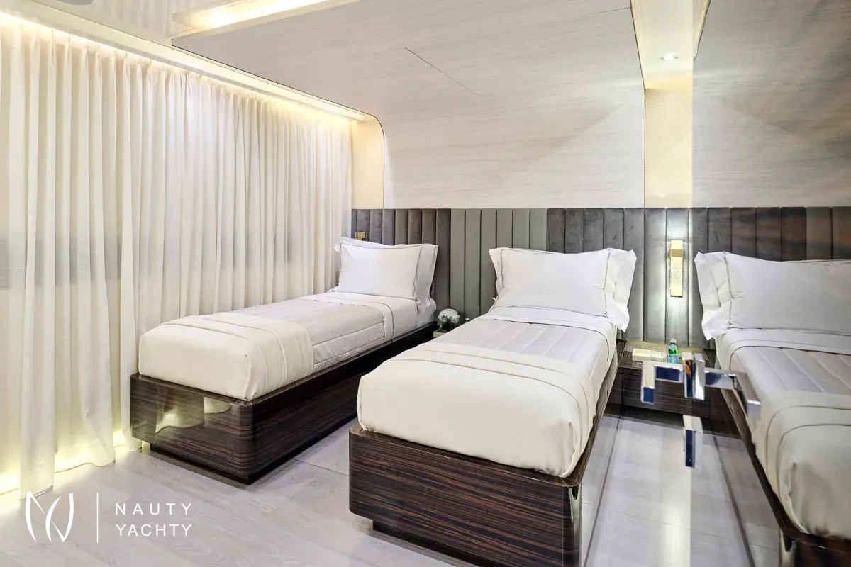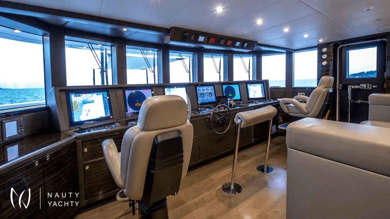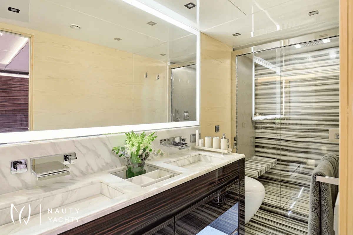 Welcome to the distinguished motor yacht Axios, a 47-meter Admiral vessel presently undergoing an extensive refit, poised to offer an elevated and refined experience for her guests onboard. Axios graciously accommodates up to 12 guests within its five cabins, including both twin cabins that provide convertible configurations for flexible arrangements.Journey aboard Axios, where the yacht's contemporary design seamlessly integrates with captivating surroundings. An inviting jacuzzi on the deck awaits, providing an ideal setting for relaxation amidst panoramic sea vistas. Serving as a floating sanctuary of entertainment, Axios is fully equipped with an array of water toys, ensuring each nautical moment is distinguished and memorable.For individuals with an inclination for an active lifestyle, Axios features a dedicated fitness room filled with state-of-the-art equipment, allowing guests to maintain their exercise regimen while cruising the open waters. The comprehensive refit of the yacht ensures that modern elegance and sophistication are exhibited with every detail, creating an atmosphere of comfort and luxurious distinction.In addition to its lavish amenities, Axios is equipped with stabilizers at anchor and underway, enhancing the overall comfort and stability of the yacht. Embark on an incredible journey aboard the meticulously revitalized Axios, promising a tailored voyage crafted to exceed your utmost expectations.