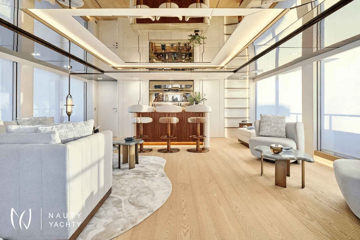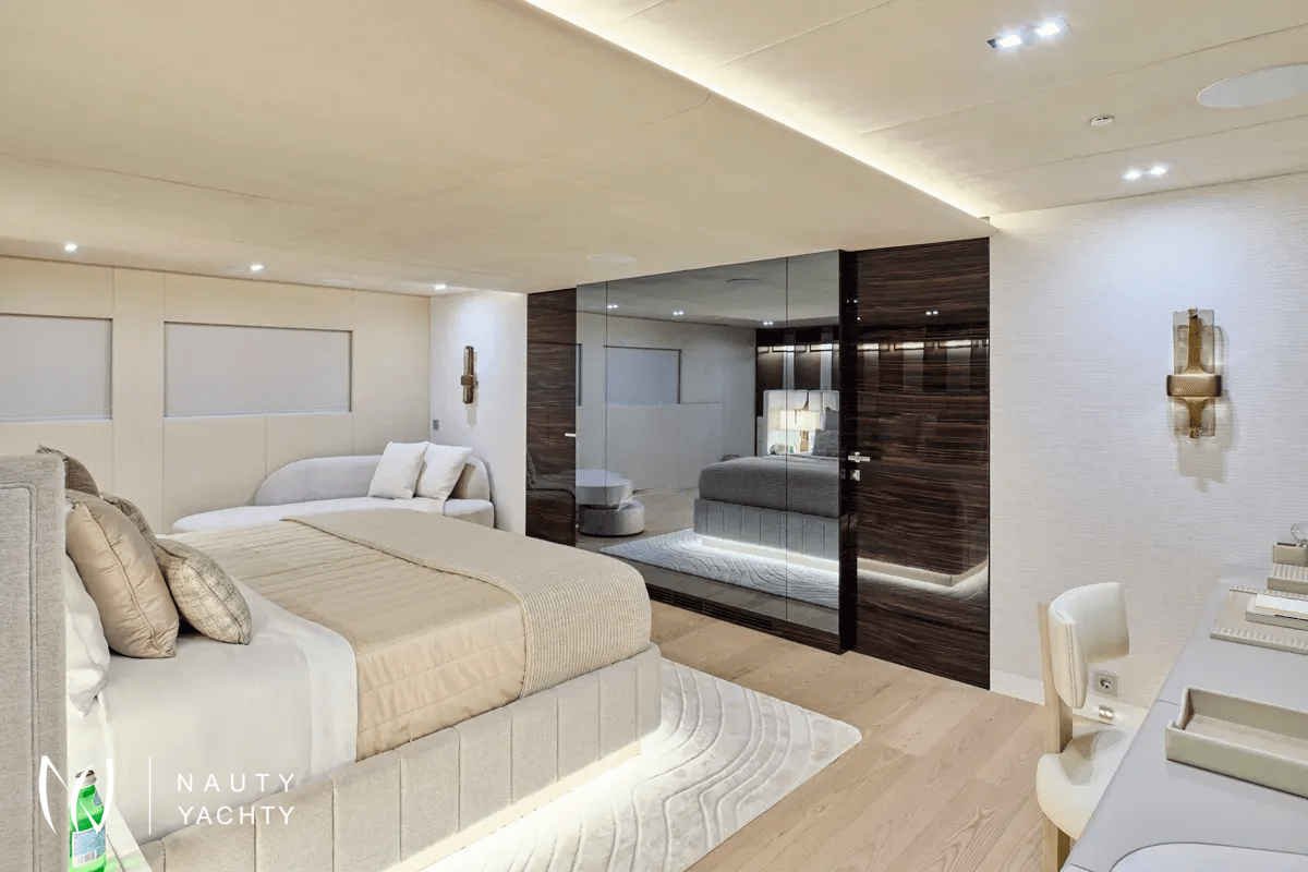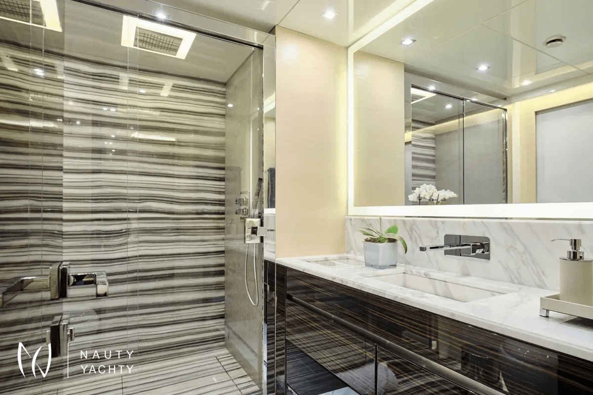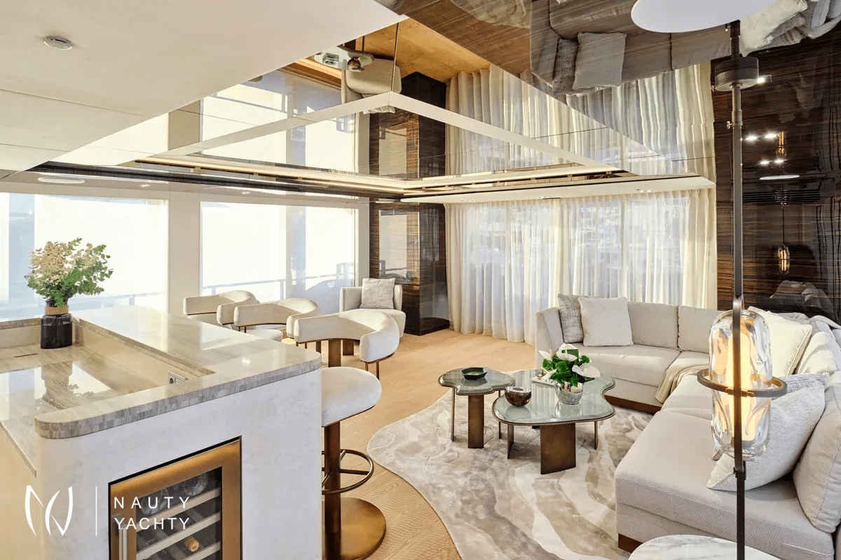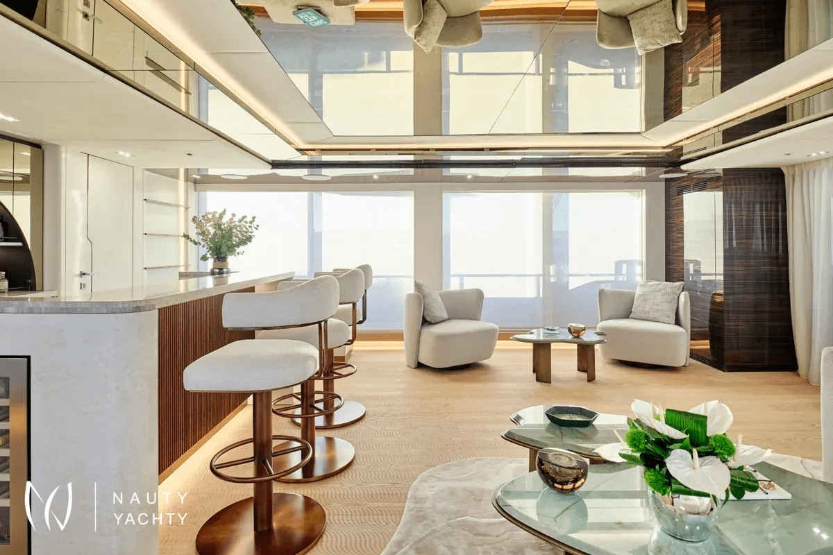 Welcome to the distinguished motor yacht Axios, a 47-meter Admiral vessel presently undergoing an extensive refit, poised to offer an elevated and refined experience for her guests onboard. Axios graciously accommodates up to 12 guests within its five cabins, including both twin cabins that provide convertible configurations for flexible arrangements.Journey aboard Axios, where the yacht's contemporary design seamlessly integrates with captivating surroundings. An inviting jacuzzi on the deck awaits, providing an ideal setting for relaxation amidst panoramic sea vistas. Serving as a floating sanctuary of entertainment, Axios is fully equipped with an array of water toys, ensuring each nautical moment is distinguished and memorable.For individuals with an inclination for an active lifestyle, Axios features a dedicated fitness room filled with state-of-the-art equipment, allowing guests to maintain their exercise regimen while cruising the open waters. The comprehensive refit of the yacht ensures that modern elegance and sophistication are exhibited with every detail, creating an atmosphere of comfort and luxurious distinction.In addition to its lavish amenities, Axios is equipped with stabilizers at anchor and underway, enhancing the overall comfort and stability of the yacht. Embark on an incredible journey aboard the meticulously revitalized Axios, promising a tailored voyage crafted to exceed your utmost expectations.