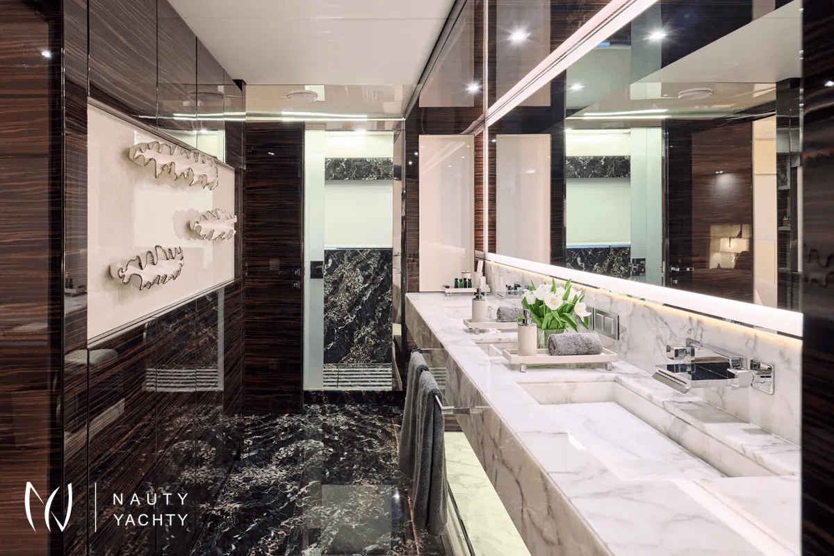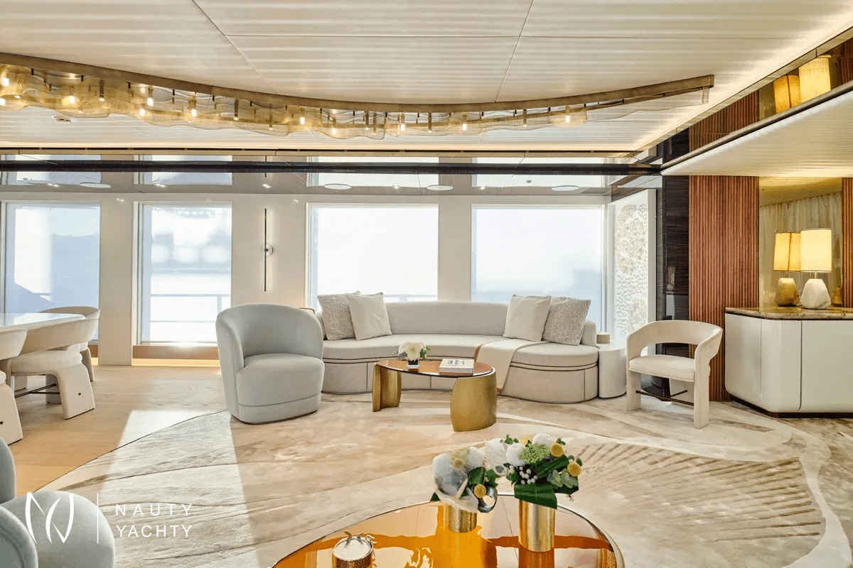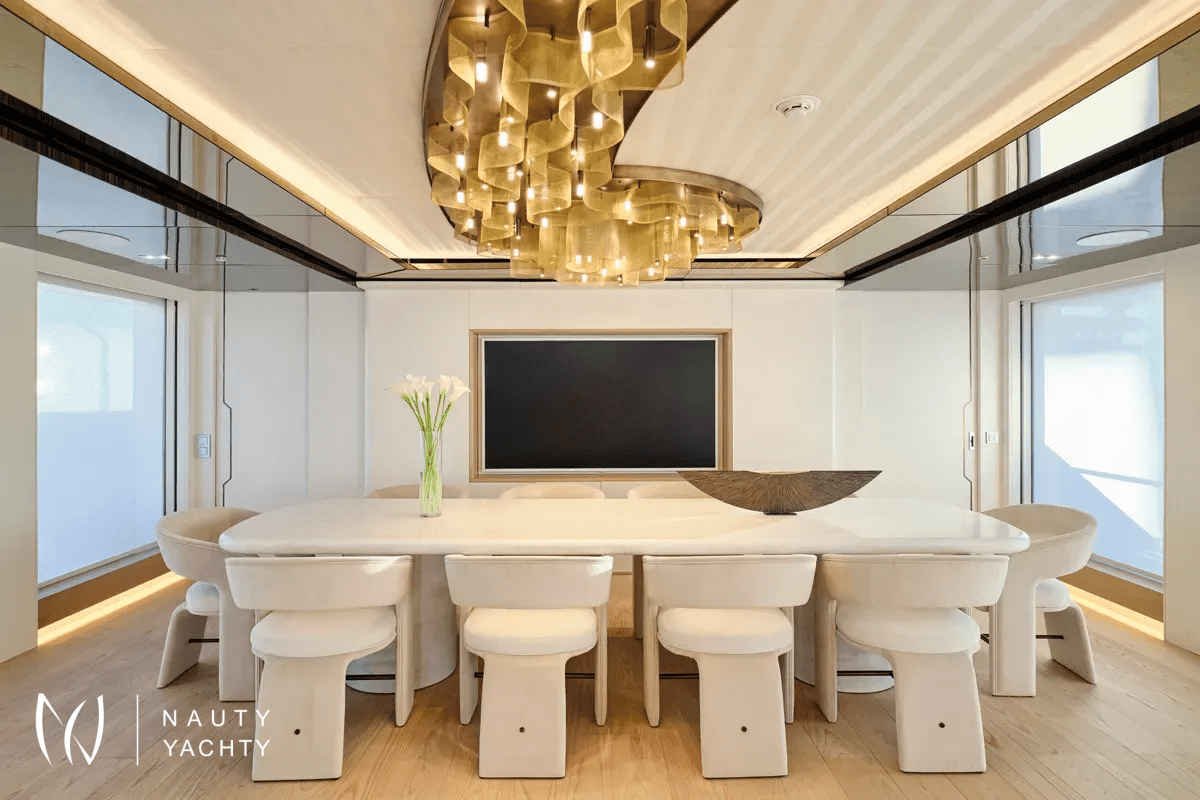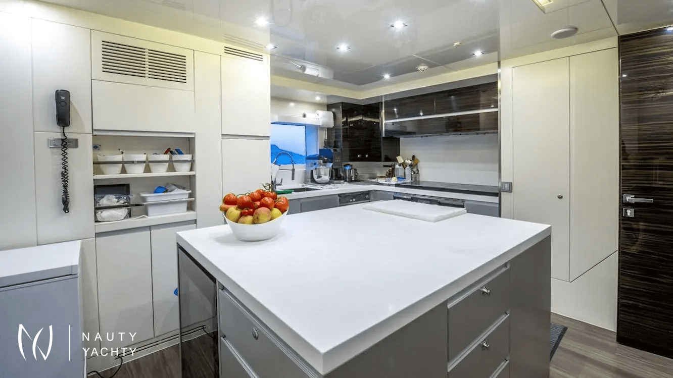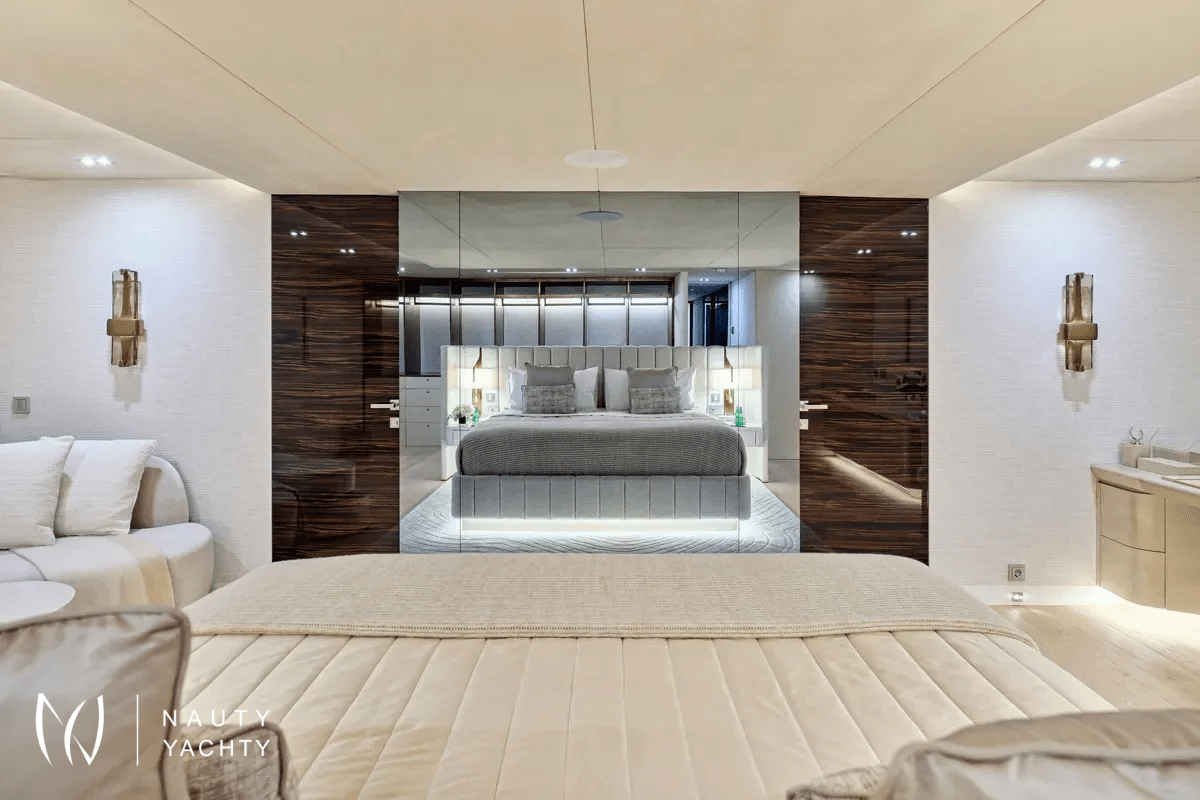 Welcome to the distinguished motor yacht Axios, a 47-meter Admiral vessel presently undergoing an extensive refit, poised to offer an elevated and refined experience for her guests onboard. Axios graciously accommodates up to 12 guests within its five cabins, including both twin cabins that provide convertible configurations for flexible arrangements.Journey aboard Axios, where the yacht's contemporary design seamlessly integrates with captivating surroundings. An inviting jacuzzi on the deck awaits, providing an ideal setting for relaxation amidst panoramic sea vistas. Serving as a floating sanctuary of entertainment, Axios is fully equipped with an array of water toys, ensuring each nautical moment is distinguished and memorable.For individuals with an inclination for an active lifestyle, Axios features a dedicated fitness room filled with state-of-the-art equipment, allowing guests to maintain their exercise regimen while cruising the open waters. The comprehensive refit of the yacht ensures that modern elegance and sophistication are exhibited with every detail, creating an atmosphere of comfort and luxurious distinction.In addition to its lavish amenities, Axios is equipped with stabilizers at anchor and underway, enhancing the overall comfort and stability of the yacht. Embark on an incredible journey aboard the meticulously revitalized Axios, promising a tailored voyage crafted to exceed your utmost expectations.